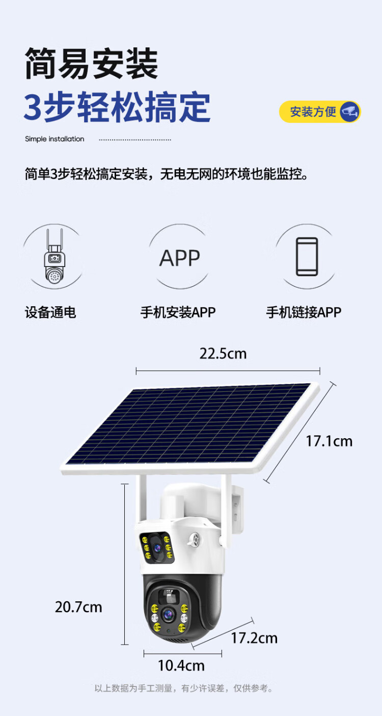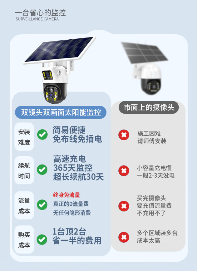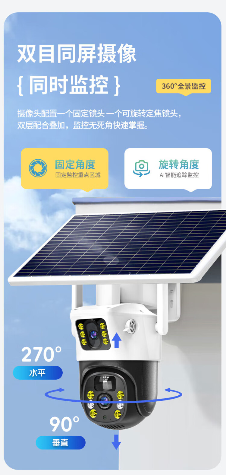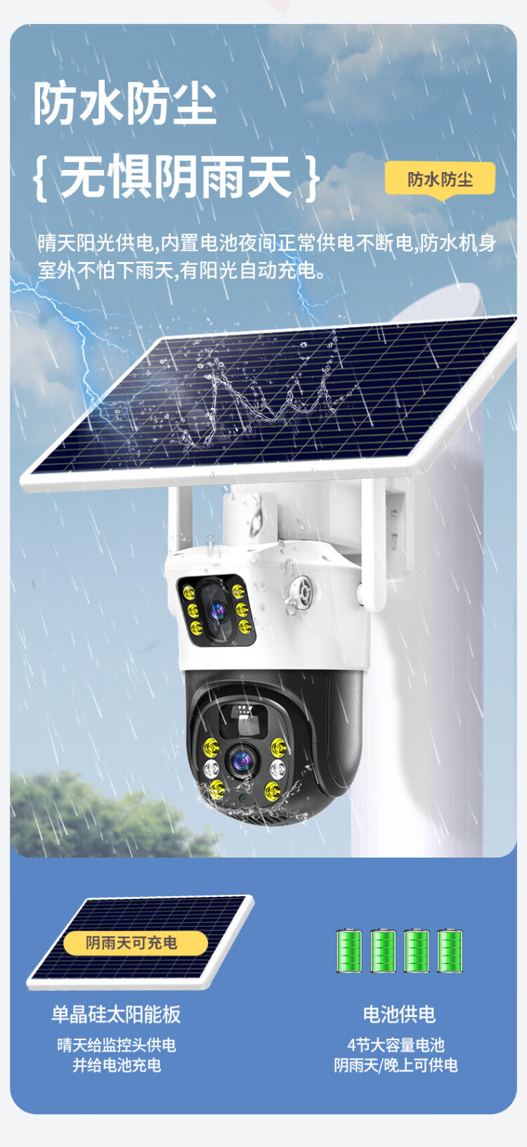 长城4g太阳能摄像头终身免流量无需充值室外无线监控器家用360度无死角带夜视全景无电无网无需连wifi