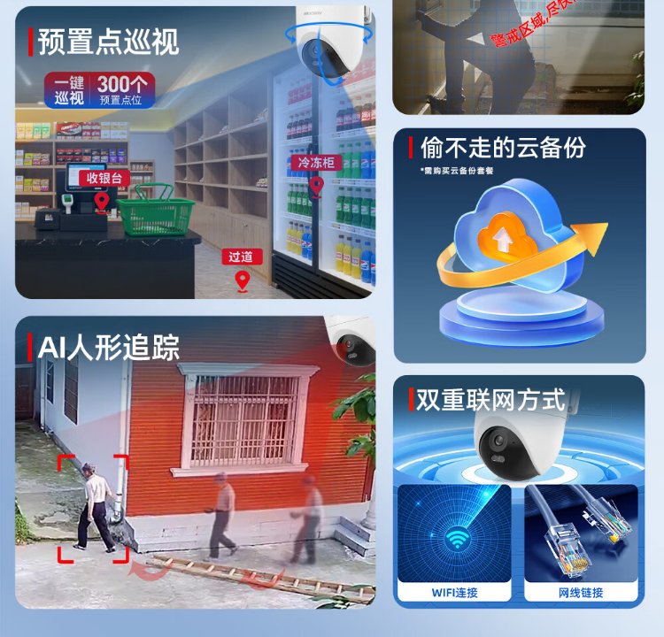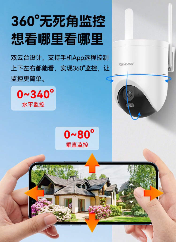 HIKVISION wireless wifi surveillance camera home indoor and outdoor 360-degree no blind spots with night vision dustproof and waterproof mobile phone remote monitor Q3P5M-W
