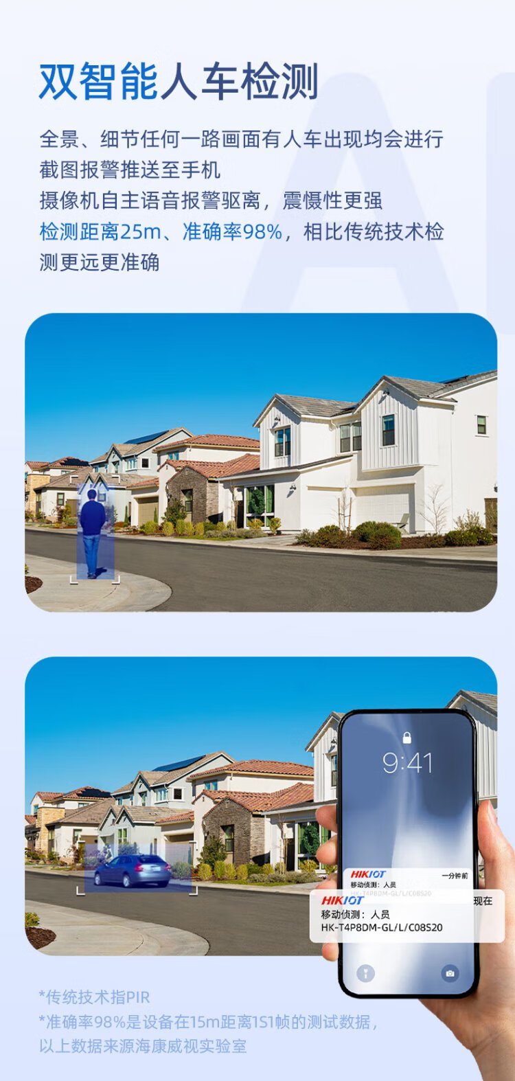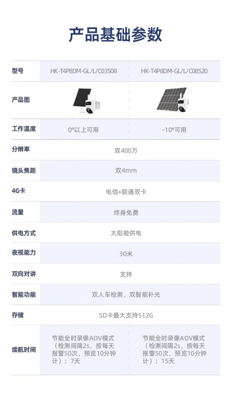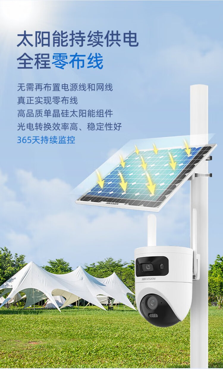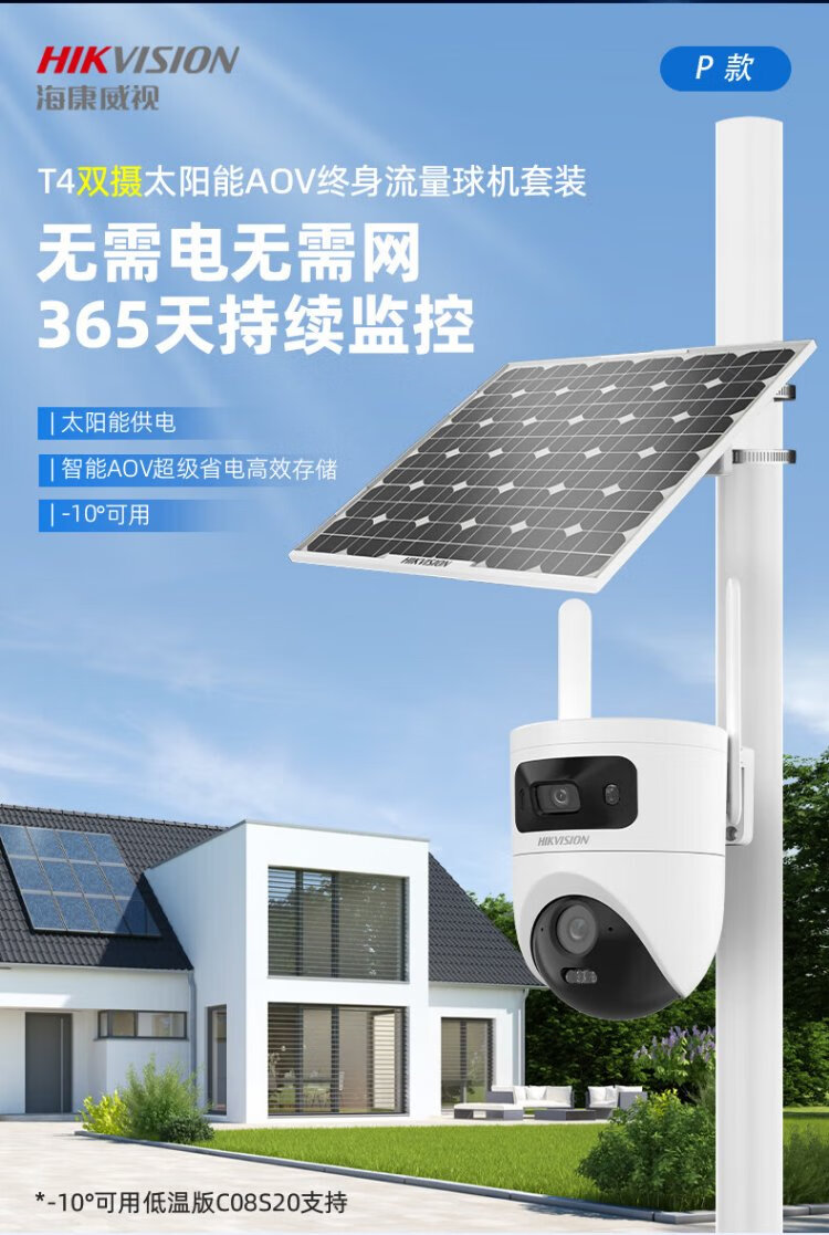 HIKVISION Caméra solaire 4G Trafic gratuit à vie 360 ​​degrés sans angle mort AOV Moniteur extérieur basse température Extérieur rural Pas de plug-in Pas d'alimentation Pas de réseau Téléphone portable à distance T4P