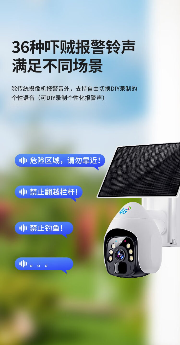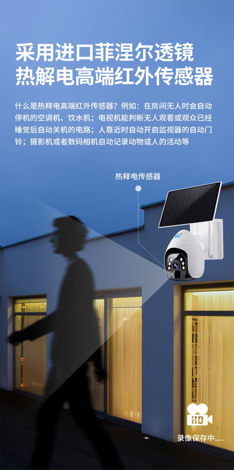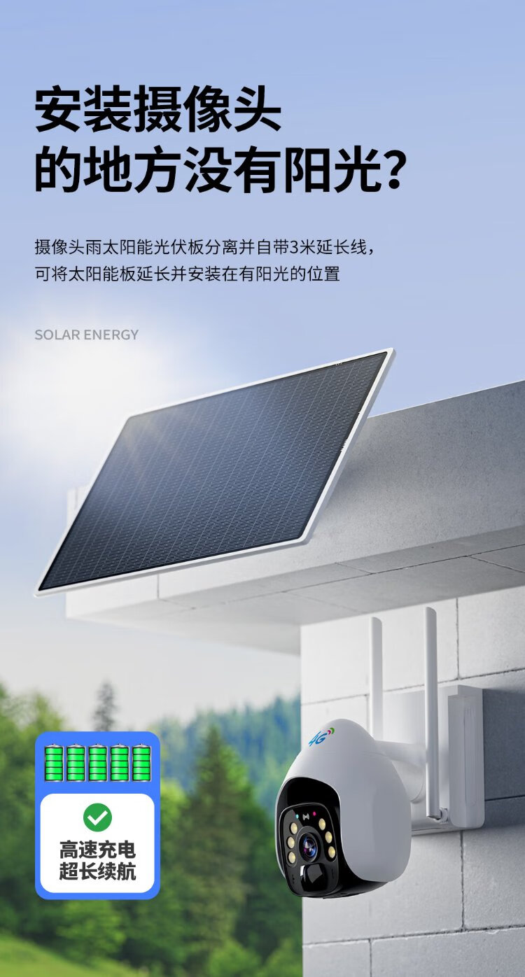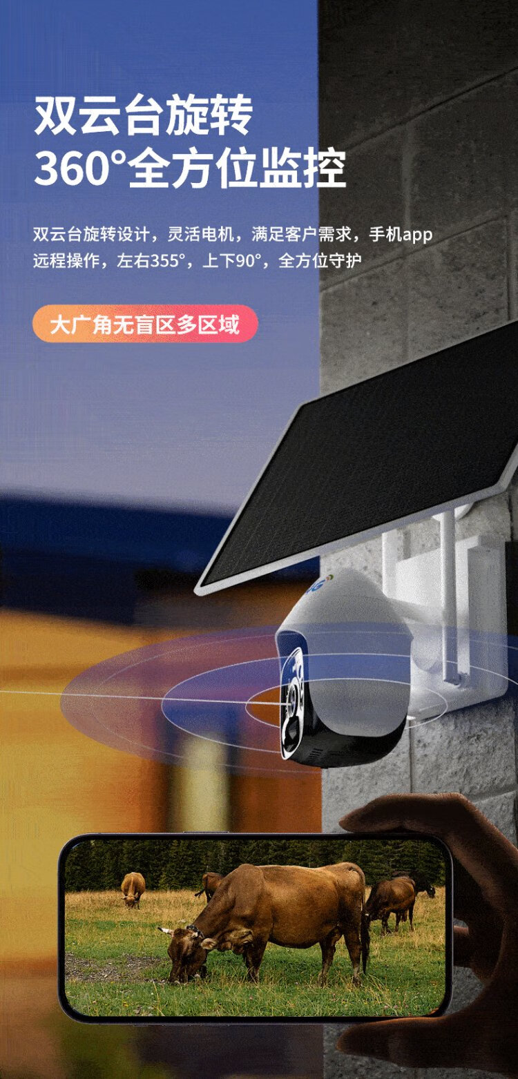 EAKUN 8 Millionen Solarkamera-Monitore im Freien ohne Strom und Netzwerk, drahtloser Außenmonitor mit Mobiltelefon-Fernbedienung, 360 Grad ohne toten Winkel, Panorama-Vollfarbverfolgung mit Nachtsicht, kein Plug-in, Solarstromversorgung – keine Netzwerk- oder Stromoption – 30-Tage-Loop-Aufzeichnung