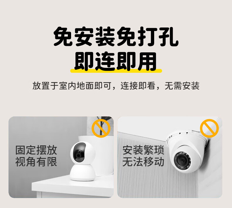 STJIATU可全屋360度移动无线宠物监控摄像头家用免插电手机远程监控器无死角带夜视 【WiFi版】不倒翁设计+手机远程 30天循环录像