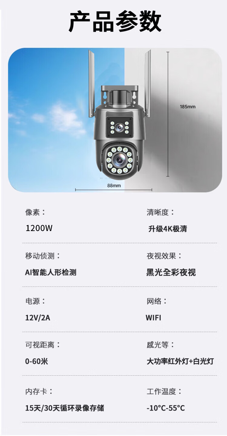 Километровый монитор безопасности «Божий глаз» Пожизненный бесплатный трафик Домашняя камера Сельская местность 360 градусов Без мертвого угла На открытом воздухе Пульт дистанционного управления мобильным телефоном с ночным видением HD На открытом воздухе Не требуется Wi-Fi 5G Бессрочно бесплатно + Двойной объектив 12 Мегапикселей + 12-кратное увеличение Гарантия десять лет