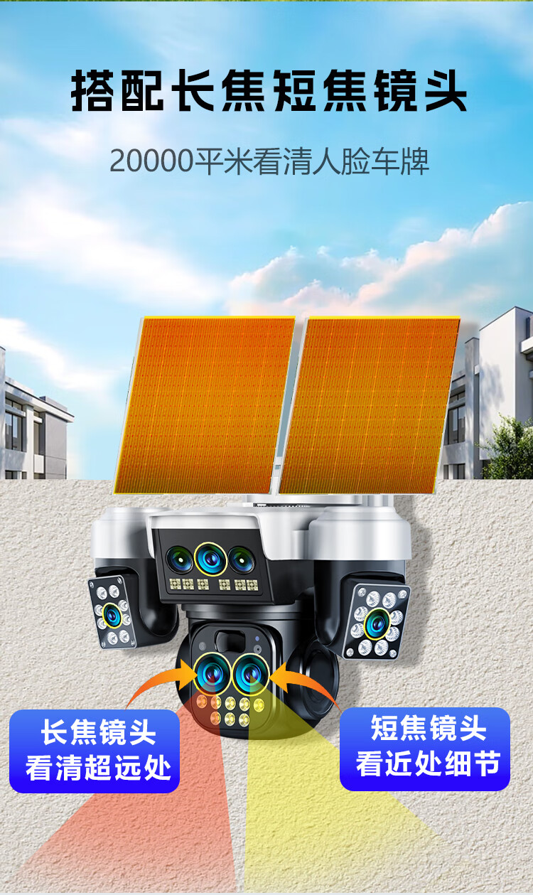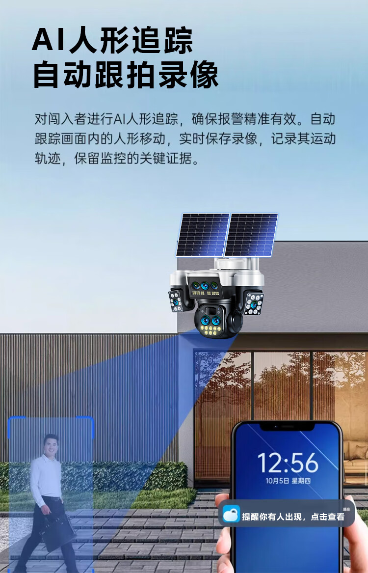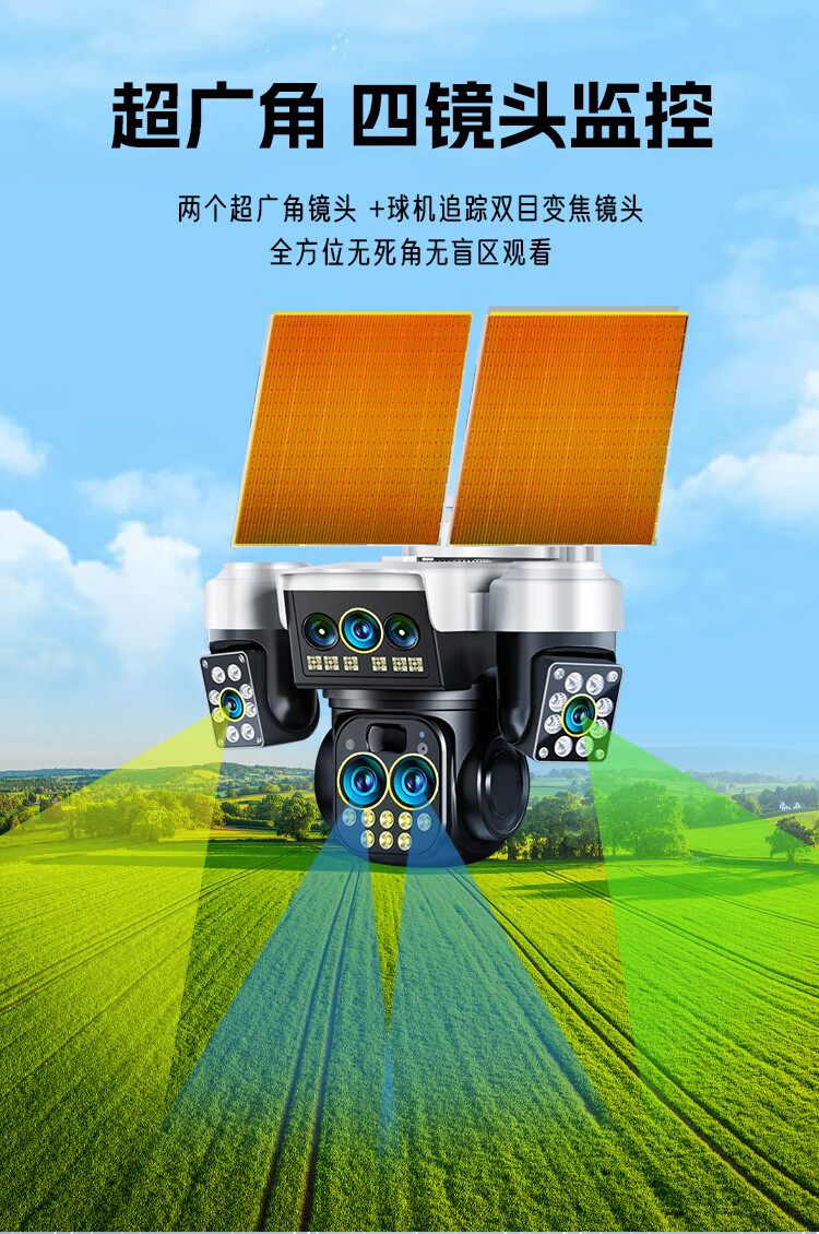 EAKUN5G4G монитор с солнечной камерой 360 градусов без слепых зон с ночным видением панорамное полноцветное отслеживание без электричества без сети в течение всего срока службы бесплатного трафика на открытом воздухе нет необходимости подключаться к Wi-Fi без подключаемого модуля солнечной батареи с четырьмя объективами с зумом + пожизненный бесплатный трафик + 30-дневная циклическая запись