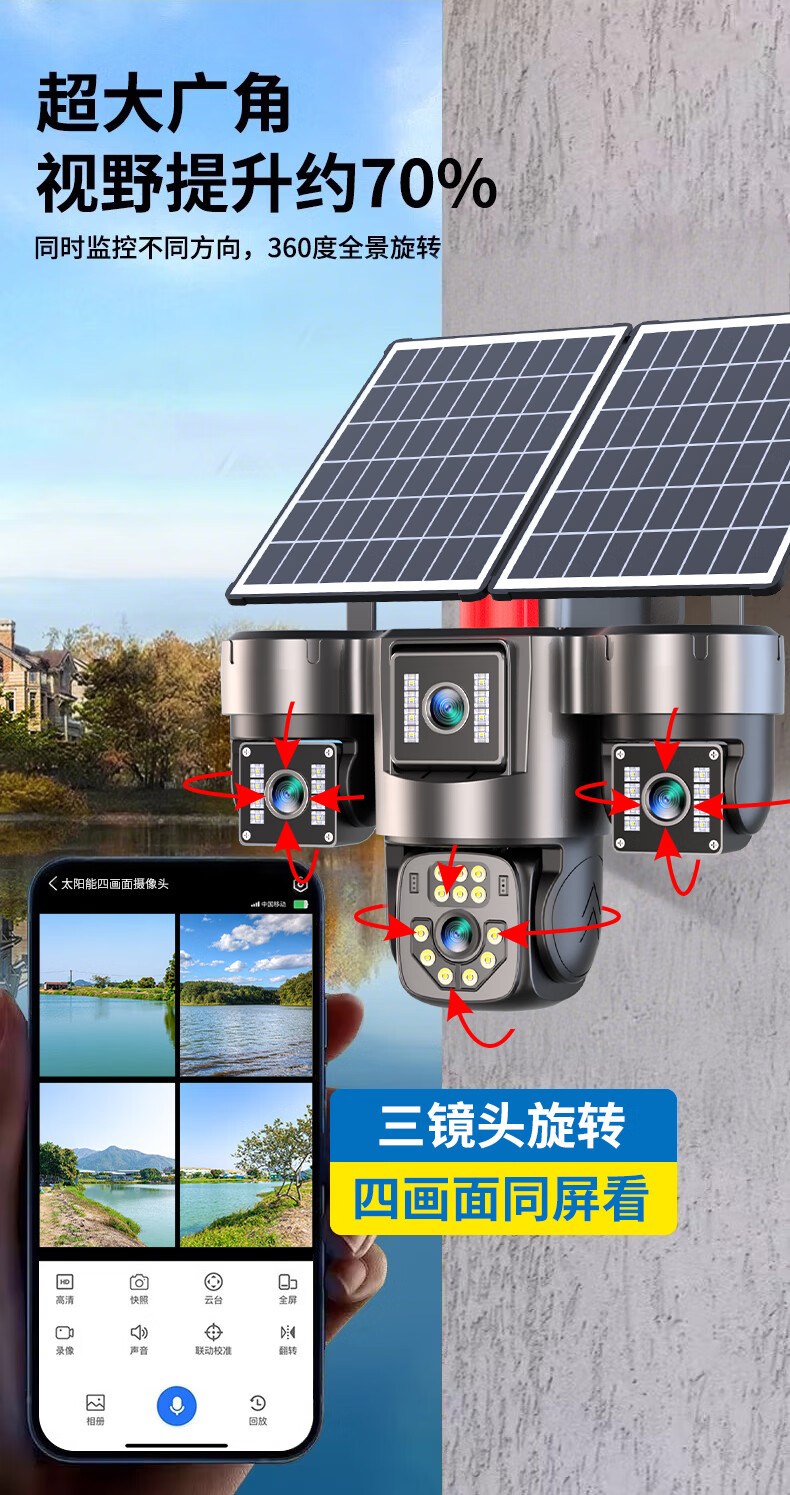 Coolpad 4G Solarkamera für den Außenbereich, Multikamera, kein Strom, kein Netzwerk, lebenslang kostenloser Datenverkehr, High Definition, kein Plug-In-Monitor, 360 Grad, keine toten Winkel, mit Nachtsicht, Outdoor-Pflege, 4G ohne Aufladen + AOV Super-Energiesparen + HiSilicon-Chip + 64G-Karte