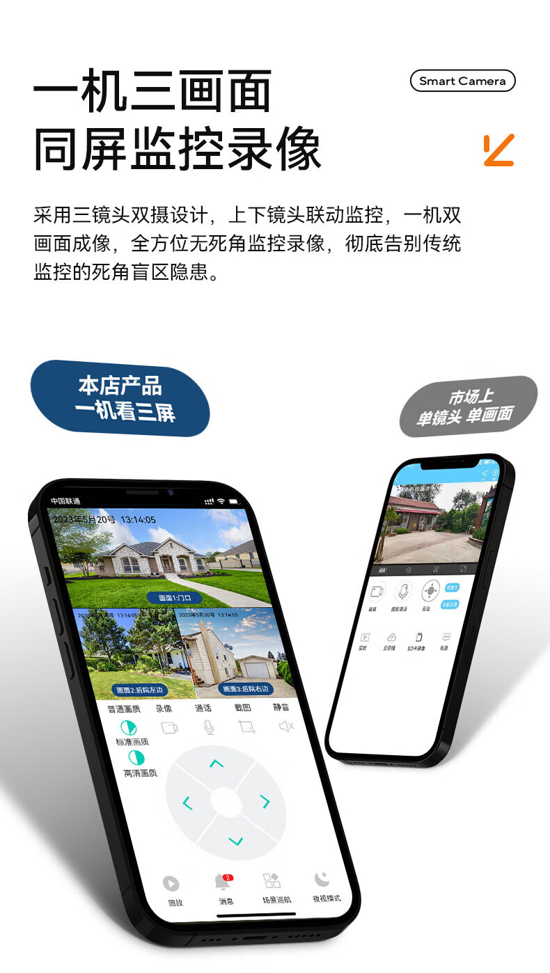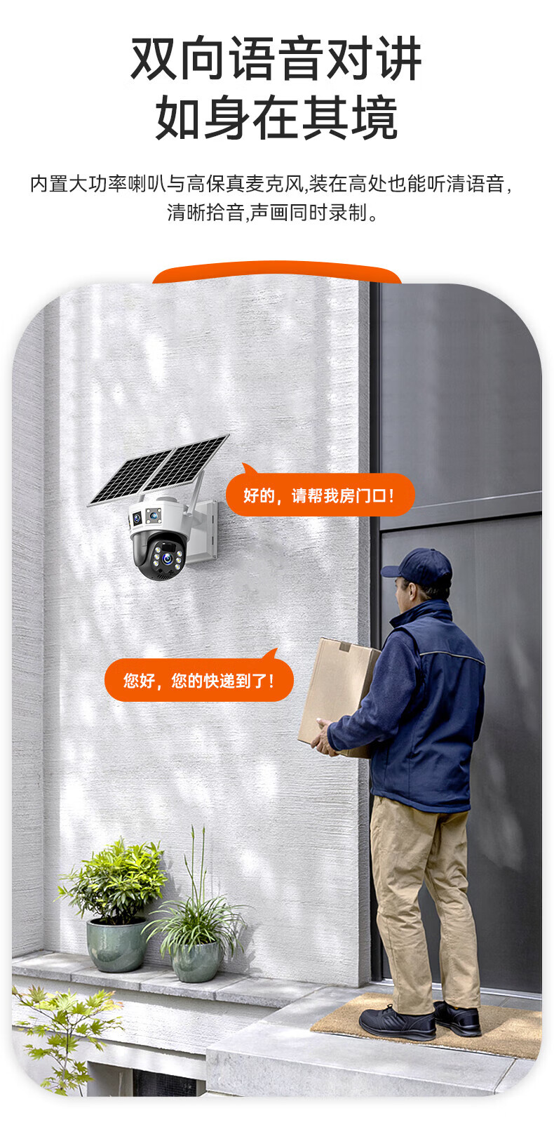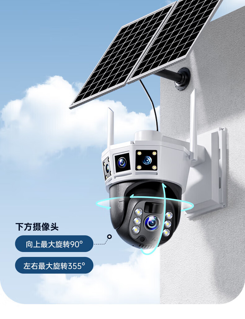 XMSJ Solar Camera 4G Lifetime Free Traffic No Power No Network No Plug-in Outdoor Monitor 360 Degree Panorama No Dead Angle Full Color Night Vision Tracking Monitoring Outdoor Camera Double Board Fast Charging Solar Power 4G No Recharge + 30 Days Loop Recording Available No Power No Network
