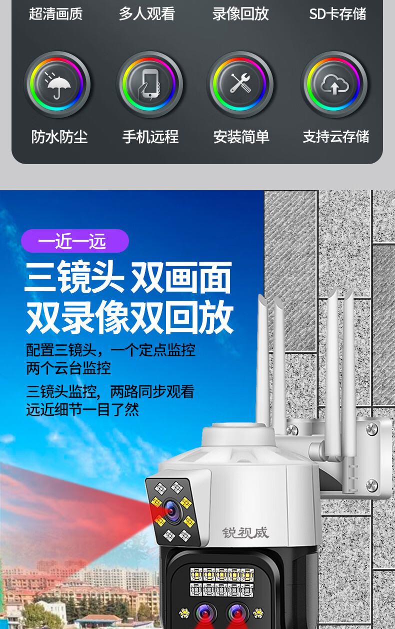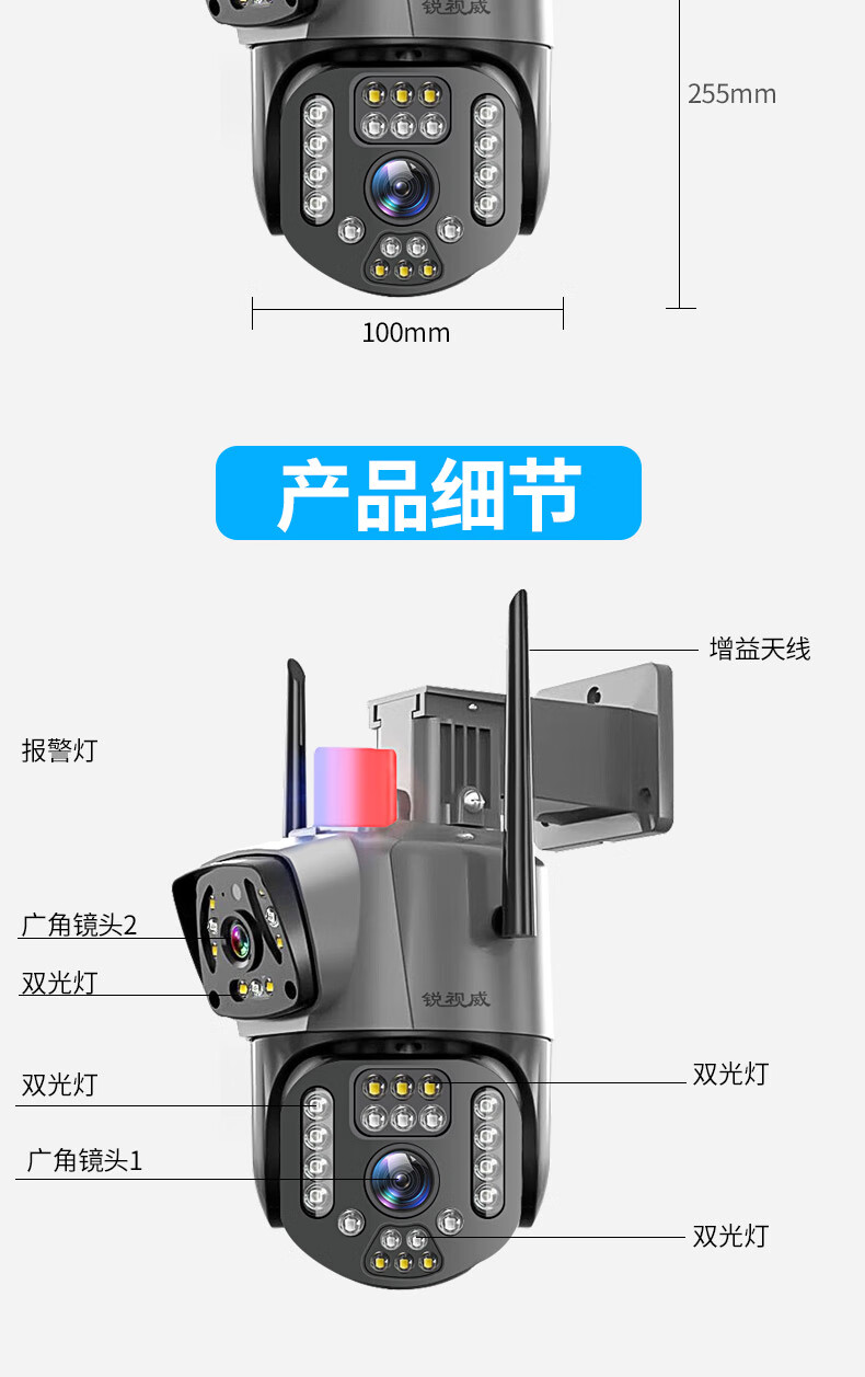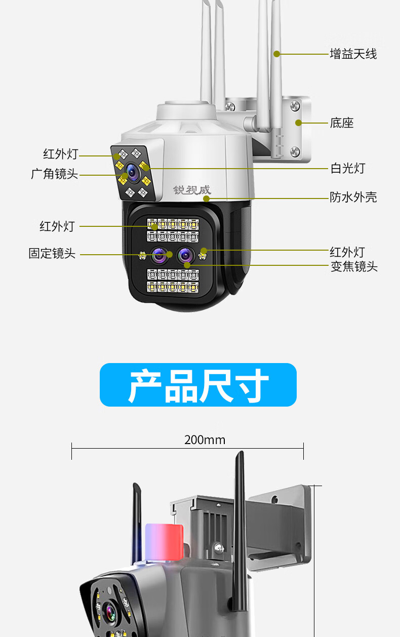 Ruishiwei HD-Doppelkamera-Überwachung im Freien, wasserdichter Heimmonitor, 360 Grad, kein toter Winkel, mit Nachtsicht, Panorama-Sprachvideo, Mobiltelefon, abgelegenes, ländliches Zuhause, kabellose Außenkugel, Doppelkamera, WLAN, Akkulaufzeit, Version 128, Speicherkarte