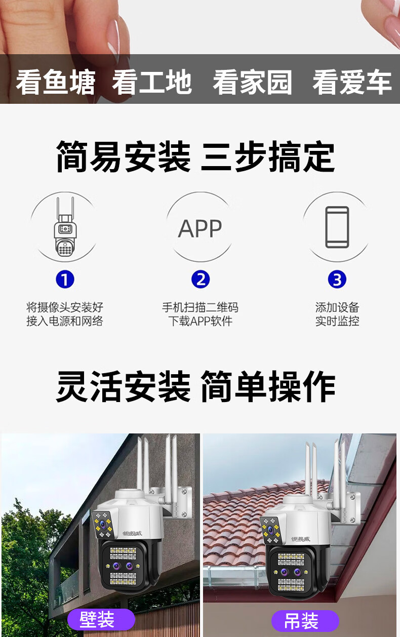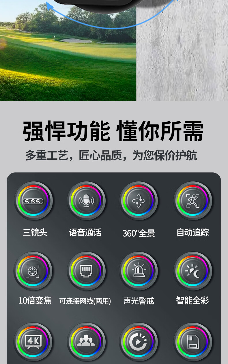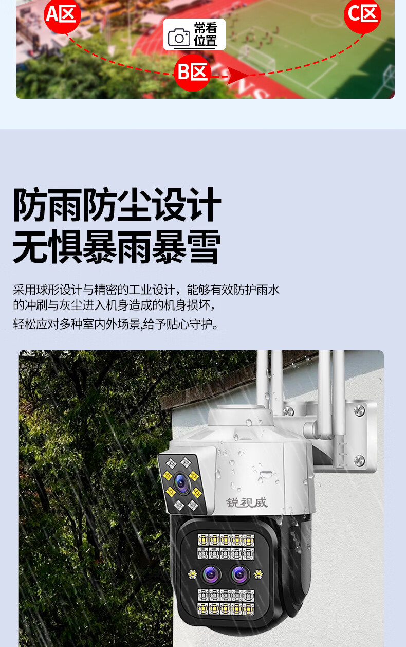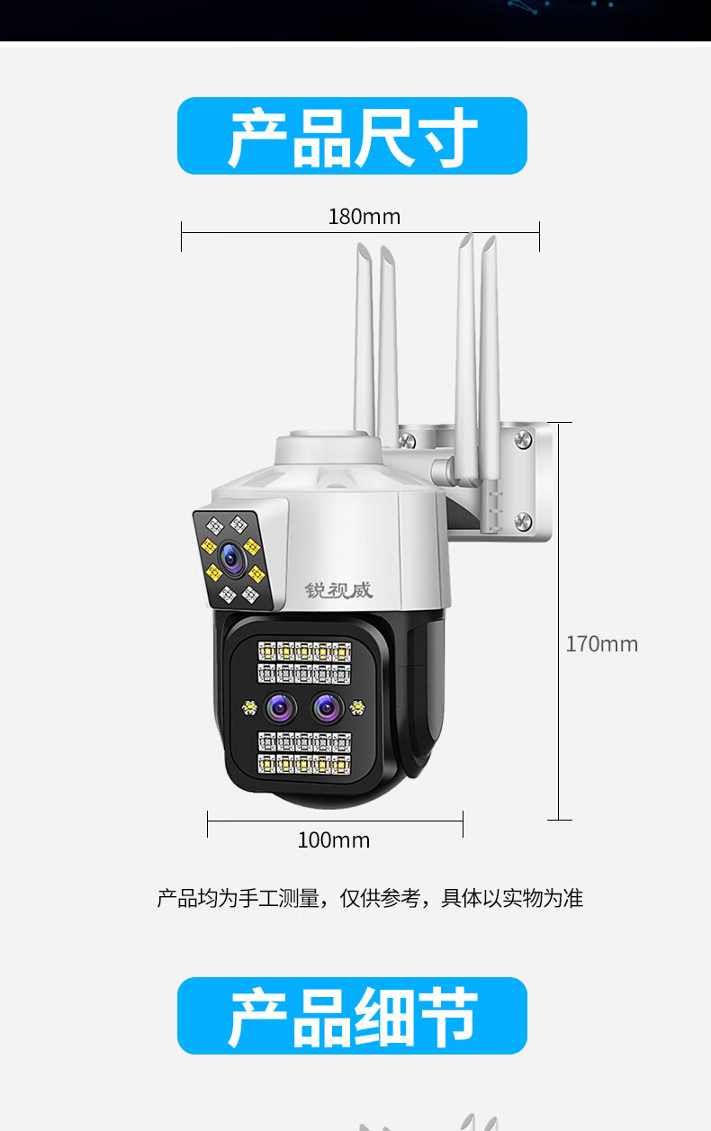 Ruishiwei HD-Doppelkamera-Überwachung im Freien, wasserdichter Heimmonitor, 360 Grad, kein toter Winkel, mit Nachtsicht, Panorama-Sprachvideo, Mobiltelefon, abgelegenes, ländliches Zuhause, kabellose Außenkugel, Doppelkamera, WLAN, Akkulaufzeit, Version 128, Speicherkarte