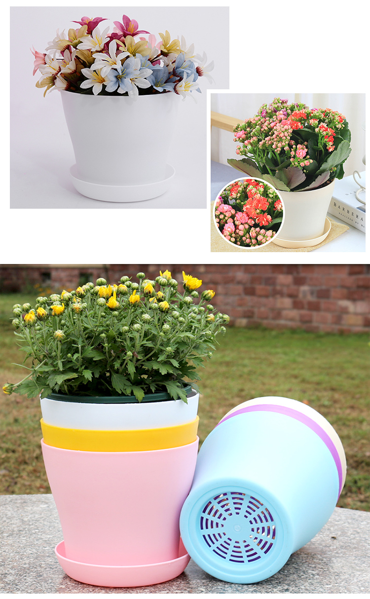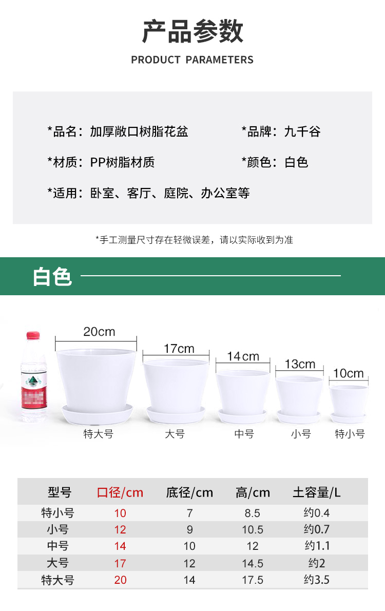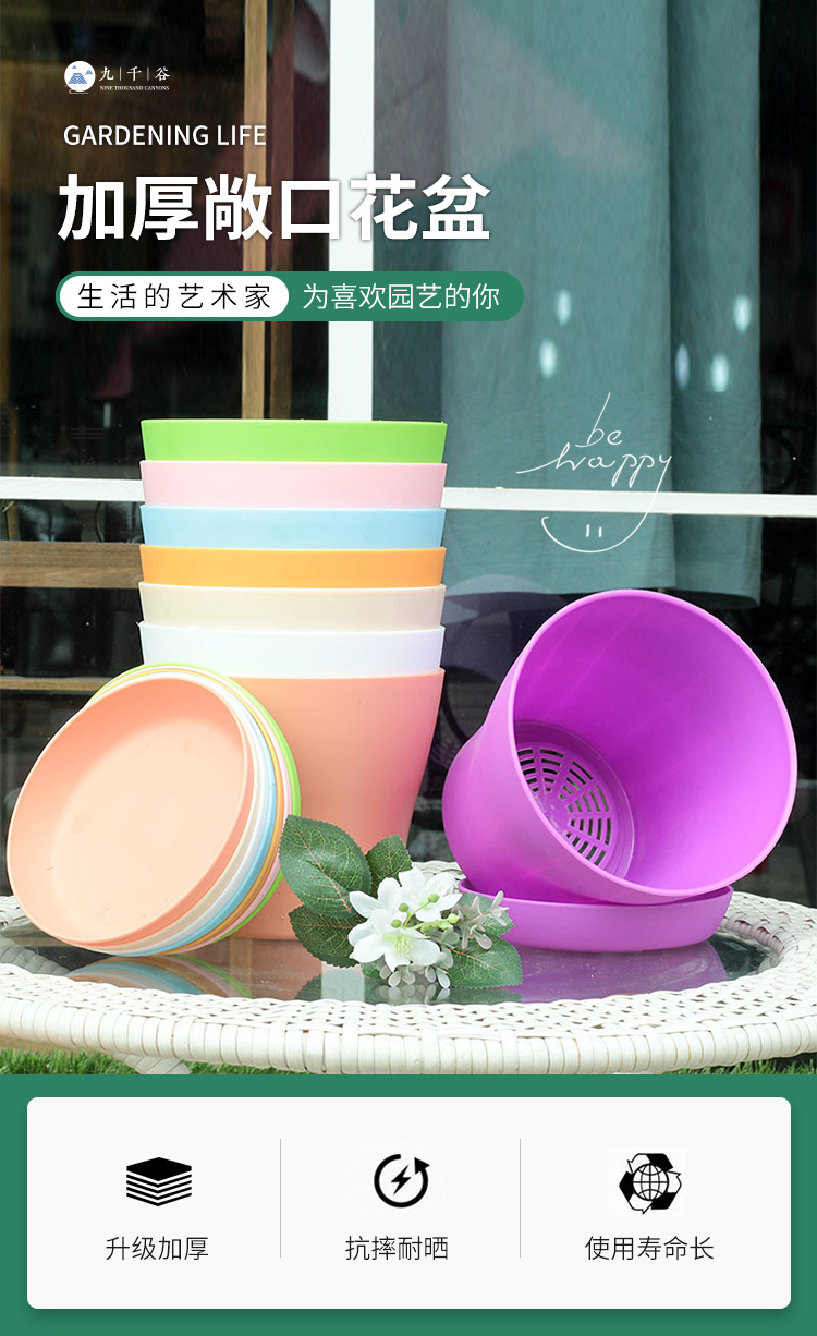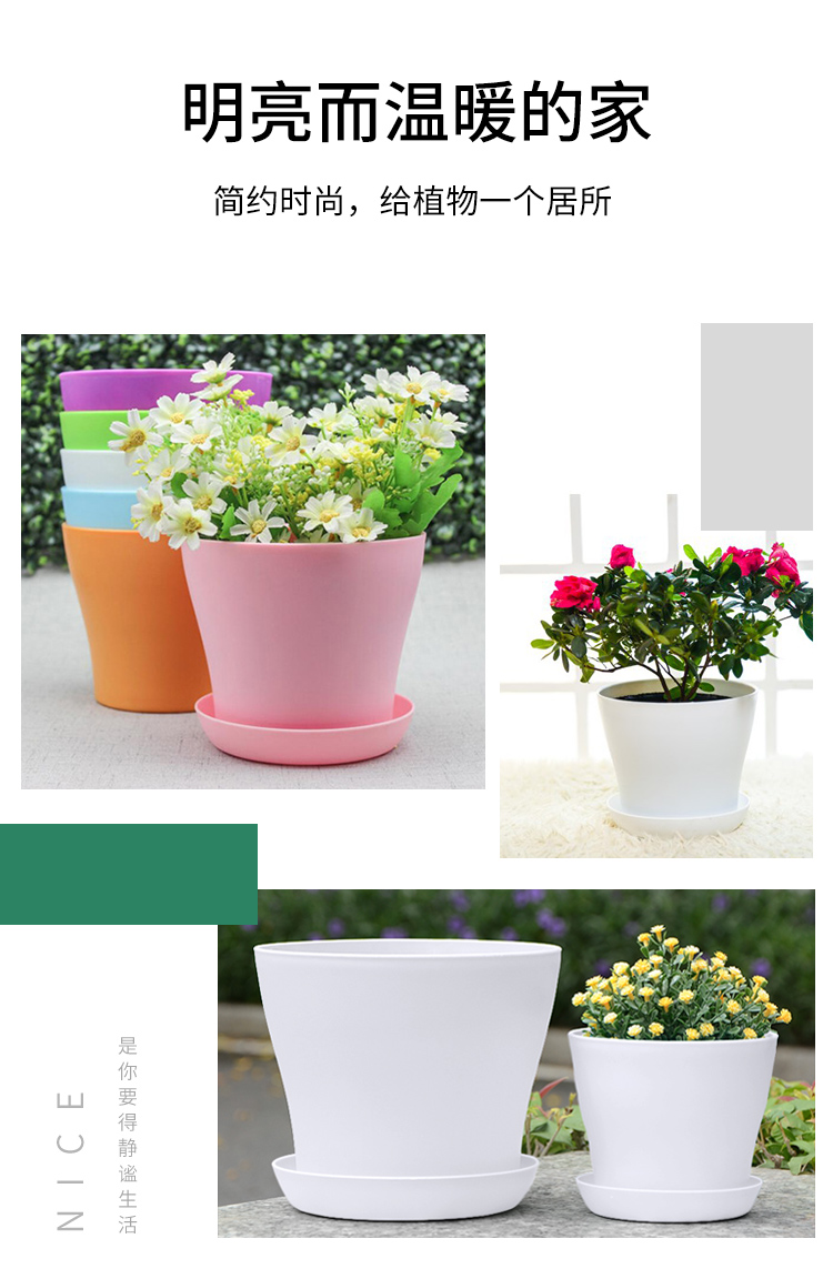 Jiuqiangu flowerpot open diameter extra large 2 pack plastic thickened and deepened simple resin flowerpot white with tray 3880