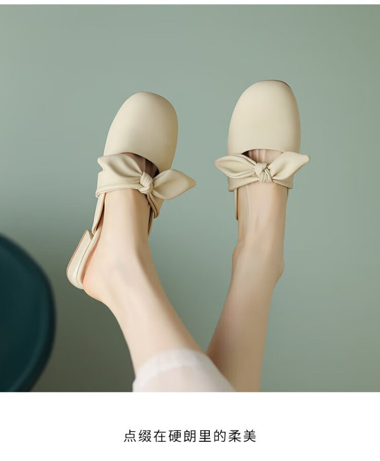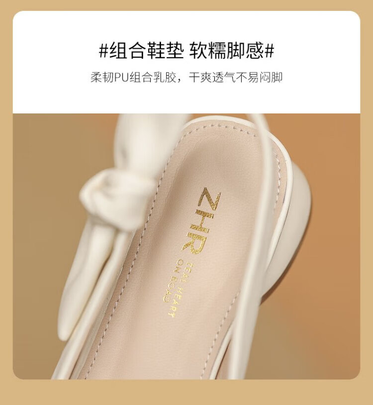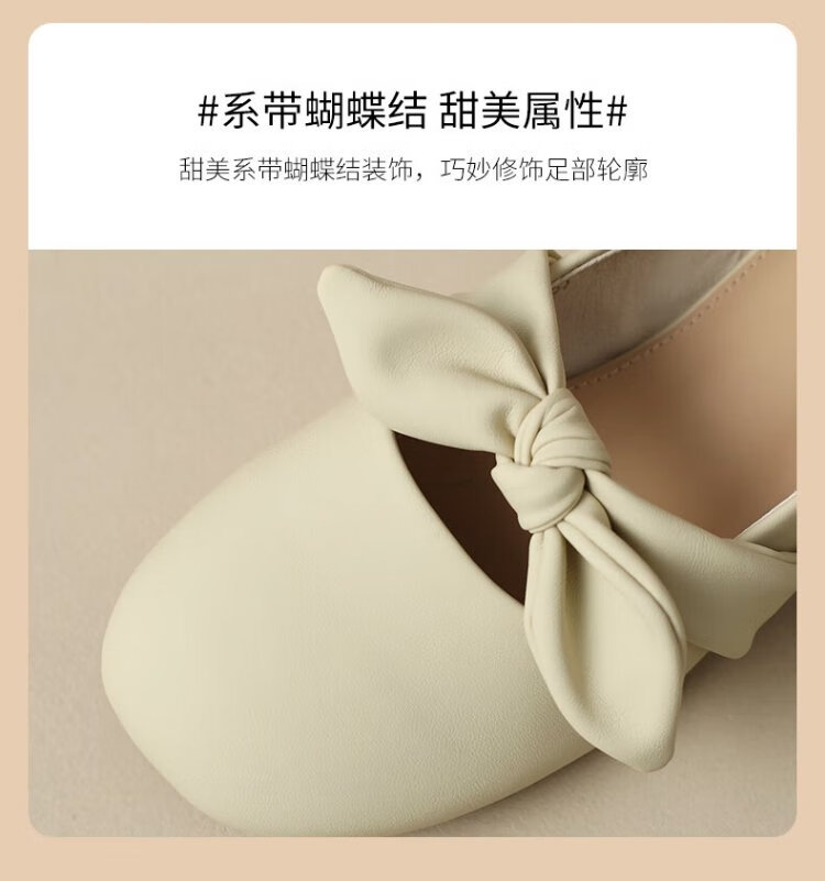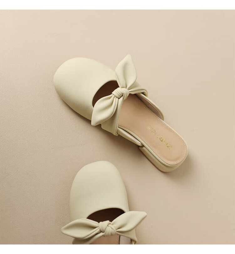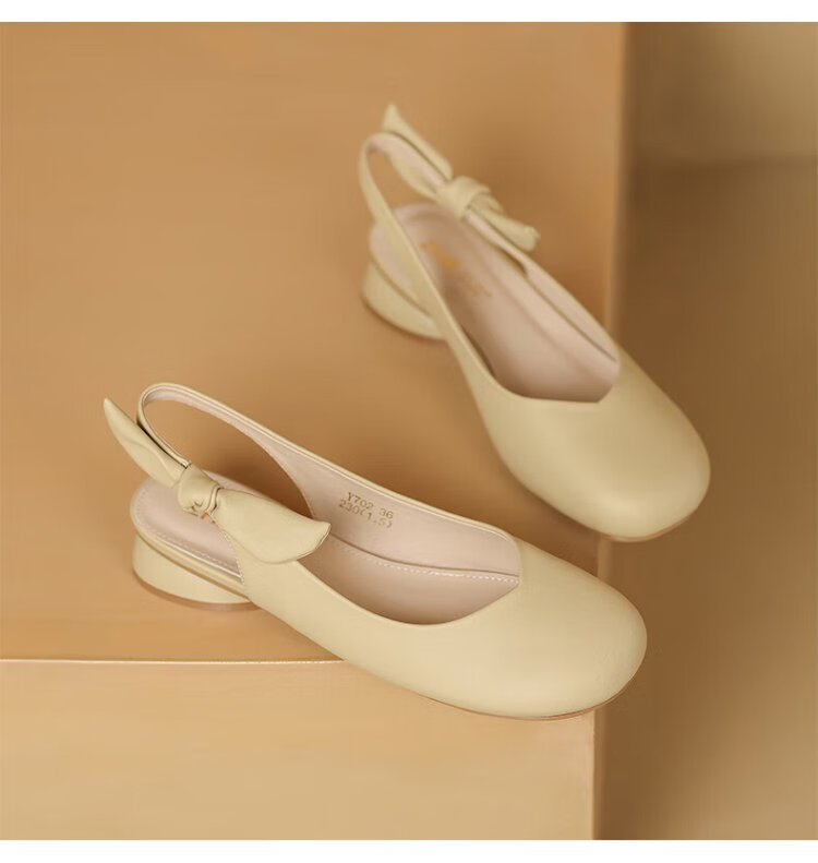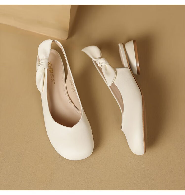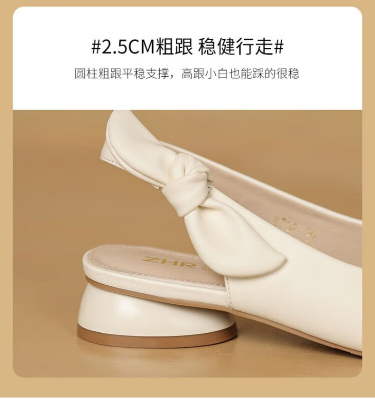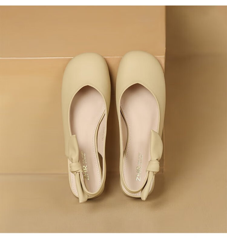 ZHR single sandals for women summer sweet bow single shoes women's fashionable toe thick heel women's shoes Y702 beige 35
