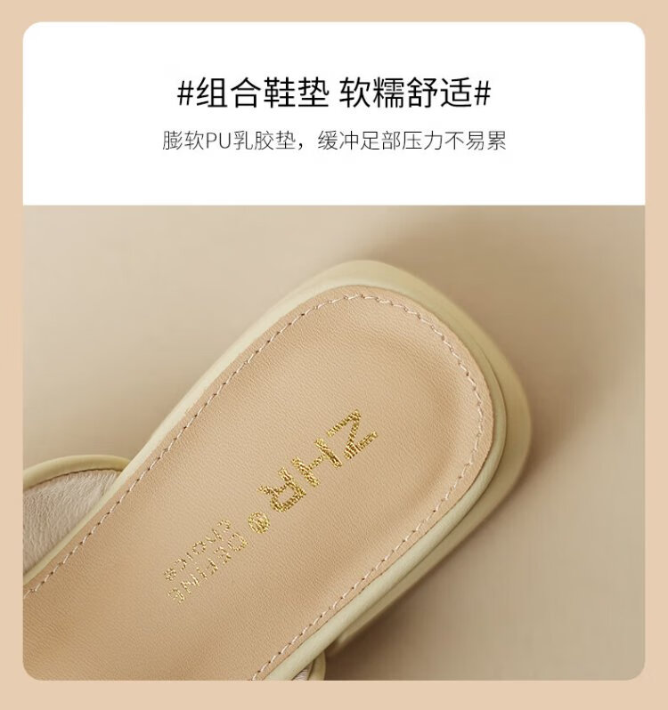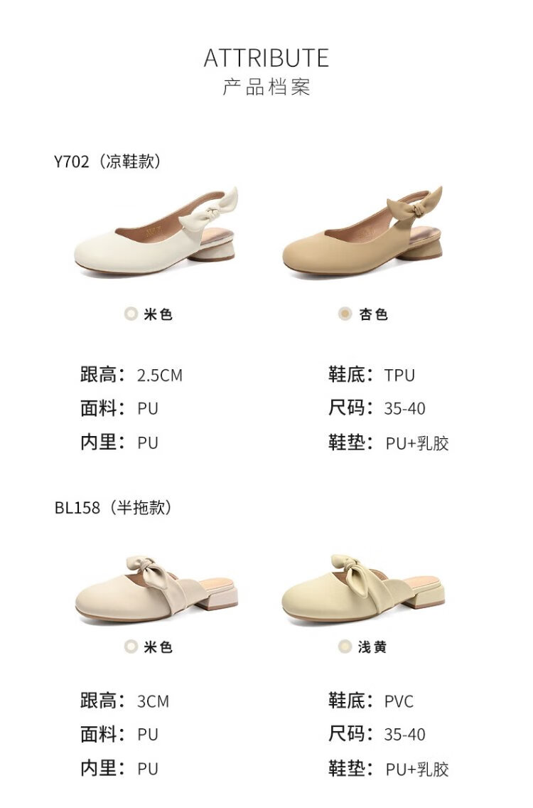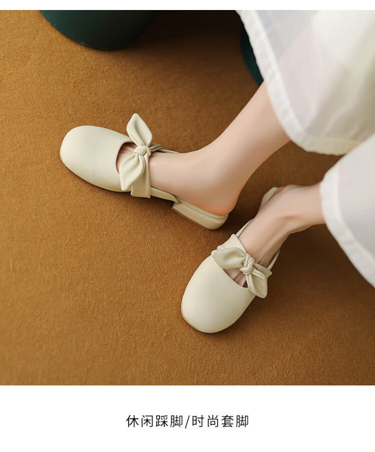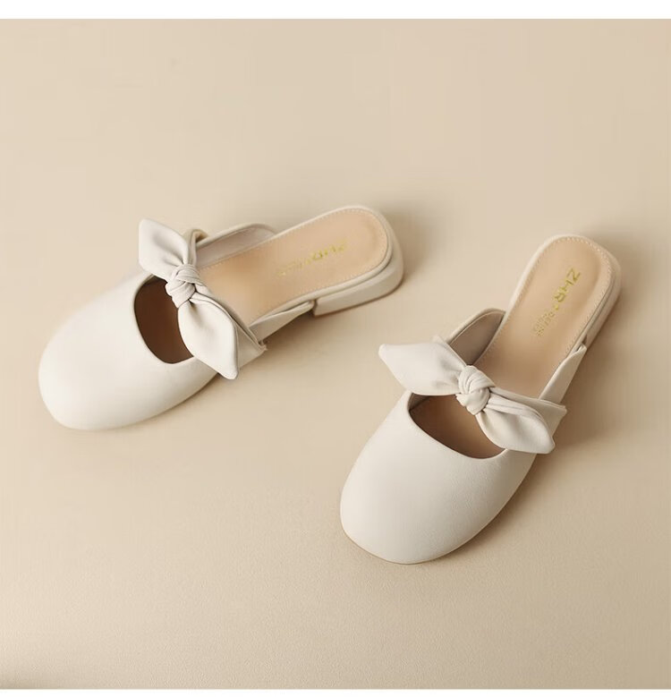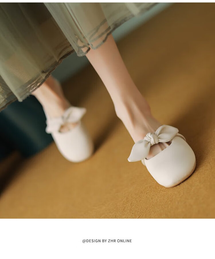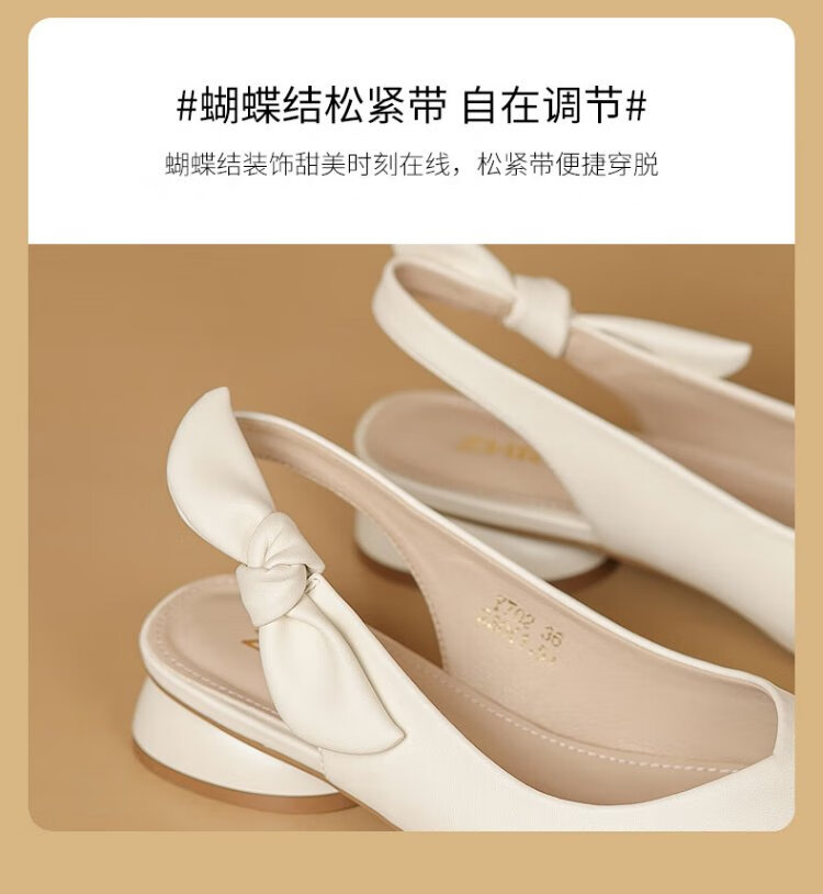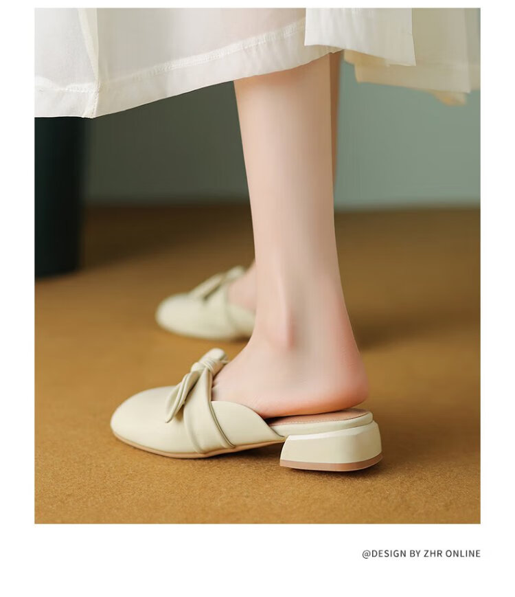 ZHR single sandals for women summer sweet bow single shoes women's fashionable toe thick heel women's shoes Y702 beige 35