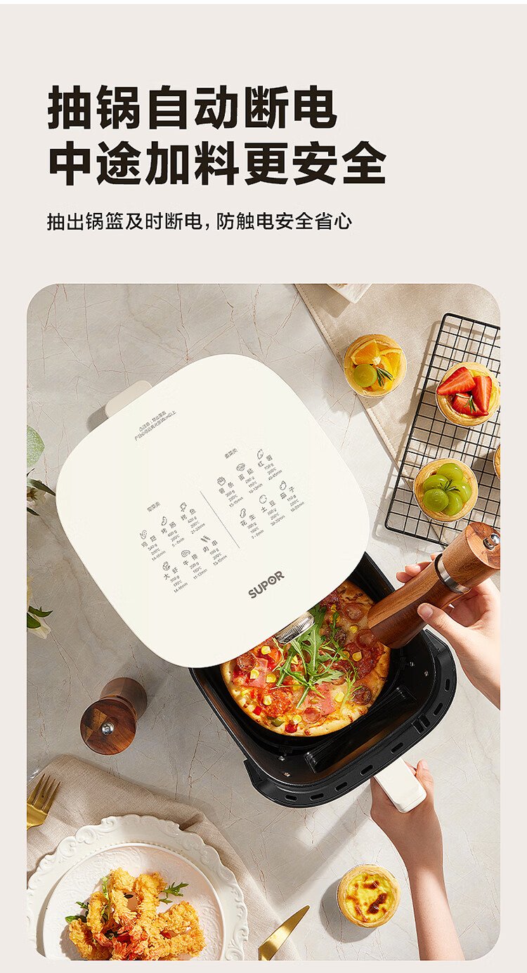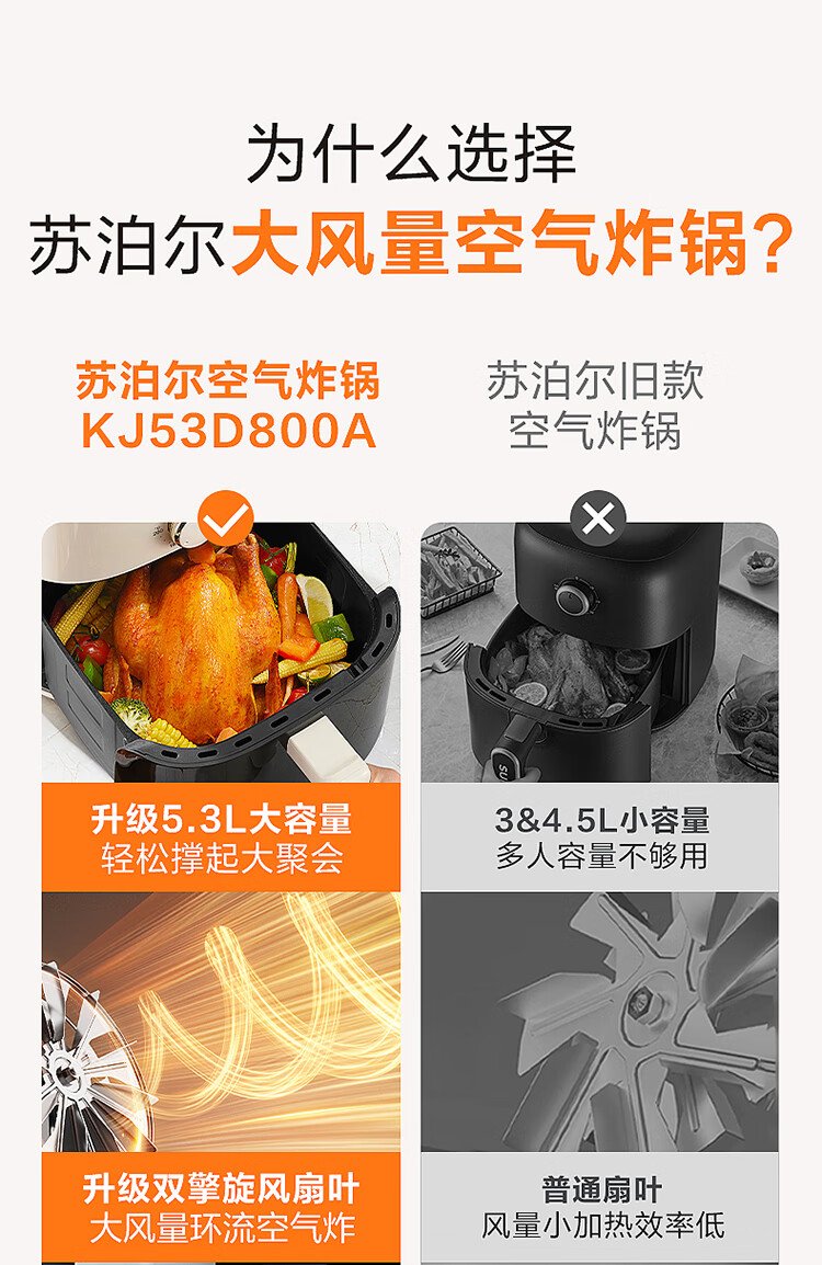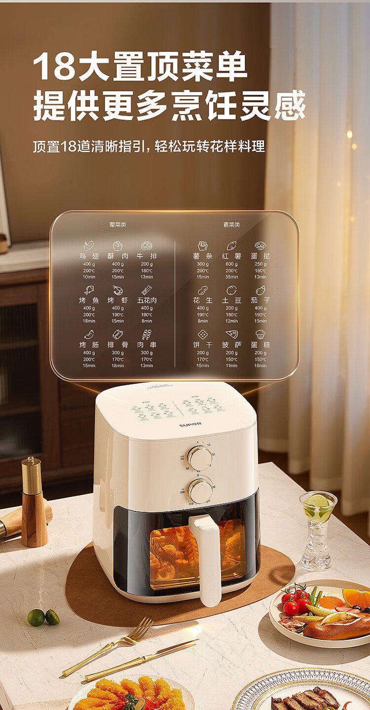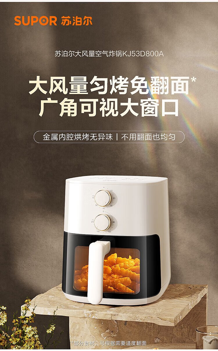 SUPOR air fryer no-turning 5.3L large-capacity household visual frying and baking machine steam tender electric fryer fully automatic no-turning KJ53D800A
