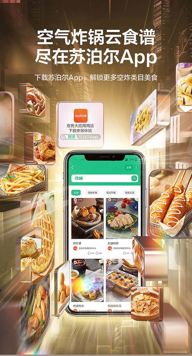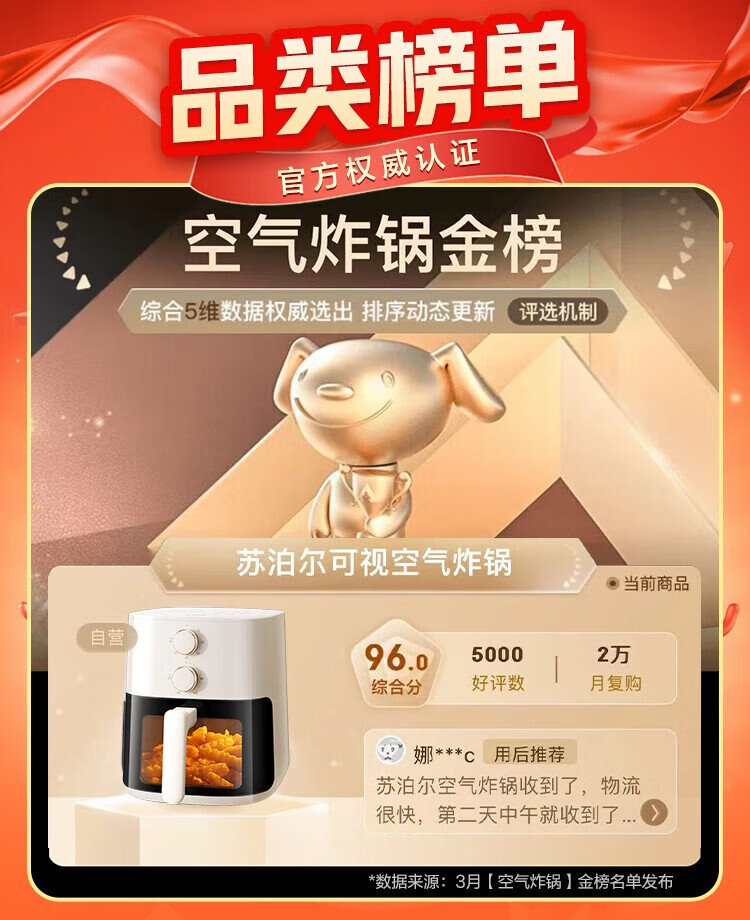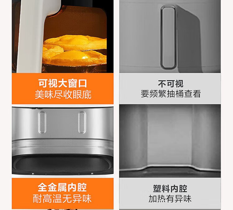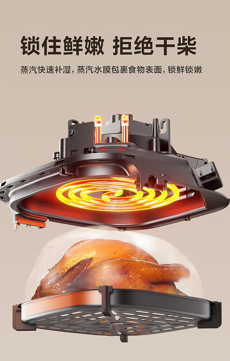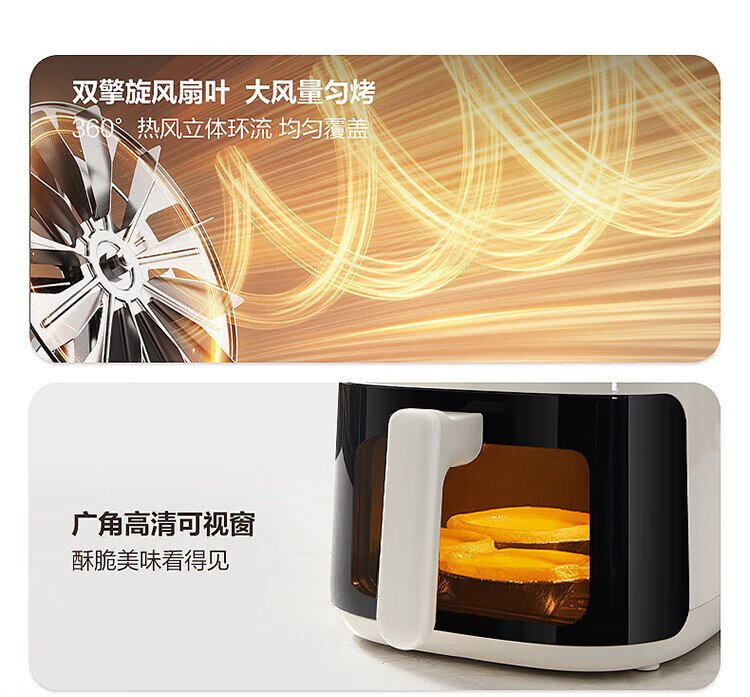 SUPOR air fryer no-turning 5.3L large-capacity household visual frying and baking machine steam tender electric fryer fully automatic no-turning KJ53D800A