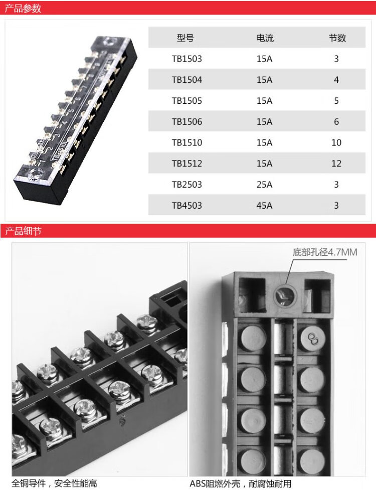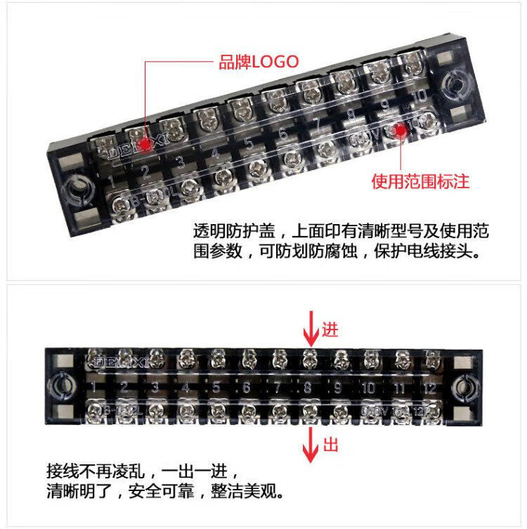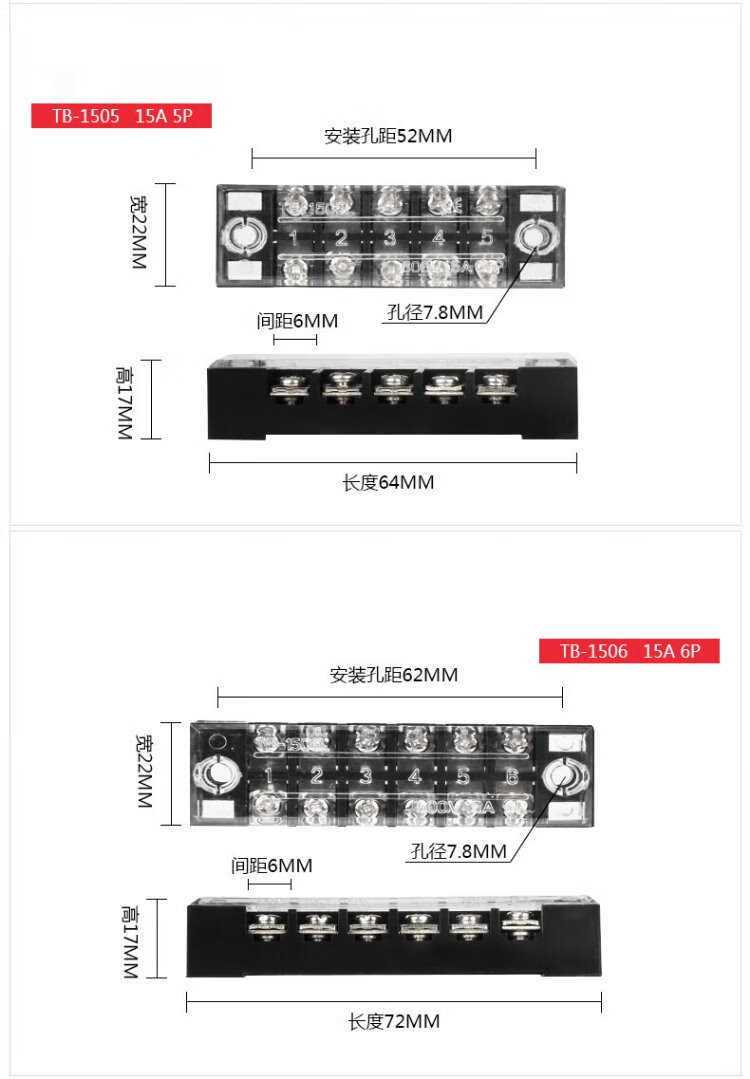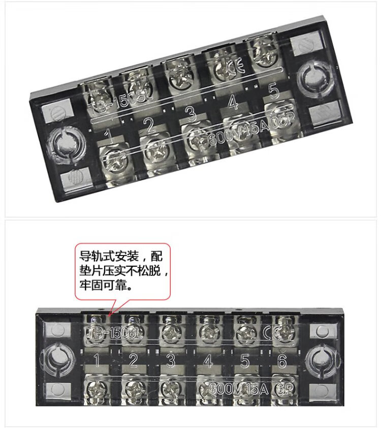 Delixi electrical terminal block TB series combined terminal block 15A 6-position flame retardant and anti-corrosion connection block terminal TB1506