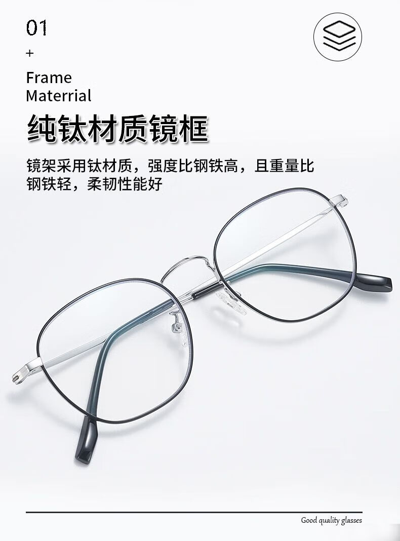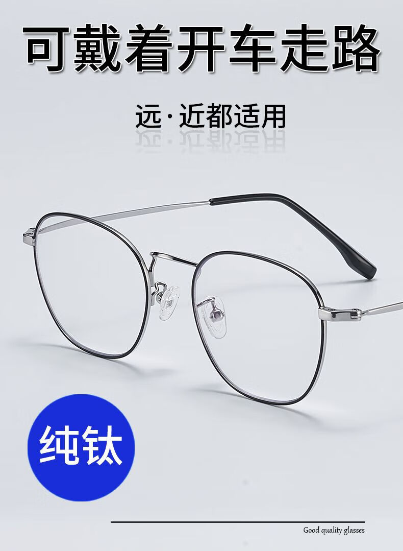 GOGOSOON纯钛超轻远中近三用男女款老花眼镜防蓝光高清时尚高档大框老年镜