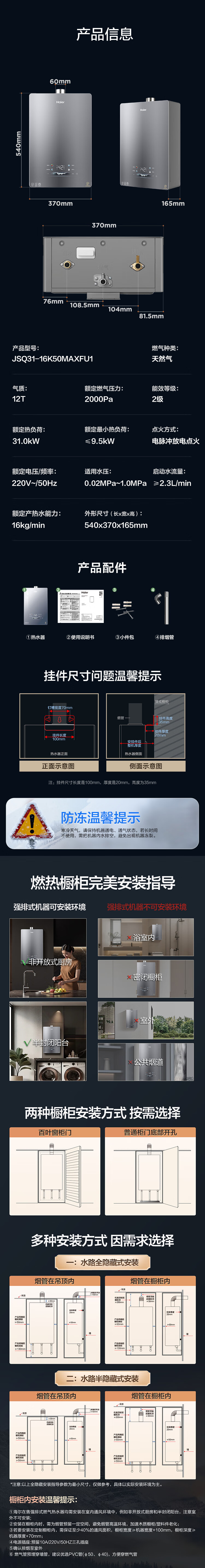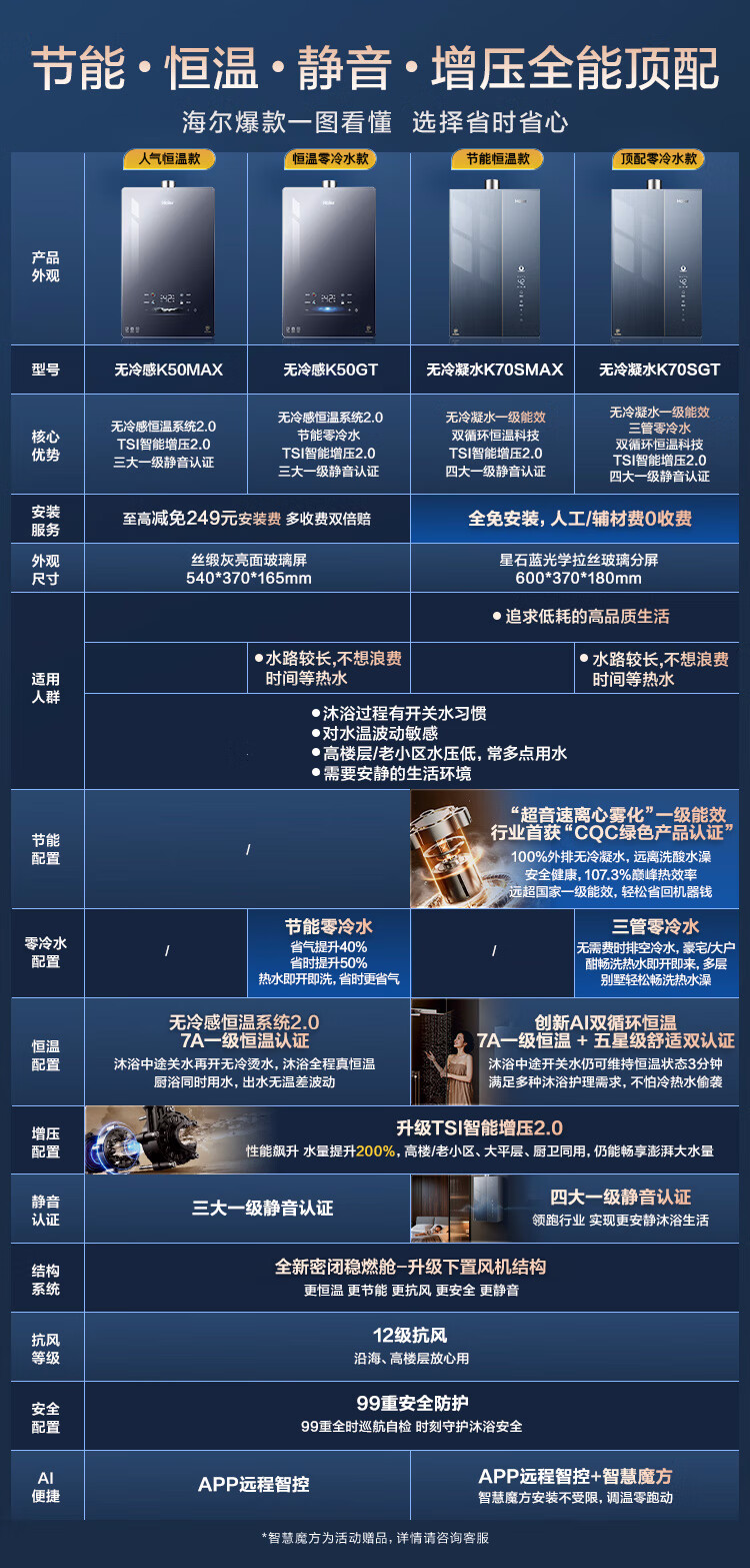 Haier K50MAX non-cold feeling 2.0 16-liter gas water heater natural gas 7A level 1 constant temperature, full range warm, supercharged, large water volume, level 1 silent, 15% national subsidy