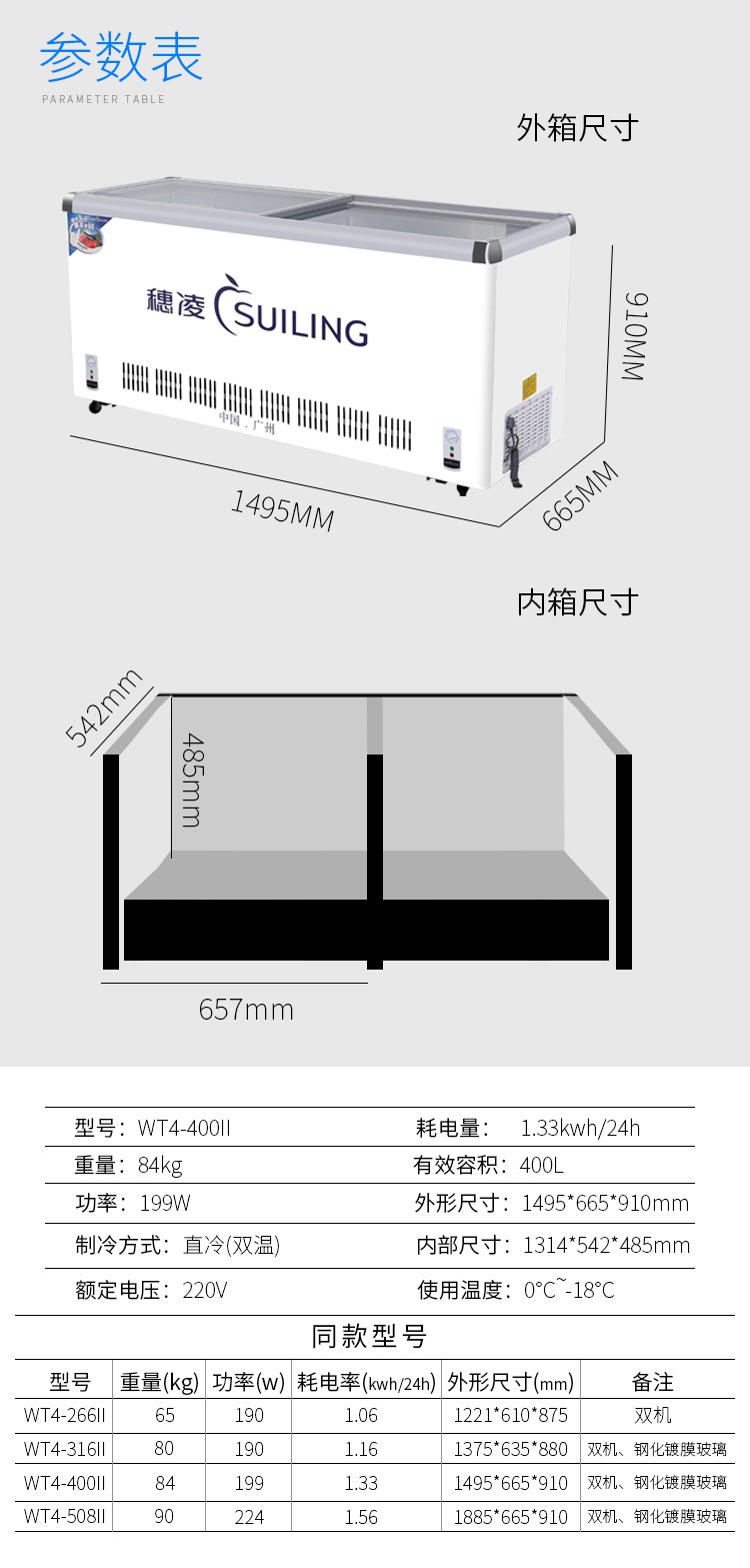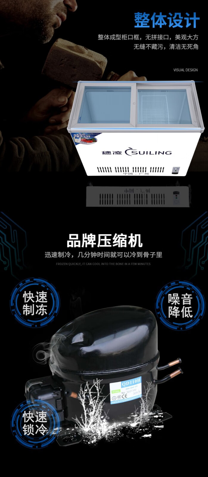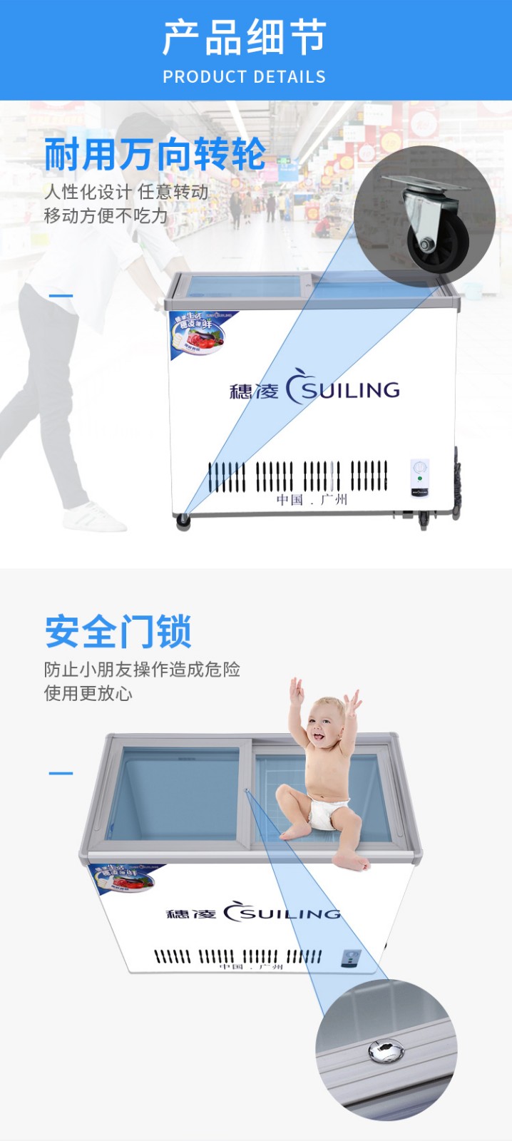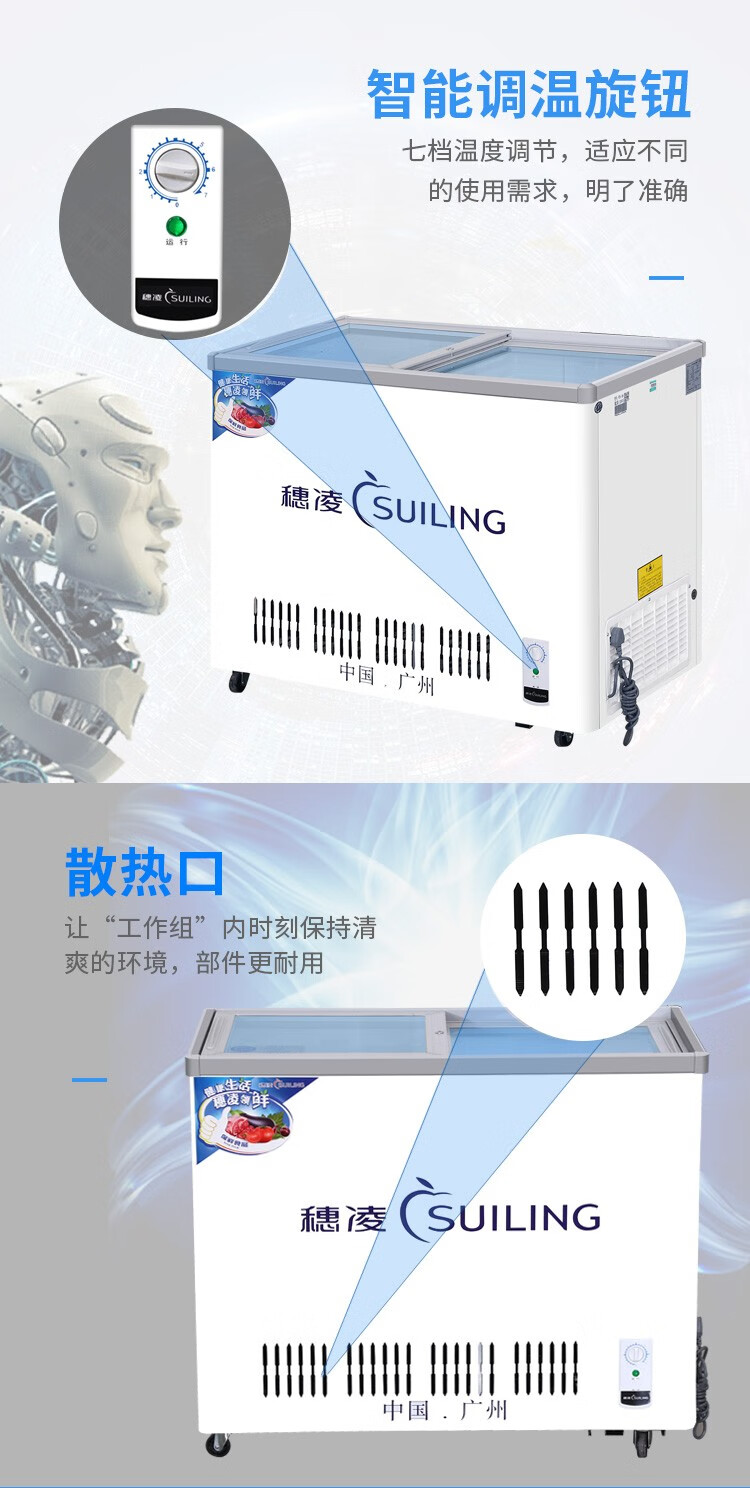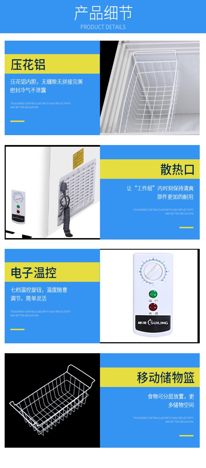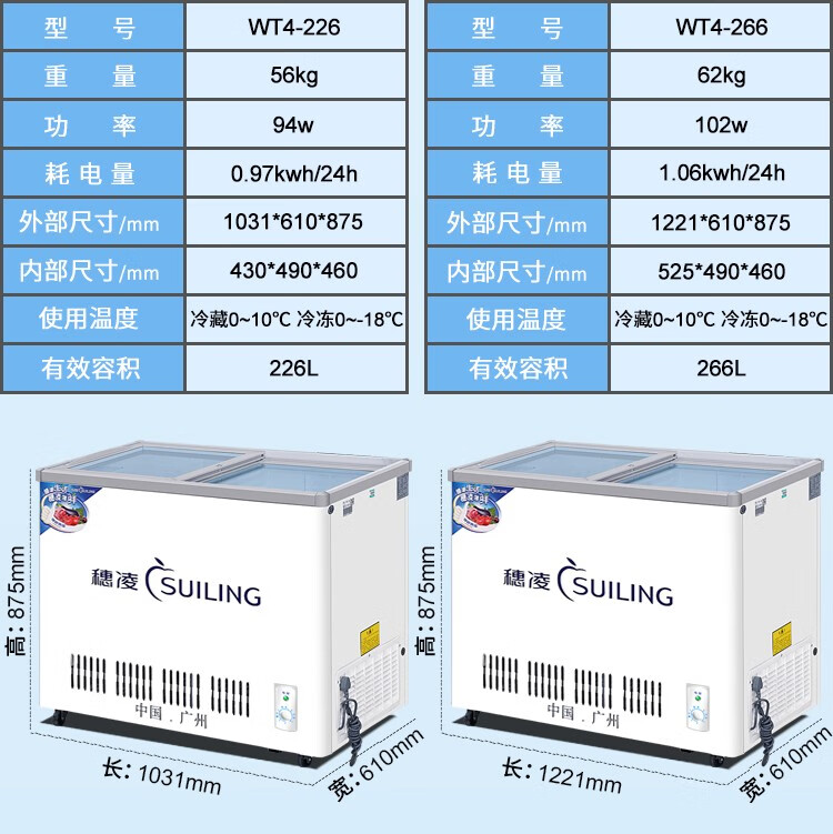 Suiling (SUILING) Gefrierschrank mit zwei Temperaturen, horizontaler Zweikammer-Gefrierschrank zum Kühlen und Gefrieren, großer Kapazitäts-Haushalts- und Gewerbekühlschrank, super energiesparender und stromsparender Kommunalkommissar-Kühlschrank WT4-266K (1115 x 625 x 835), doppelte Temperatur