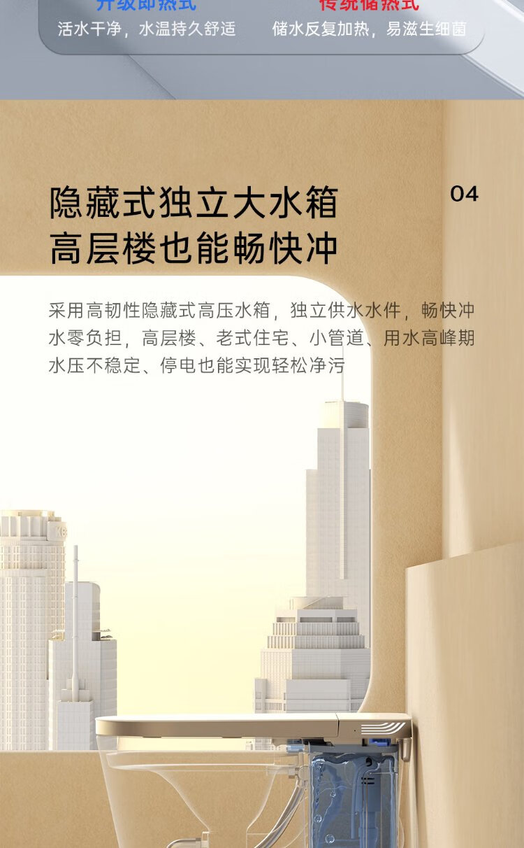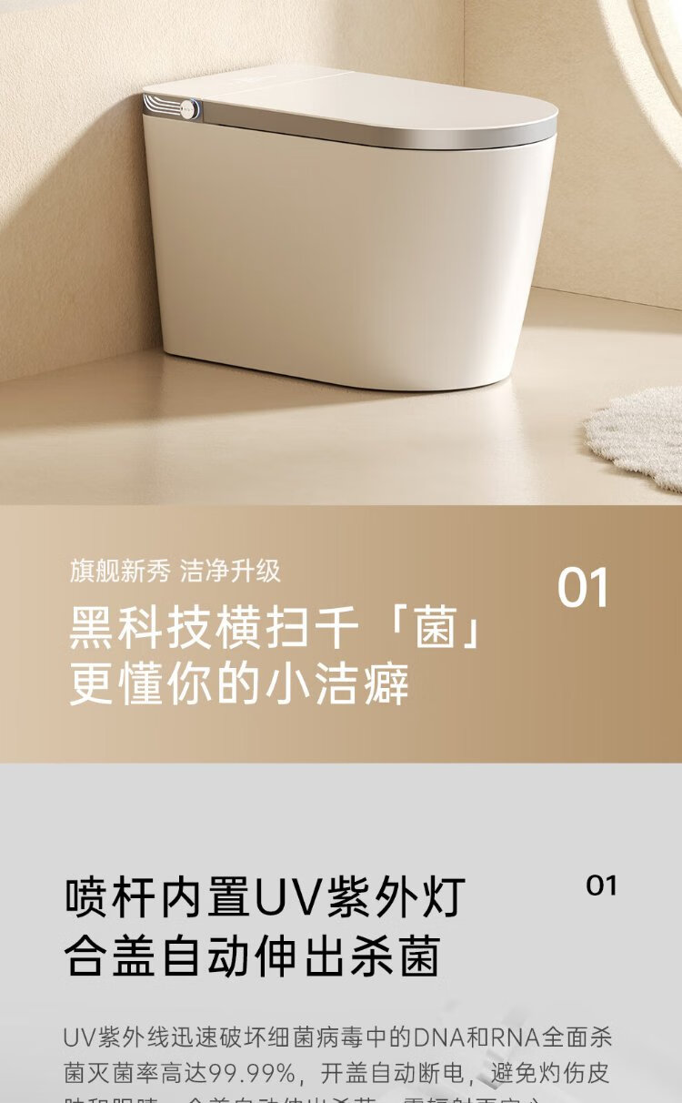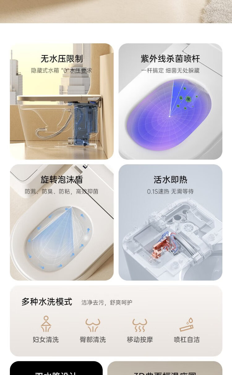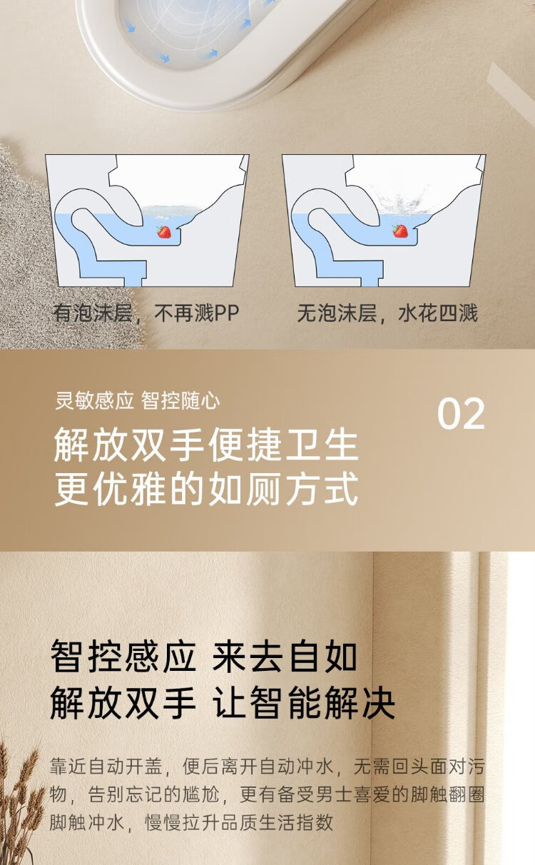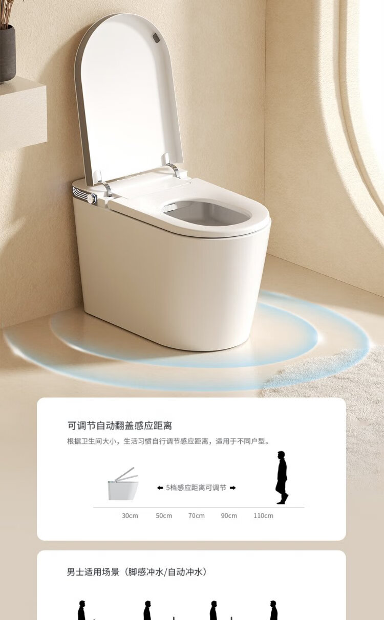 JOMOW全自动智能马桶一体式大座圈无水压限制旋转泡沫盾即热坐便器983 983白 高配-自动翻盖+不限水压