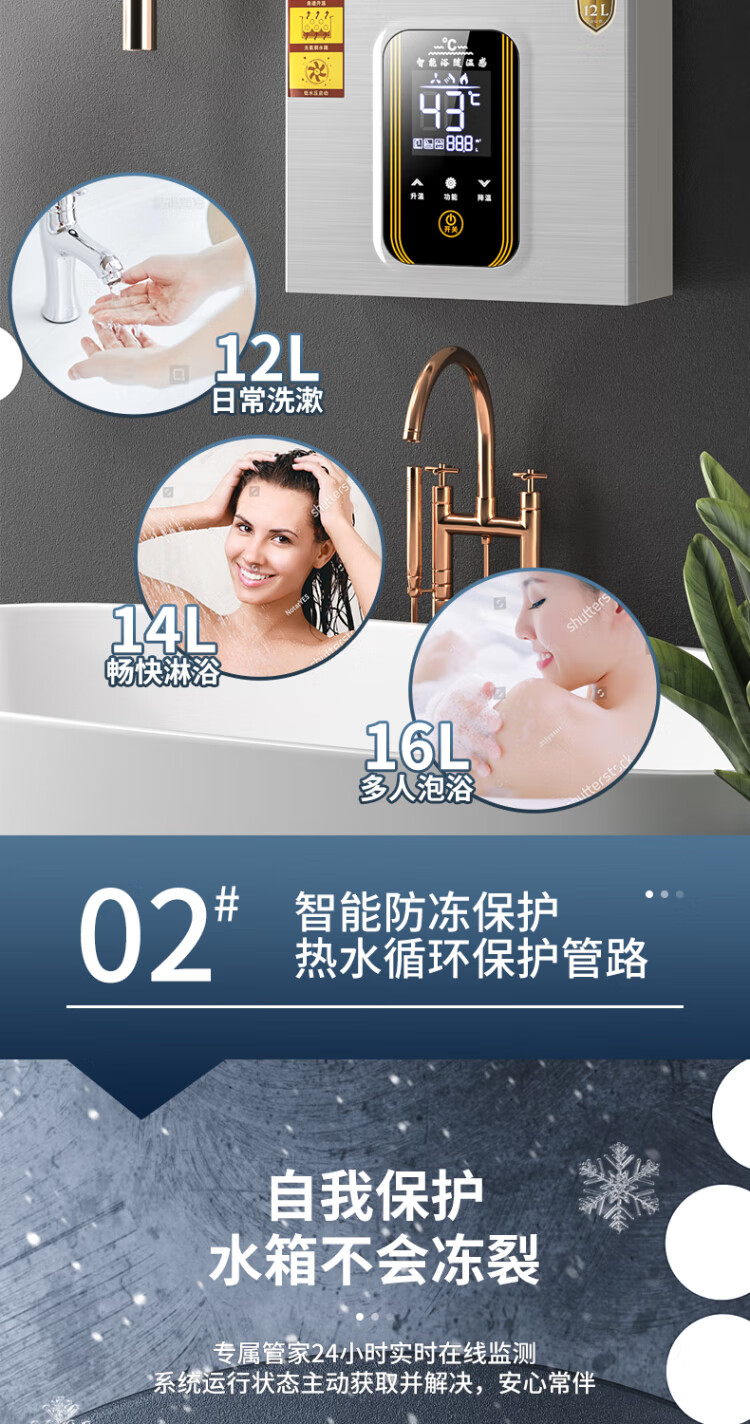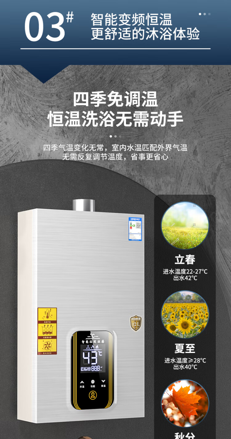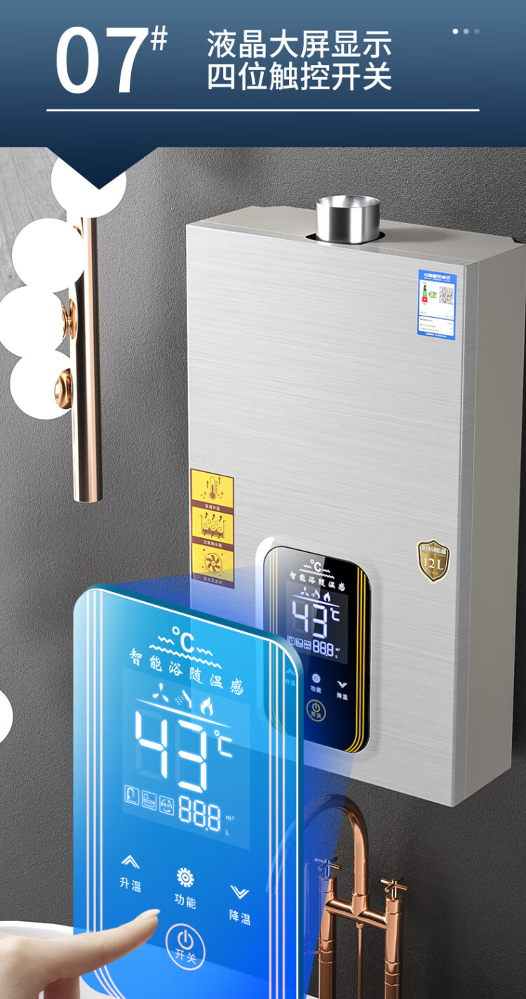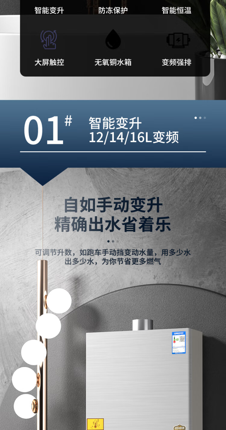 HP Haotai gas water heater natural gas 16 liters home bath variable frequency constant temperature forced exhaust zero cold water 12L constant temperature model frequency variable constant temperature intelligent variable liter liquefied gas door installation
