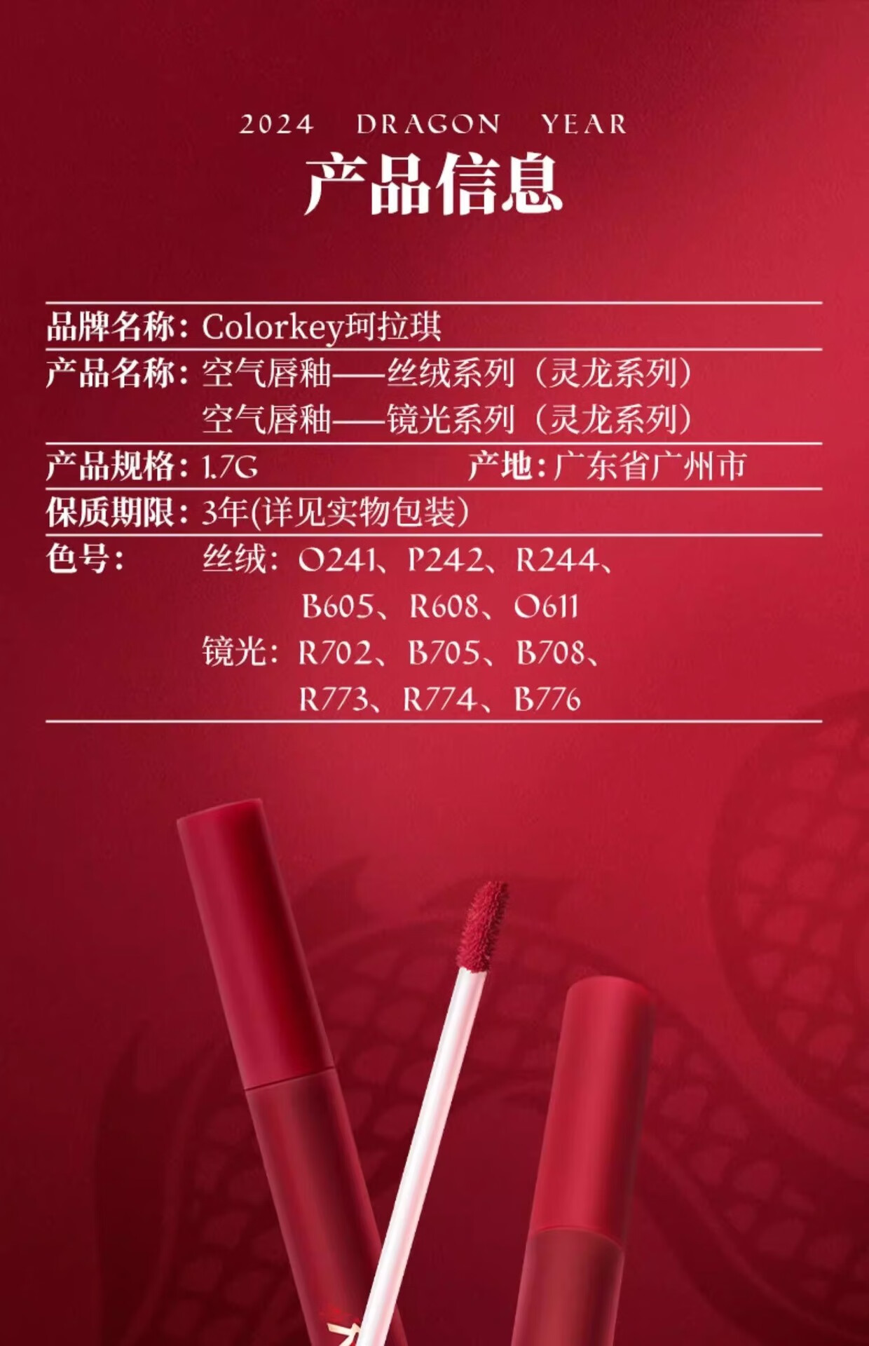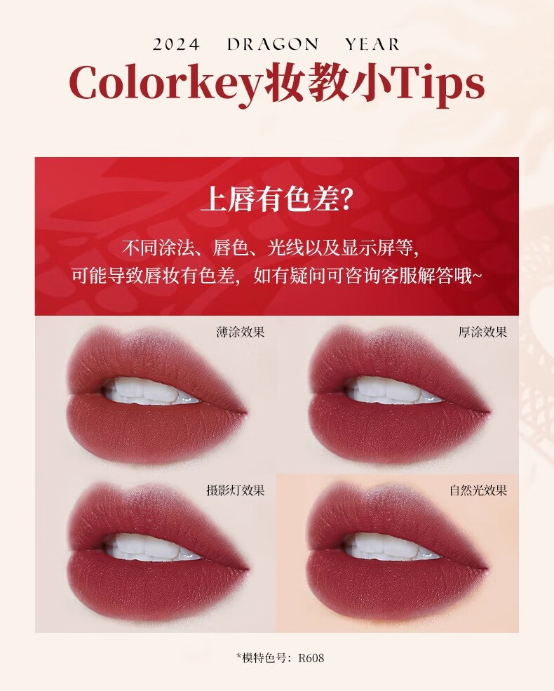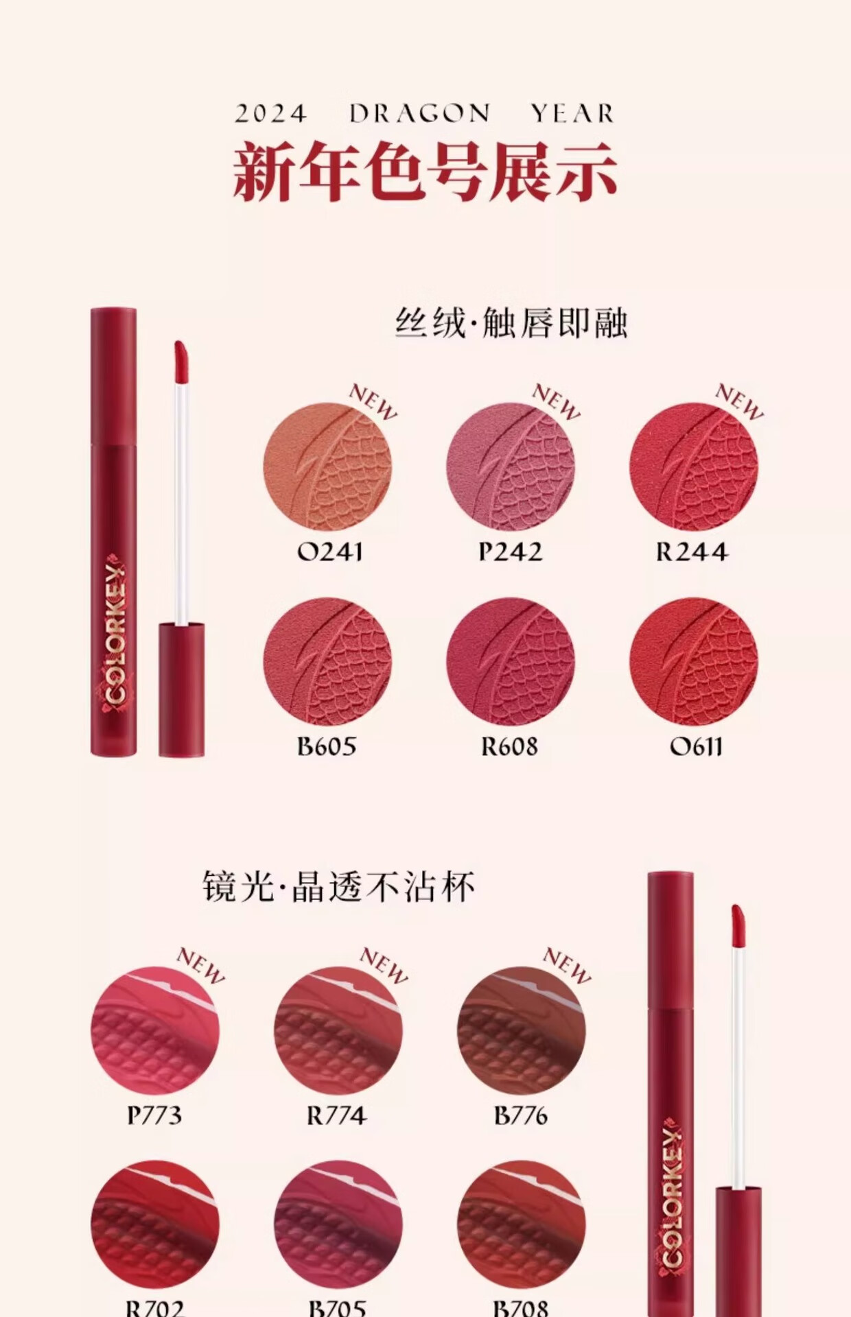Color Key龙年款上新colorkey珂拉琪唇釉冰淇淋唇釉哑光丝绒口红唇釉 NEW#R695