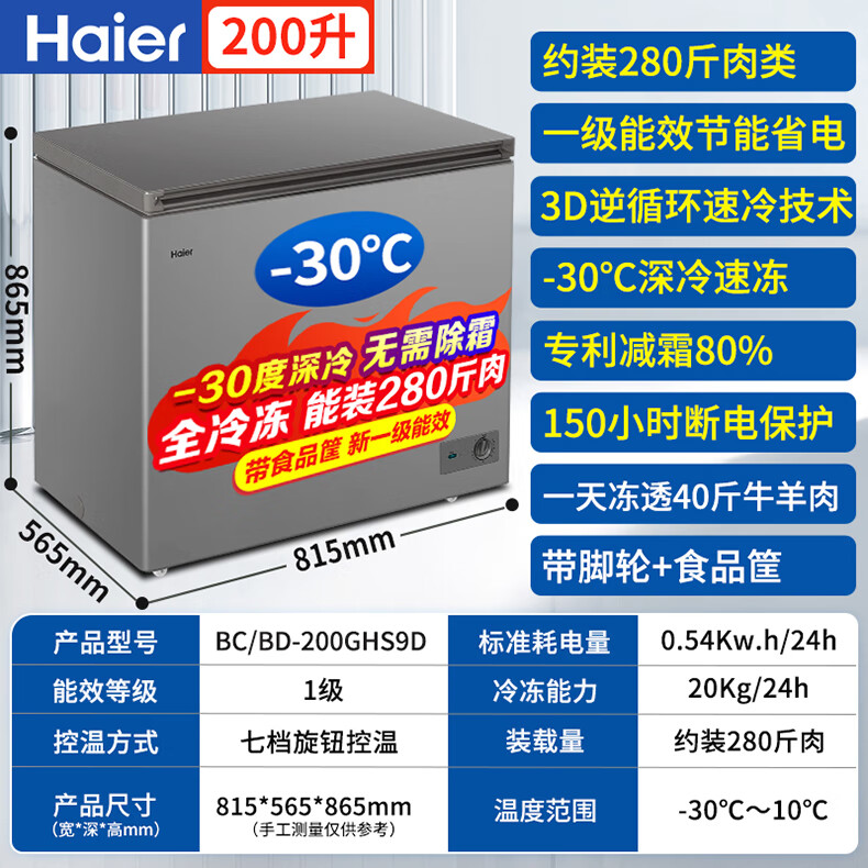 Haier freezer household large capacity 300/500 liters or more double-door subzero ultra-low temperature quick-freezing freezer full freezing and refrigeration dual-purpose commercial refrigerator without defrosting small freezer 829 liters -38 degrees quick freezing + upgraded electronic temperature control 2.1 meters 829L