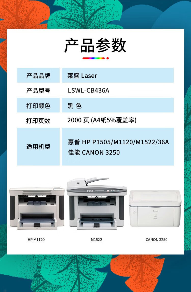 Cartouche de toner Laisheng CB436A adaptée à la cartouche de toner à puce HP LJ-P1505 M1120 M1522 Cartouche d'encre Canon LBP-3250 version standard 2000 pages - Impression HD