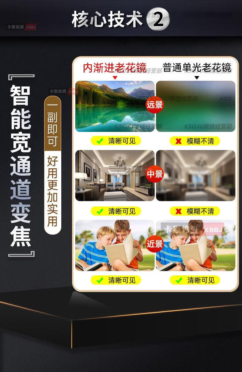 Cyxus智能远近两用老花镜高清老人眼镜男女年轻自动变焦防蓝光高端正品 舒适宽视变焦/远近两用/150度/推荐50-54岁
