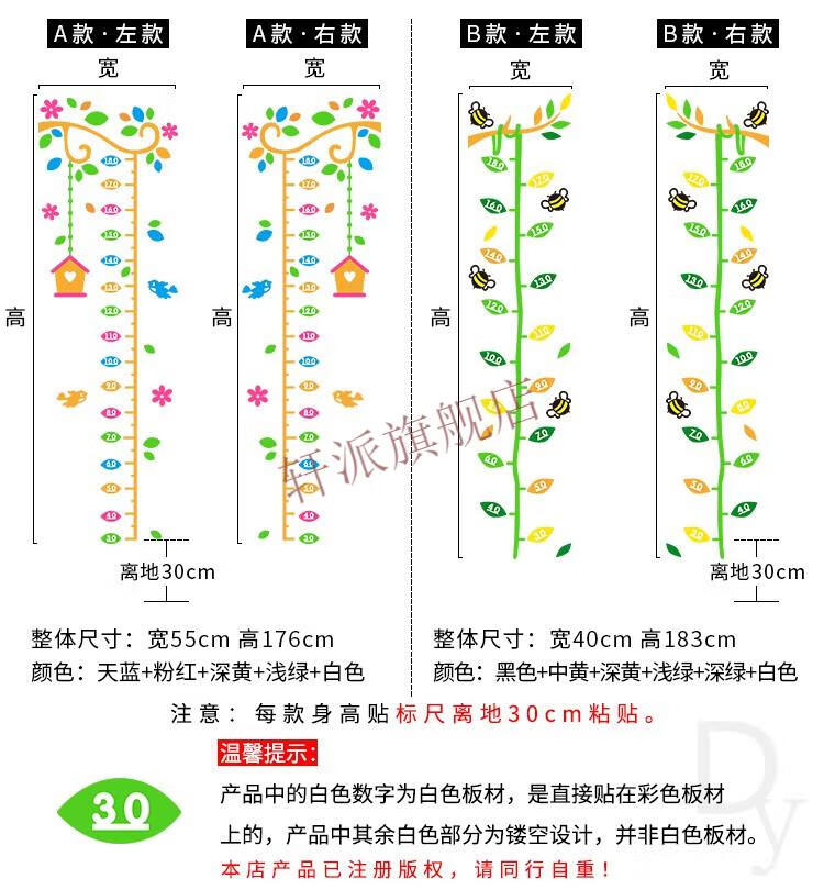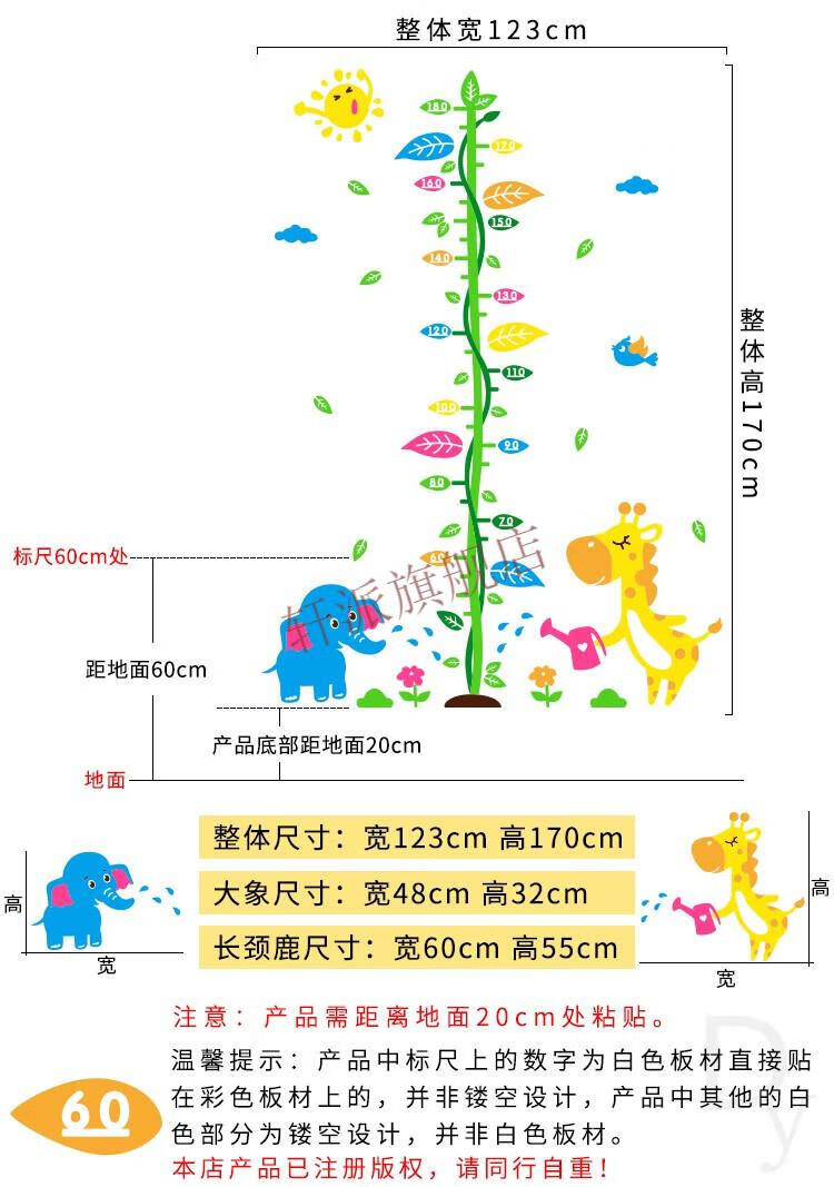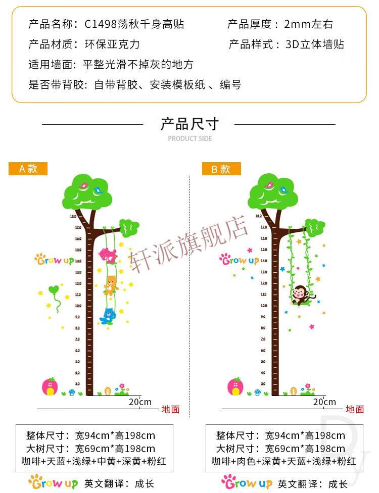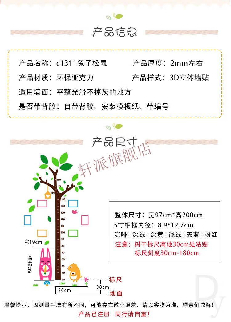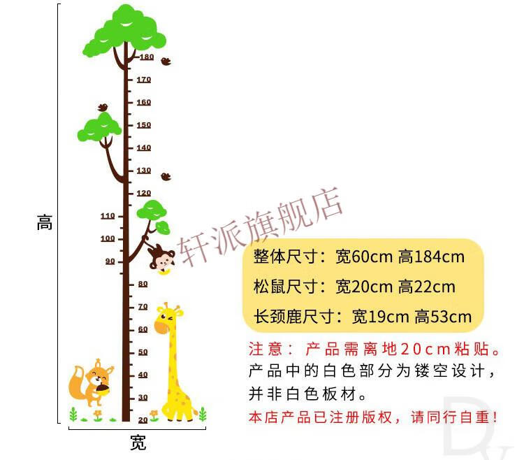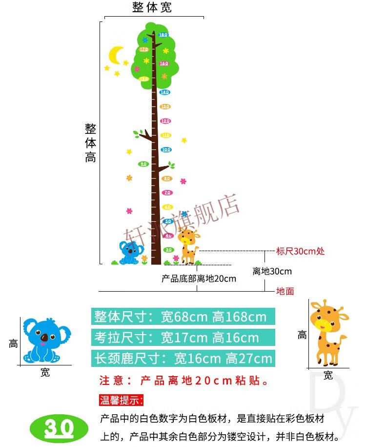 身高贴可移除不伤墙3d立体墙贴卡通大树测量身高尺幼儿园墙面 C1503