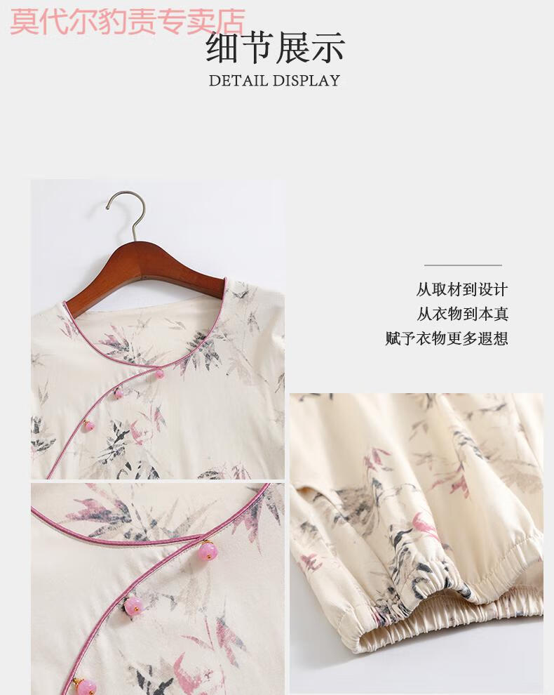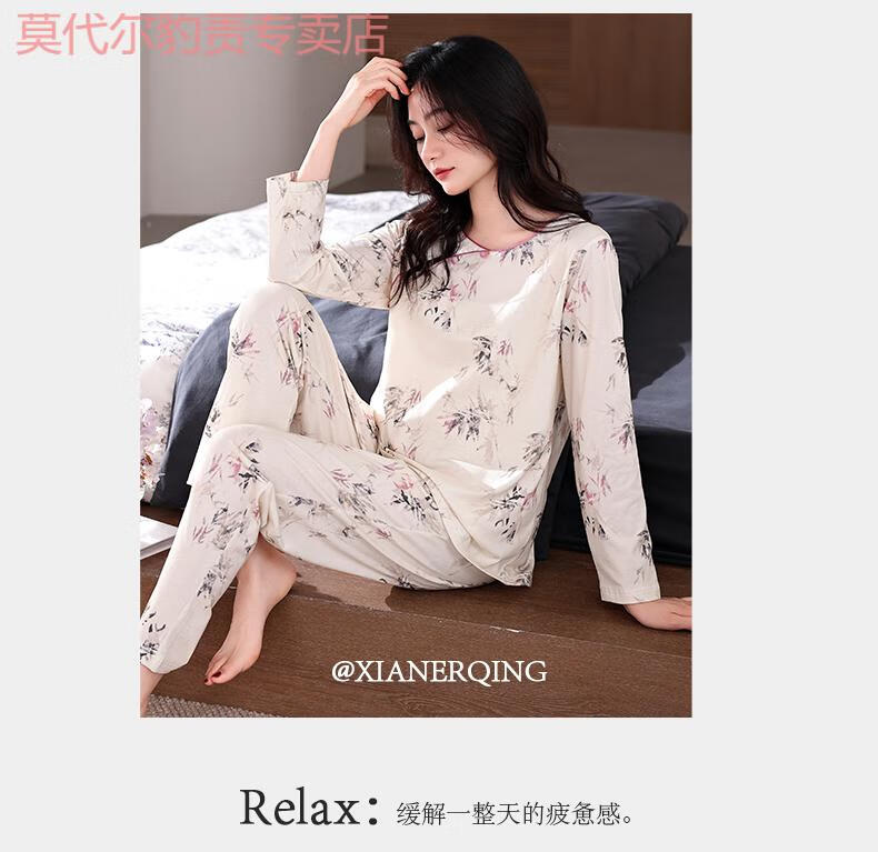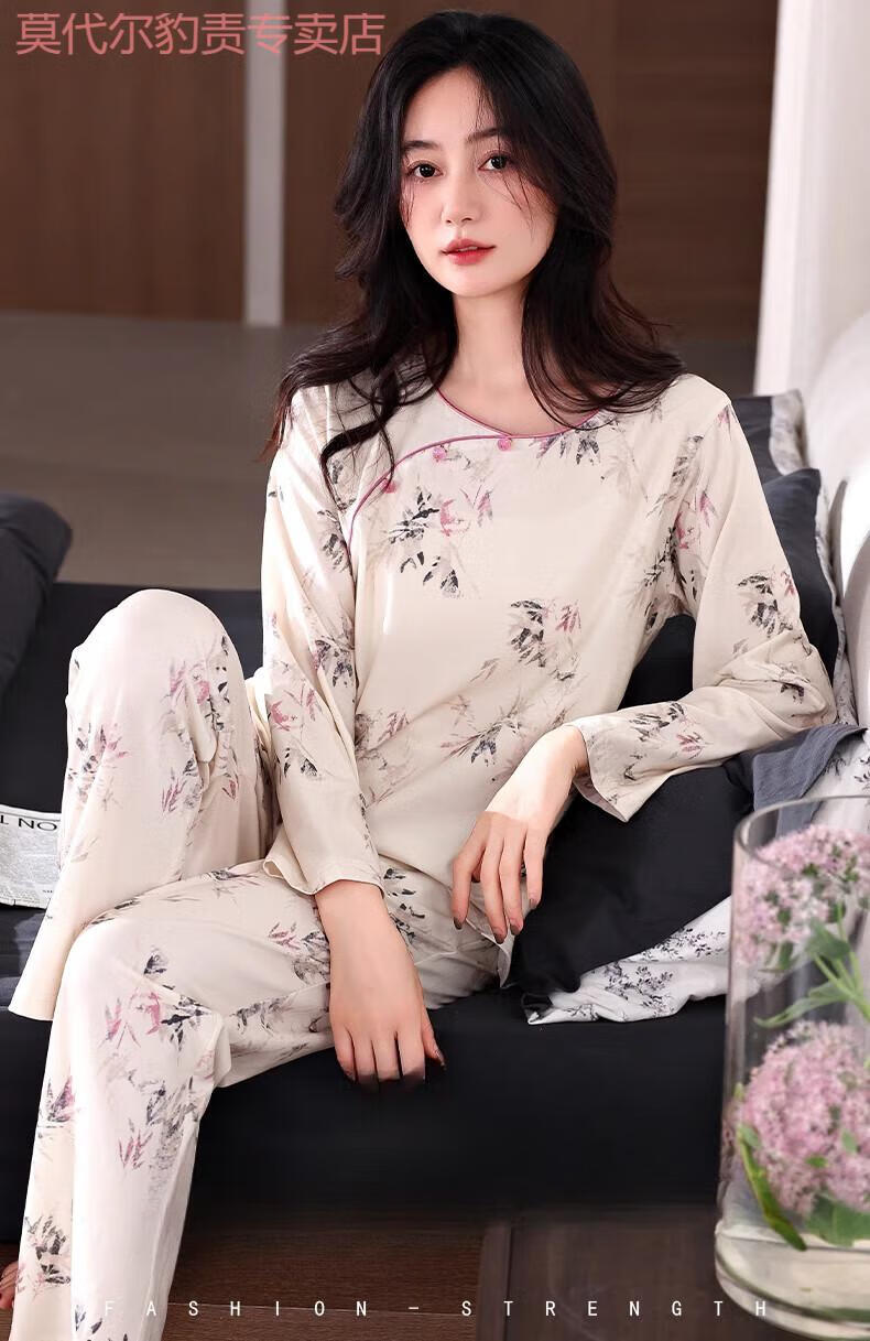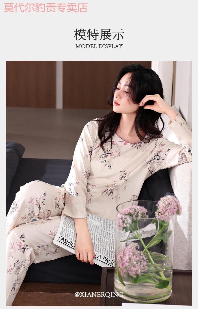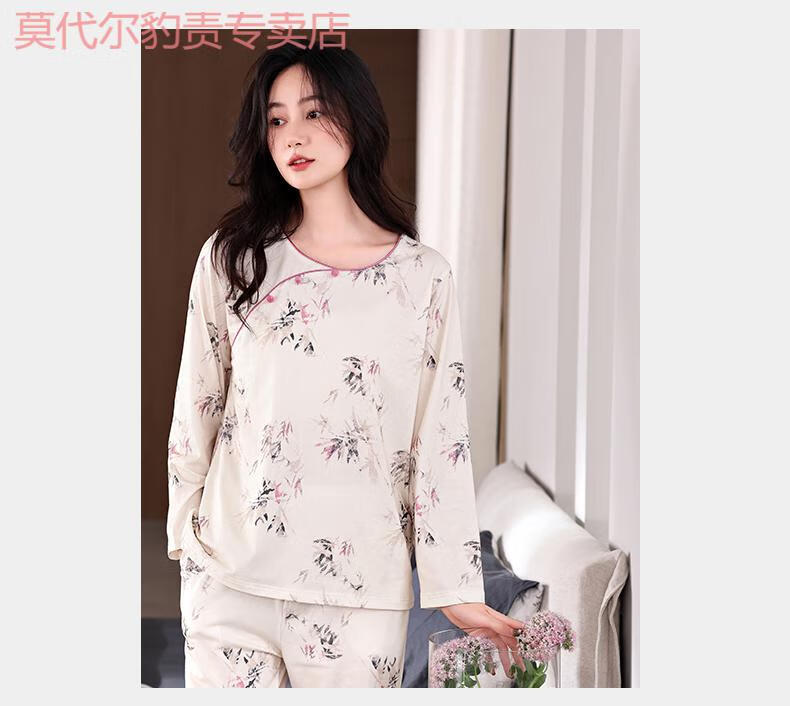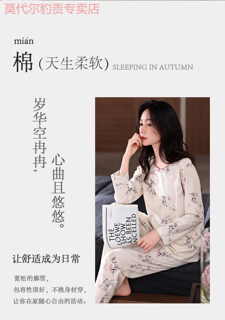 Modal New Chinese Style Pajamas for Women Spring and Autumn Autumn Pure Cotton Long Sleeves 2025 New Chinese Style Home Clothes Cotton Suit C1504 Bamboo Cui M (160)