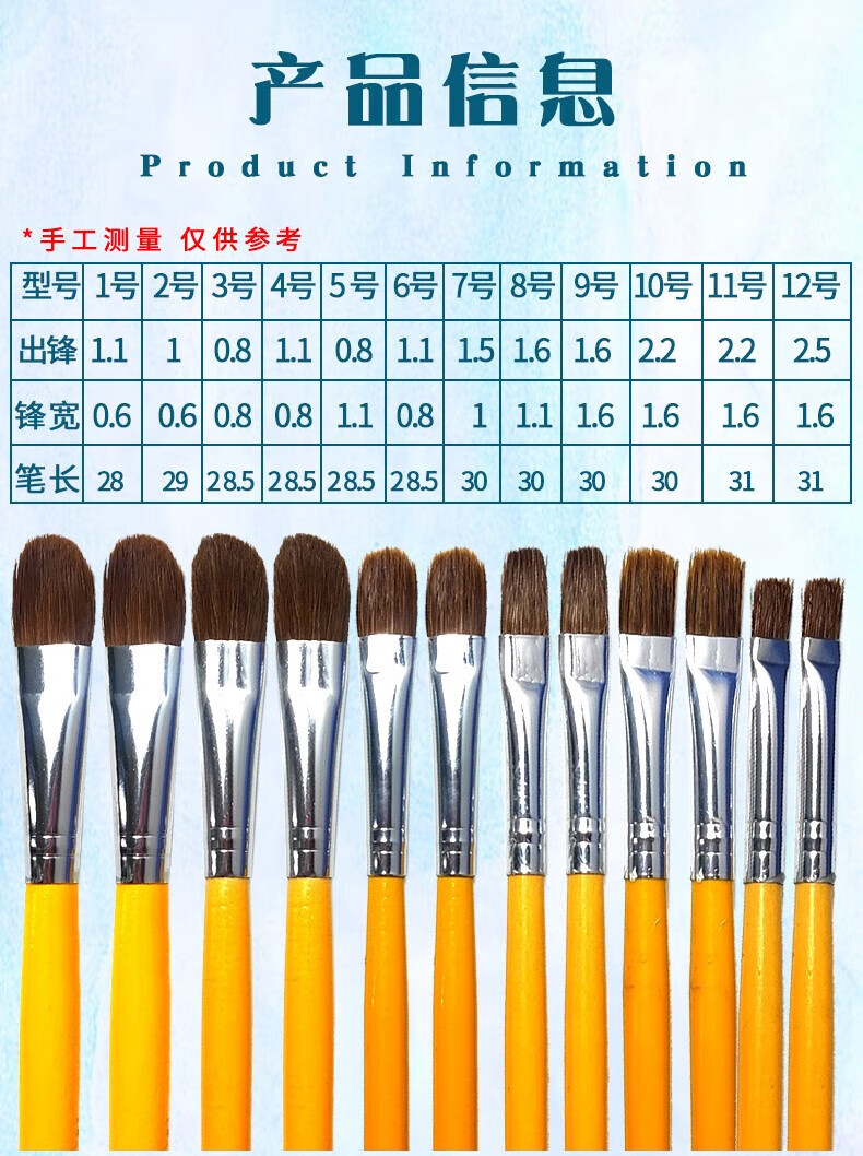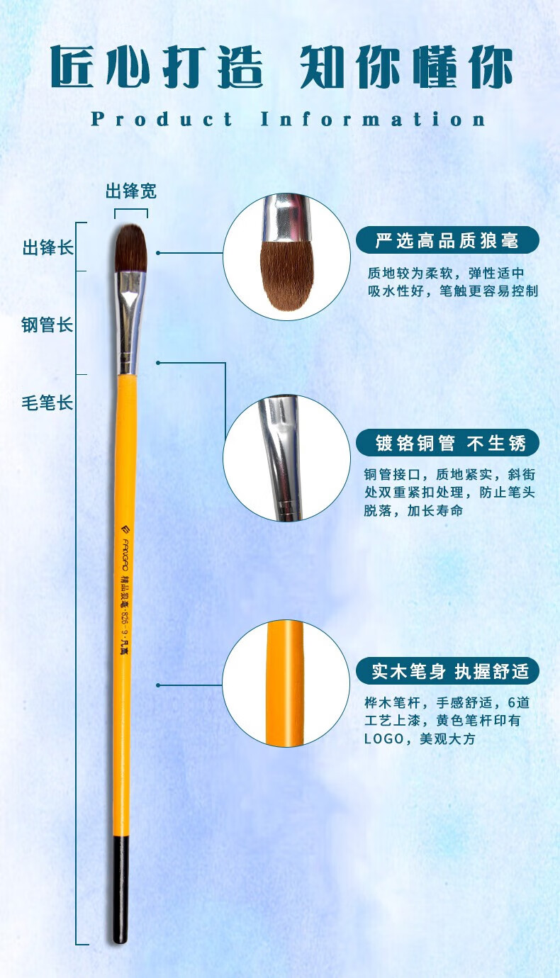梵高826水粉笔美术生专用丙烯画笔狼毫油画笔套装学生颜料色彩笔 1-12号 套 画笔 套学生 6支单号1 3 5 7 9 11 美院学姐