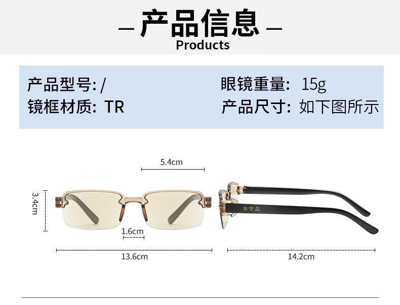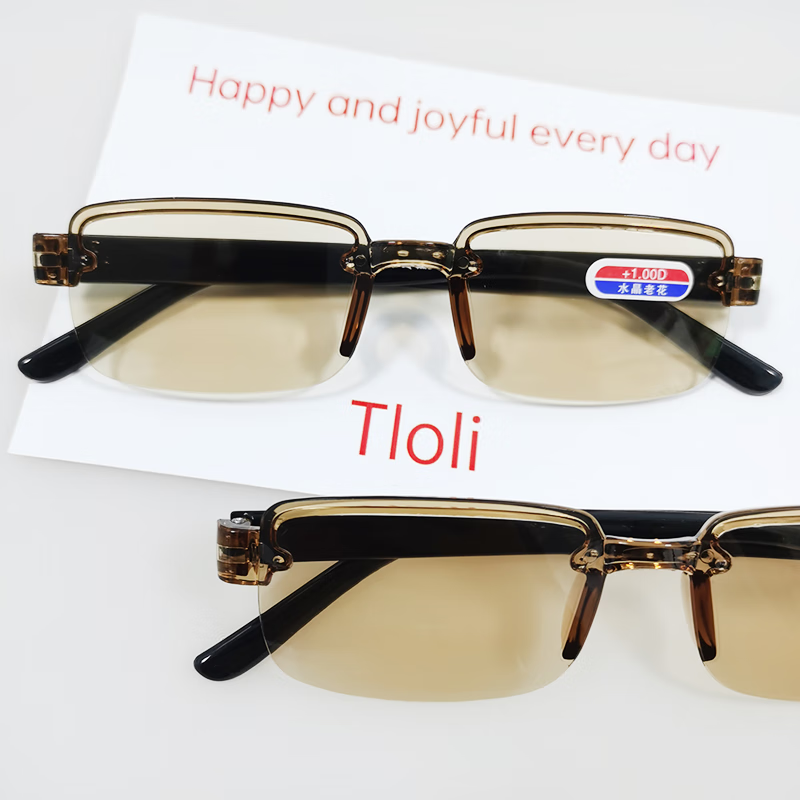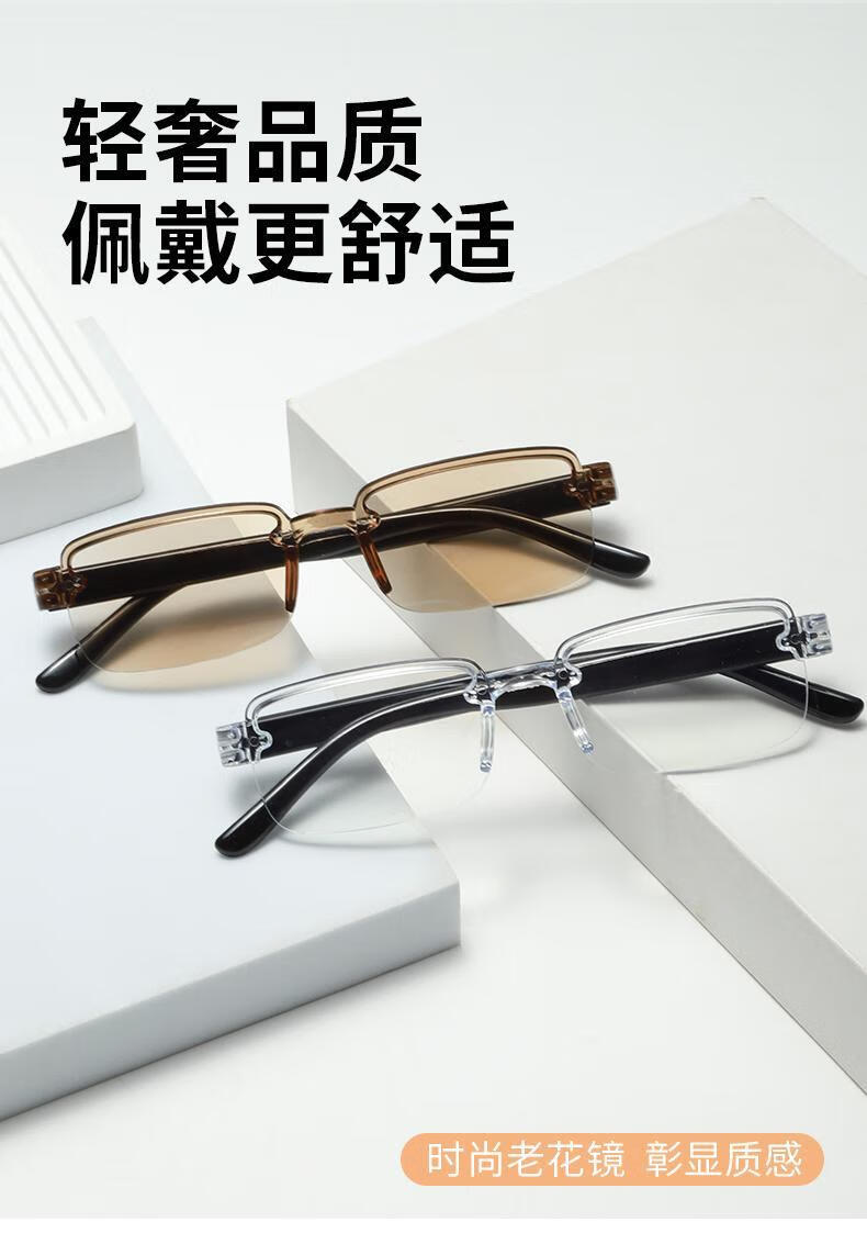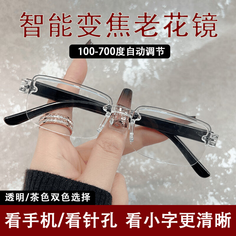 智能变焦老花镜无框高档高清老花眼镜超轻男女护目防蓝光眼镜 茶色【1付】 智能变焦自动调节【不用选度数】