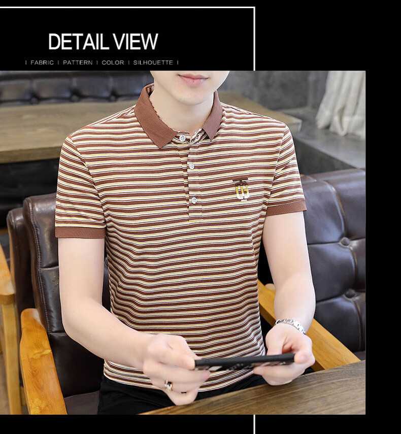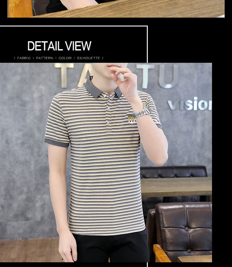 皮尔卡丹(pierre cardin)夏季男士翻领短袖polo衫潮牌衬衫领条纹刺绣t恤简约有领衣服体恤 6626灰色 XL