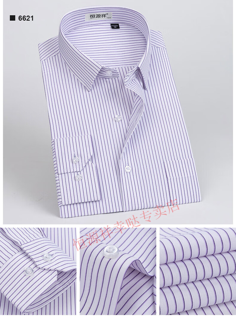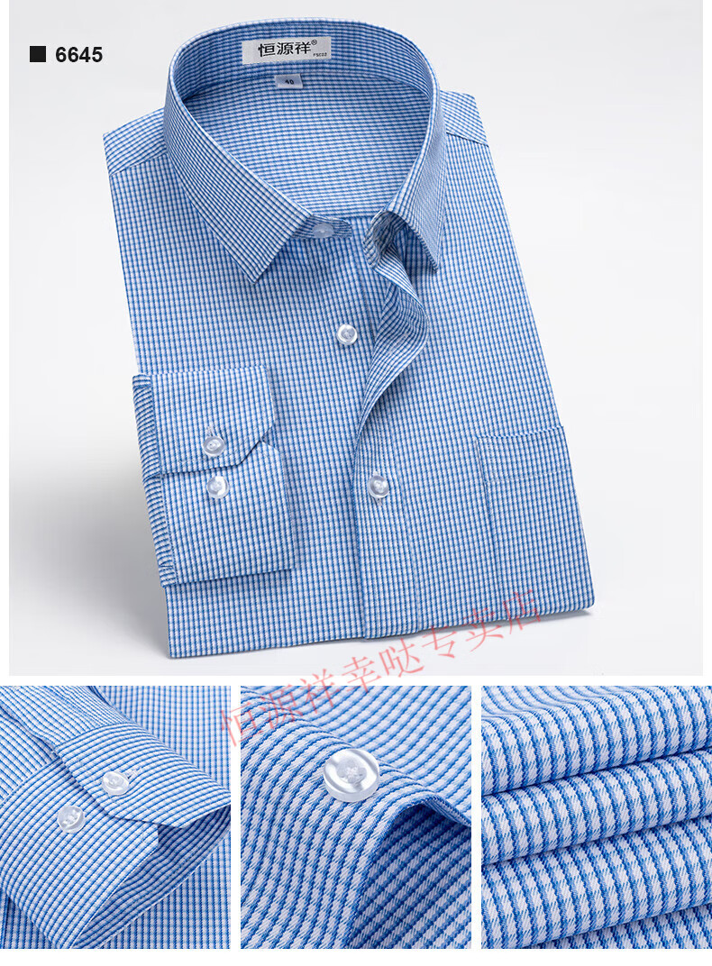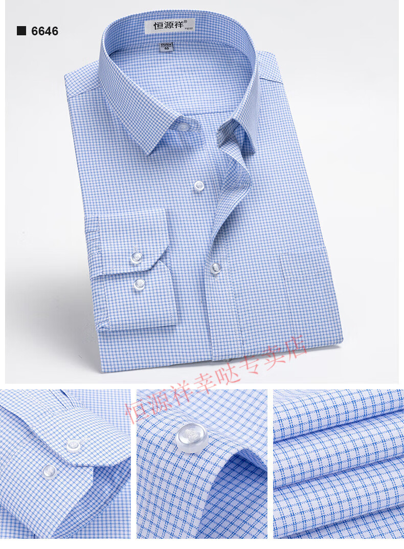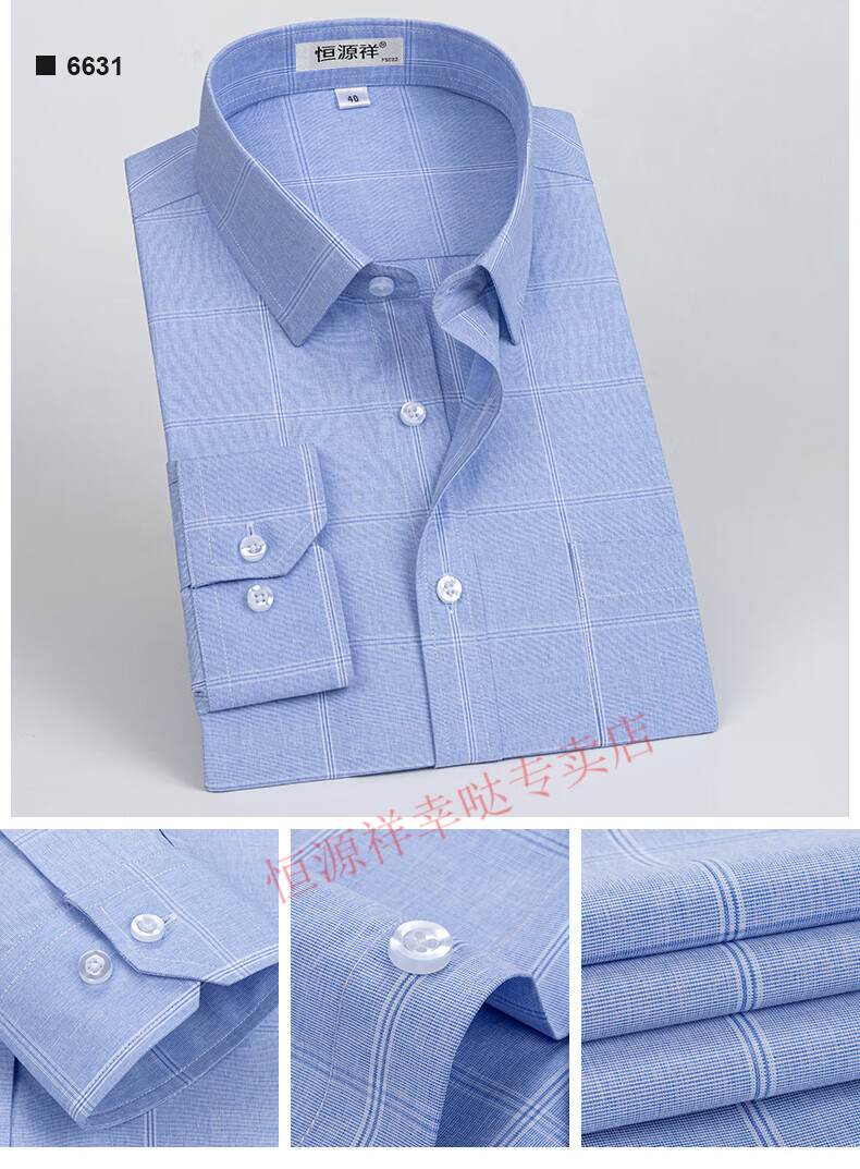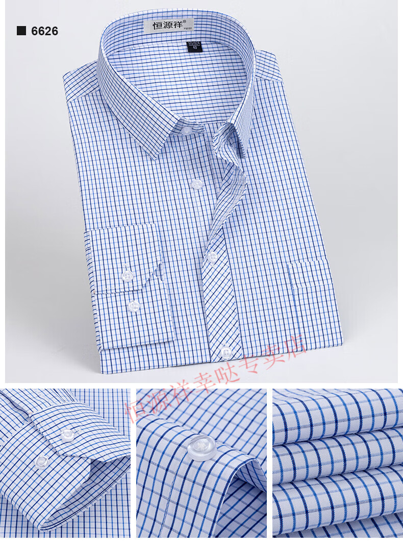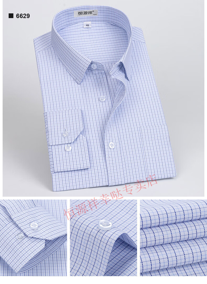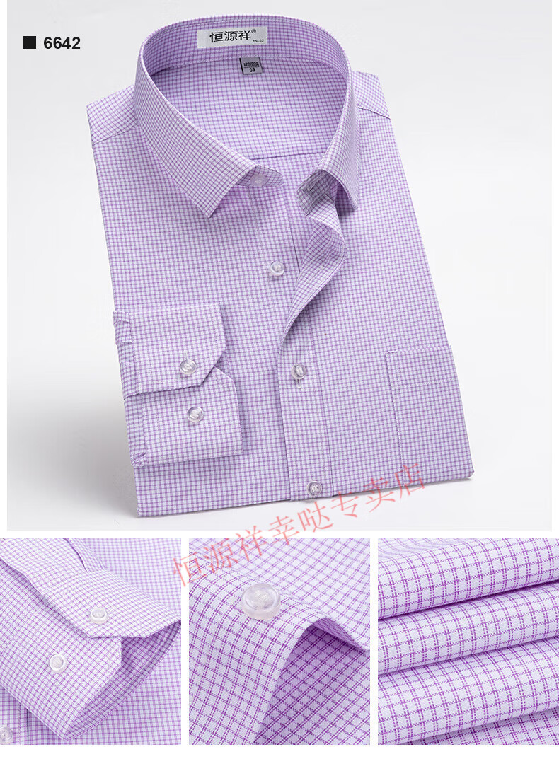 恒源祥纯棉长袖衬衫男士春秋季全棉免烫条纹商务正装休闲工装衬衣男装 6627格子黑紫有口袋【纯全新100 38