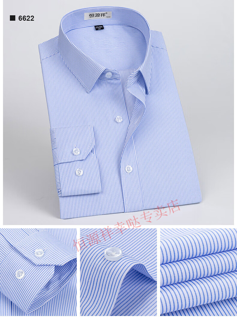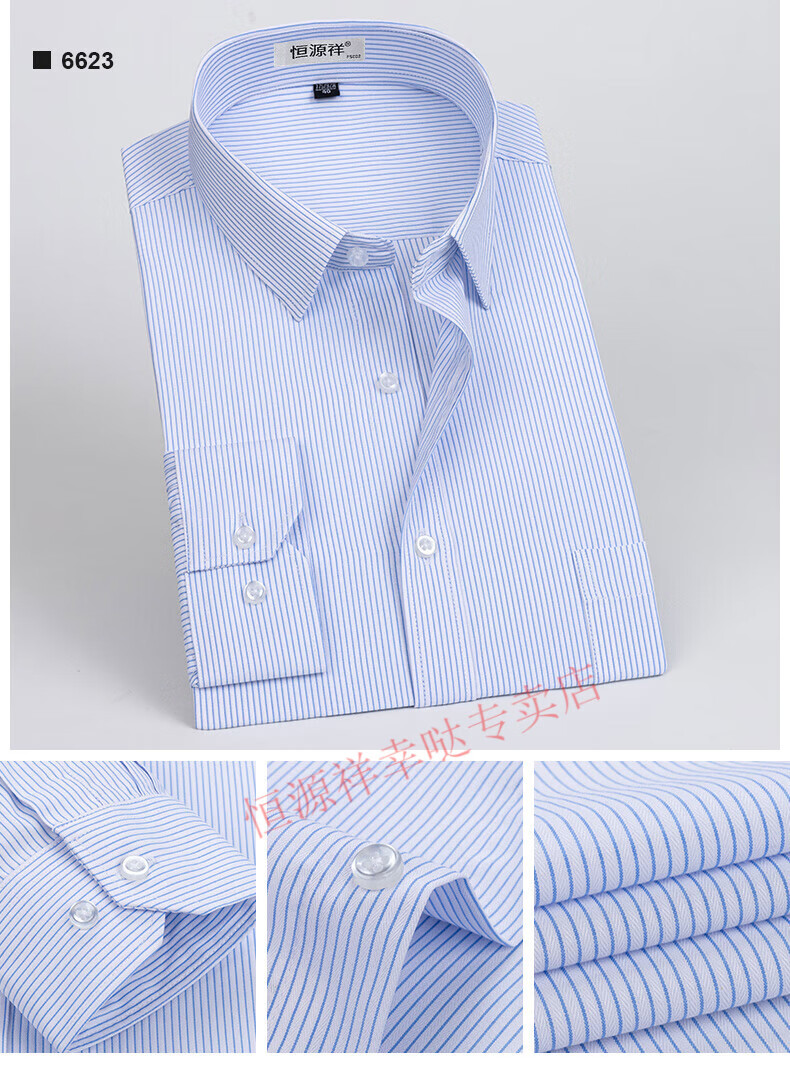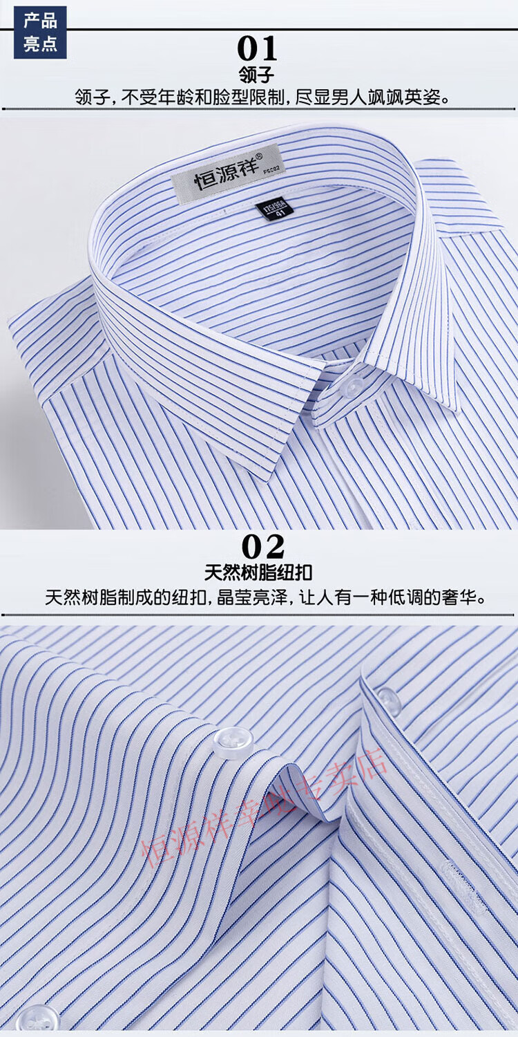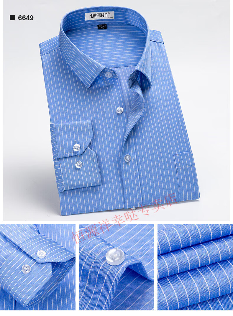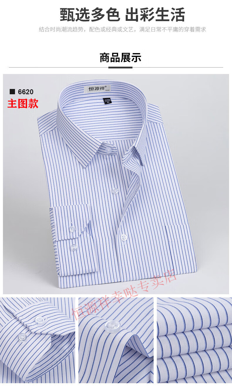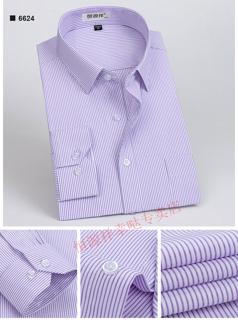恒源祥纯棉长袖衬衫男士春秋季全棉免烫条纹商务正装休闲工装衬衣男装 6627格子黑紫有口袋【纯全新100 38