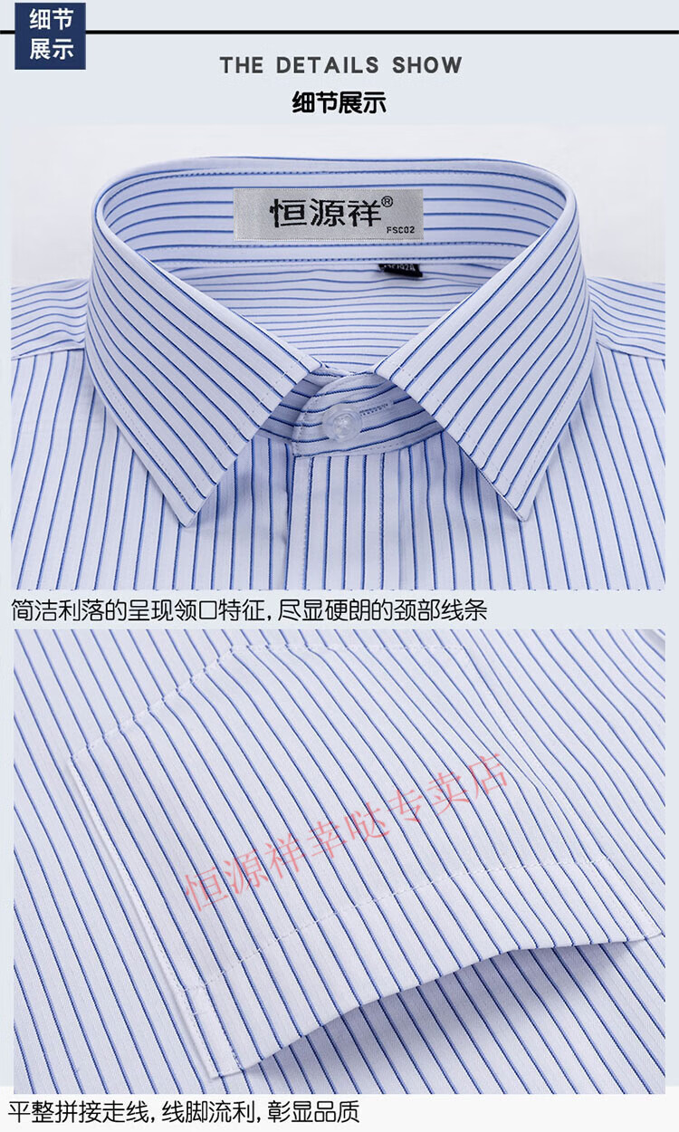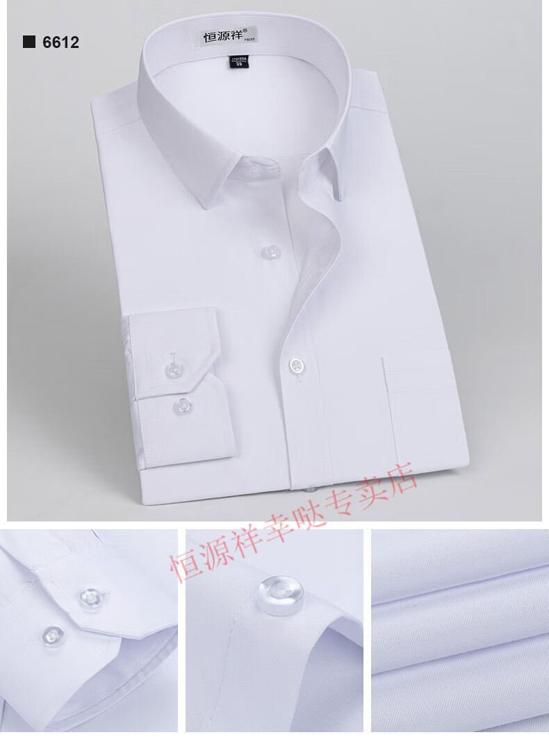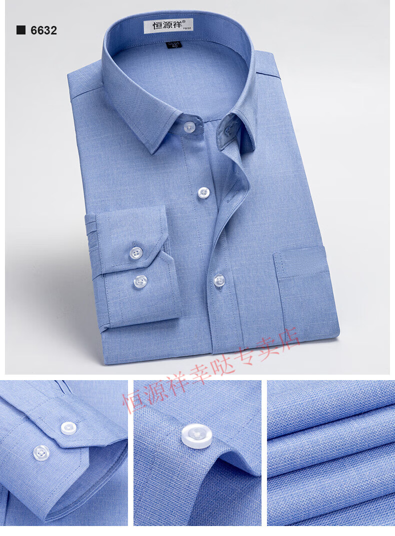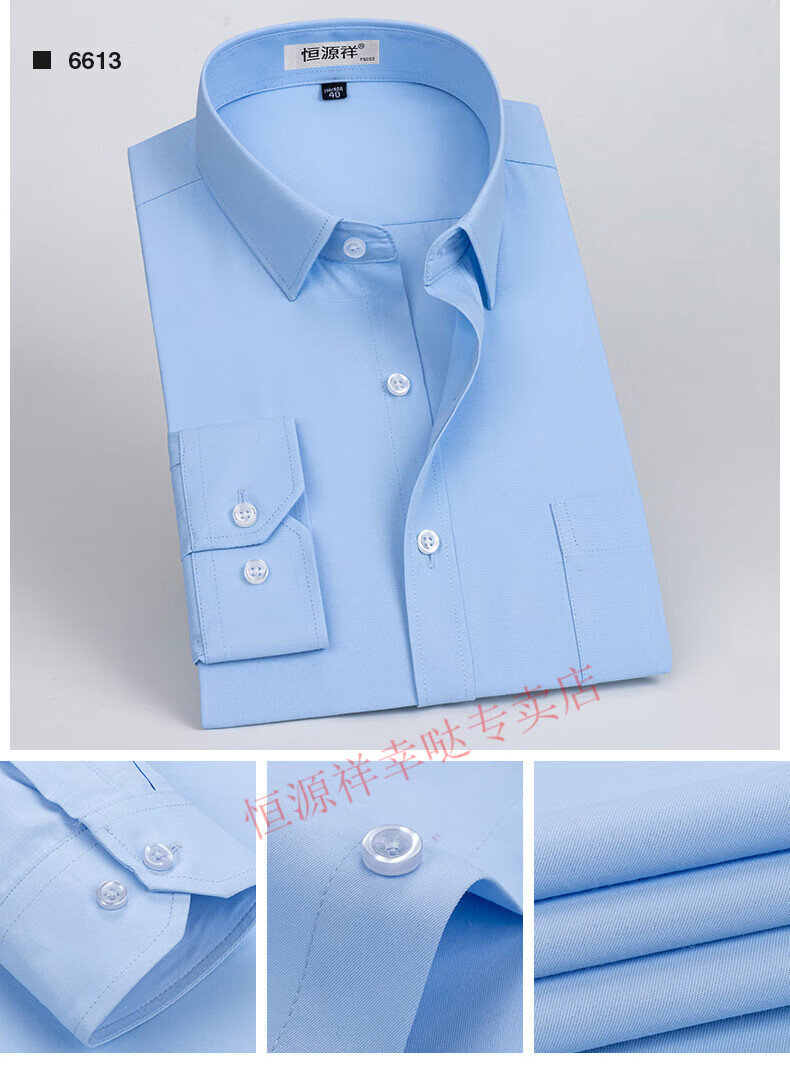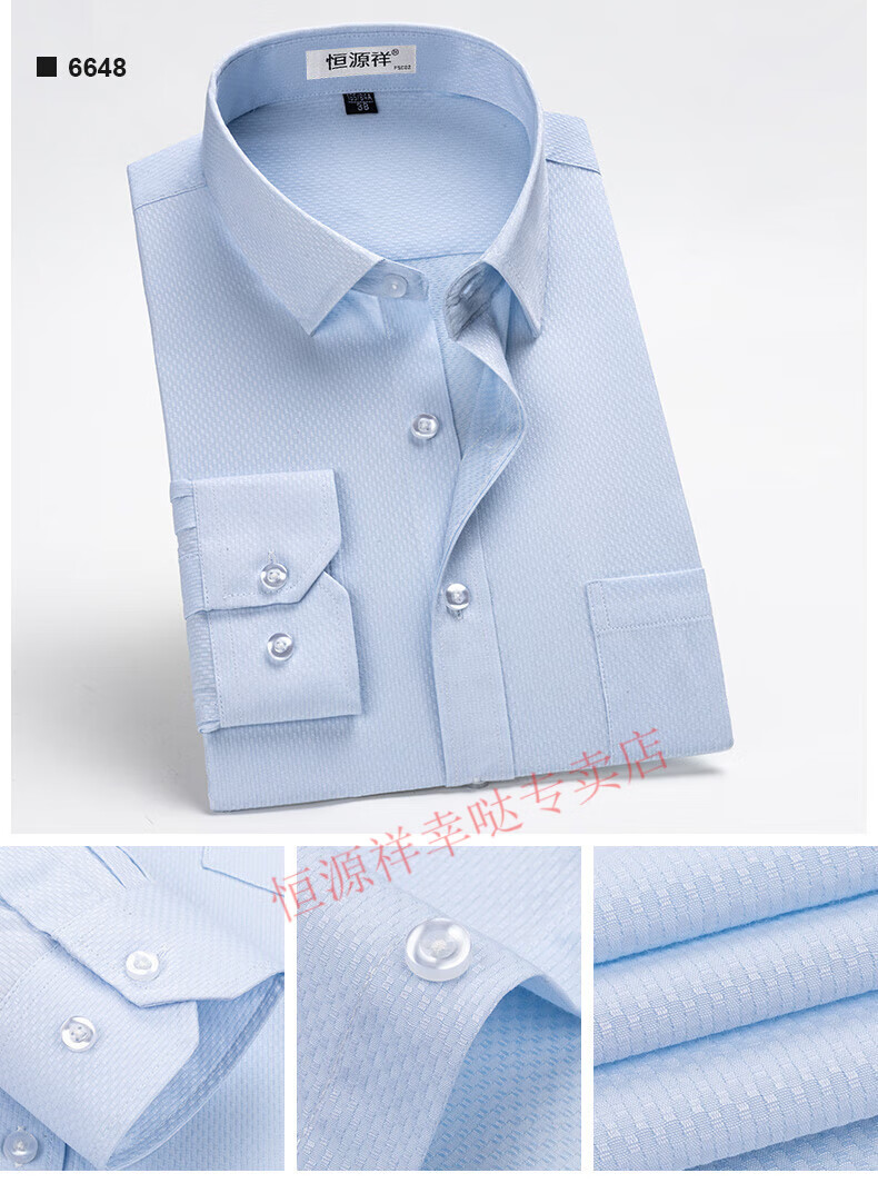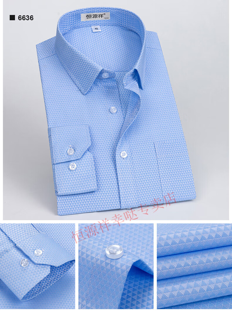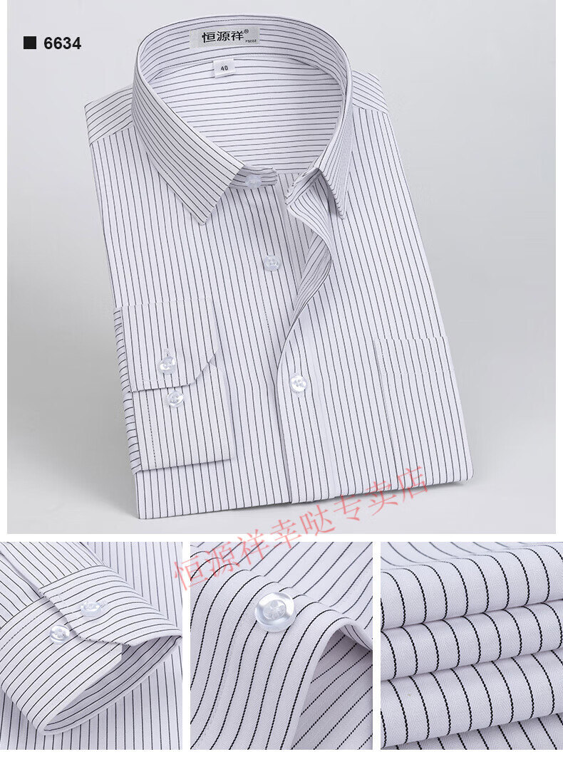 恒源祥纯棉长袖衬衫男士春秋季全棉免烫条纹商务正装休闲工装衬衣男装 6627格子黑紫有口袋【纯全新100 38