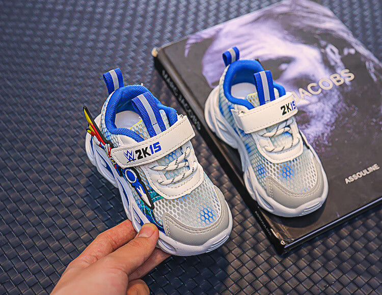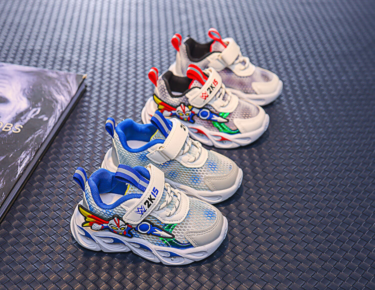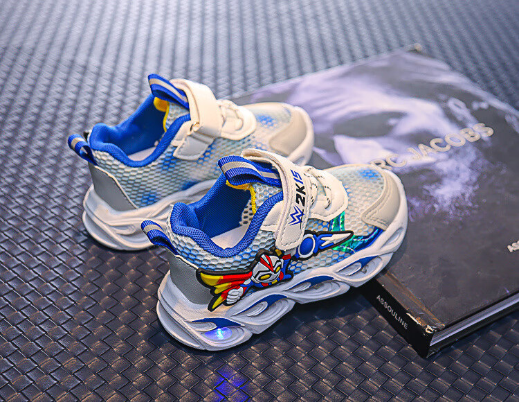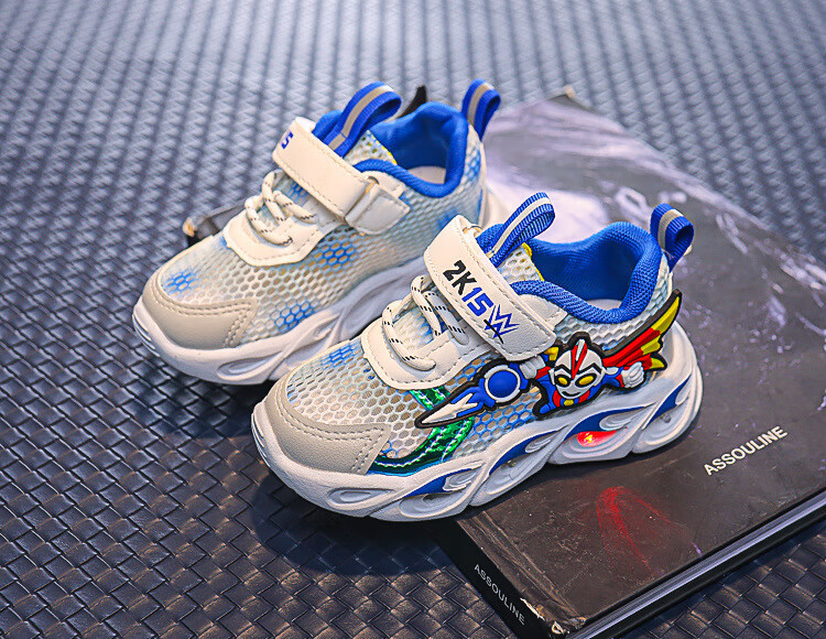 G.duck小黄鸭1-15岁儿童镂空透气网鞋夏季新款男童奥特曼运动鞋亮灯鞋子 兰色单网【夏款】A829 27 内长16.8cm