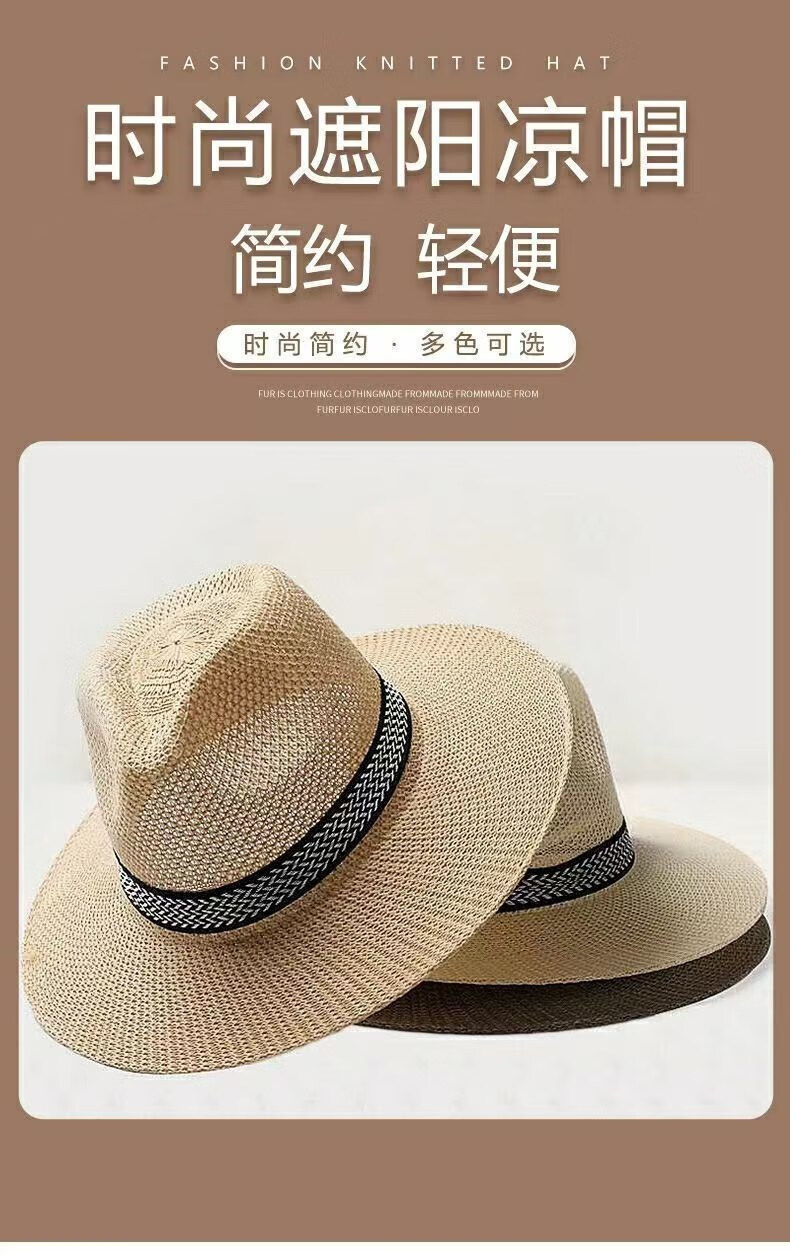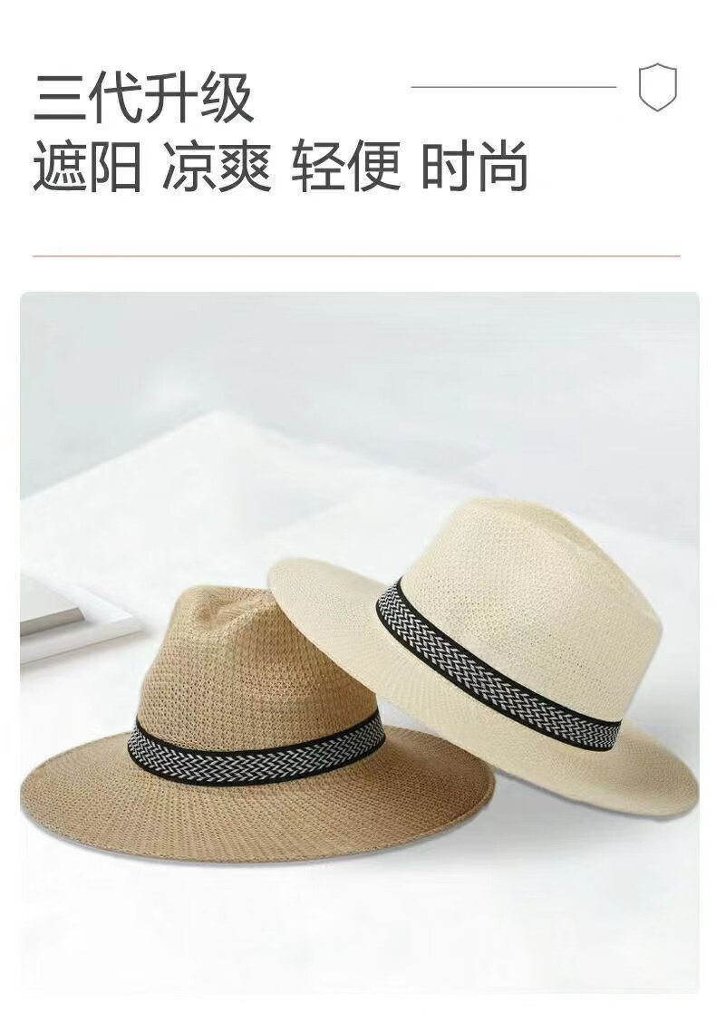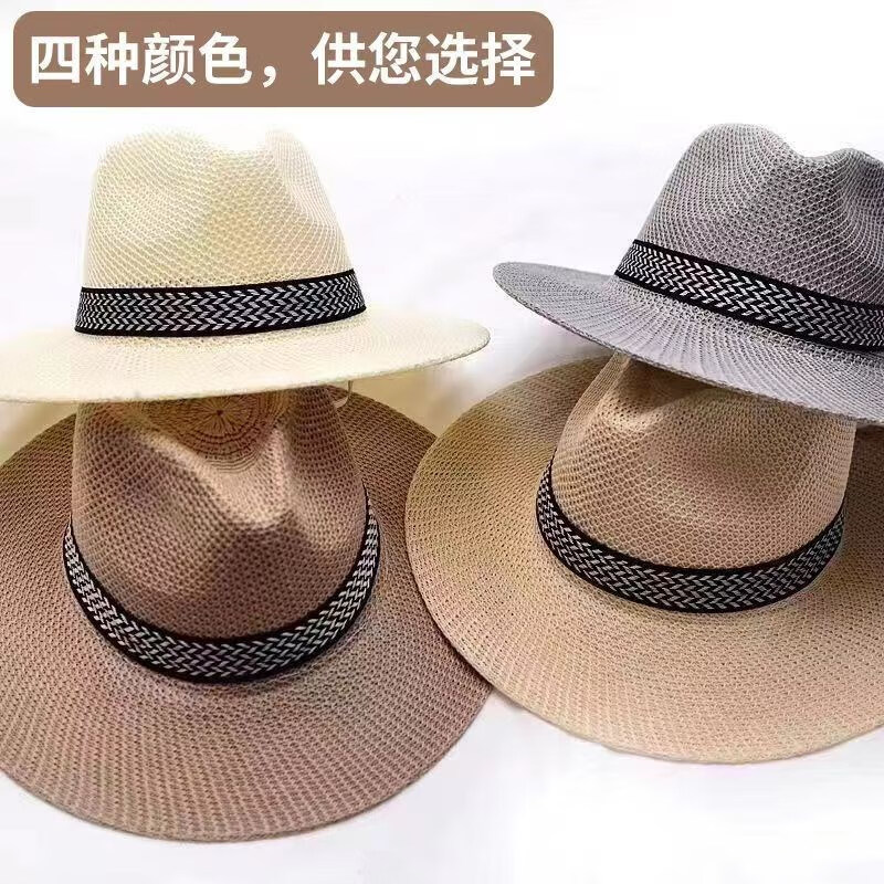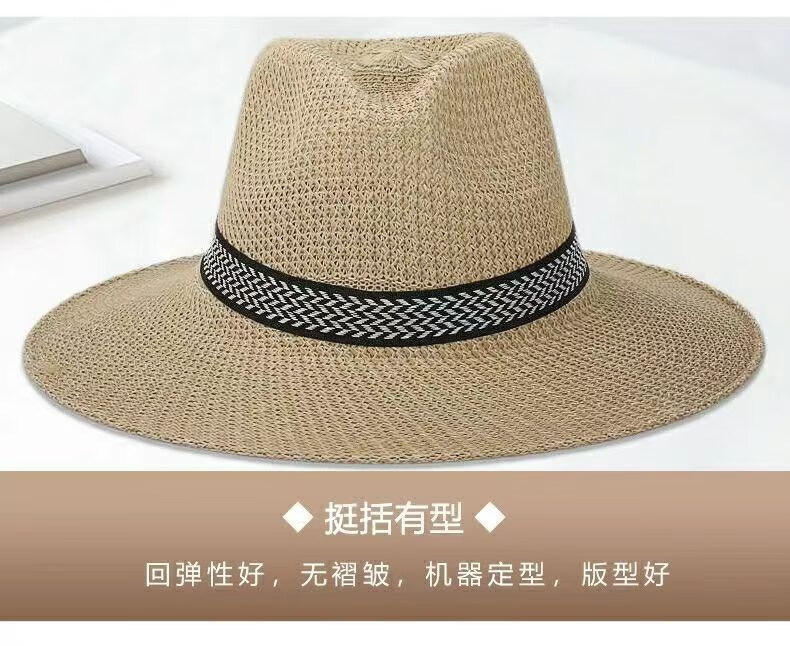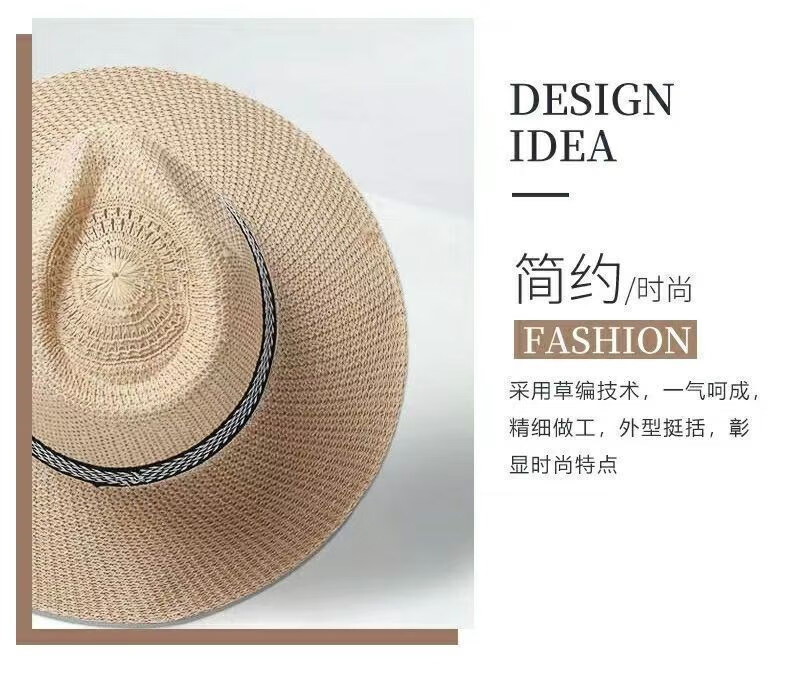 NKADDS男防晒竹编大沿帽春夏天款男士草帽西部牛仔帽礼帽帽子遮阳帽海边 白色遮阳透气