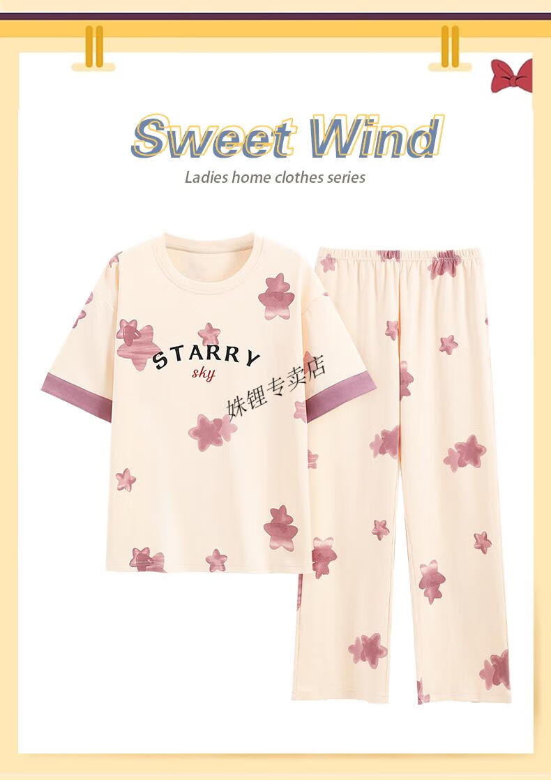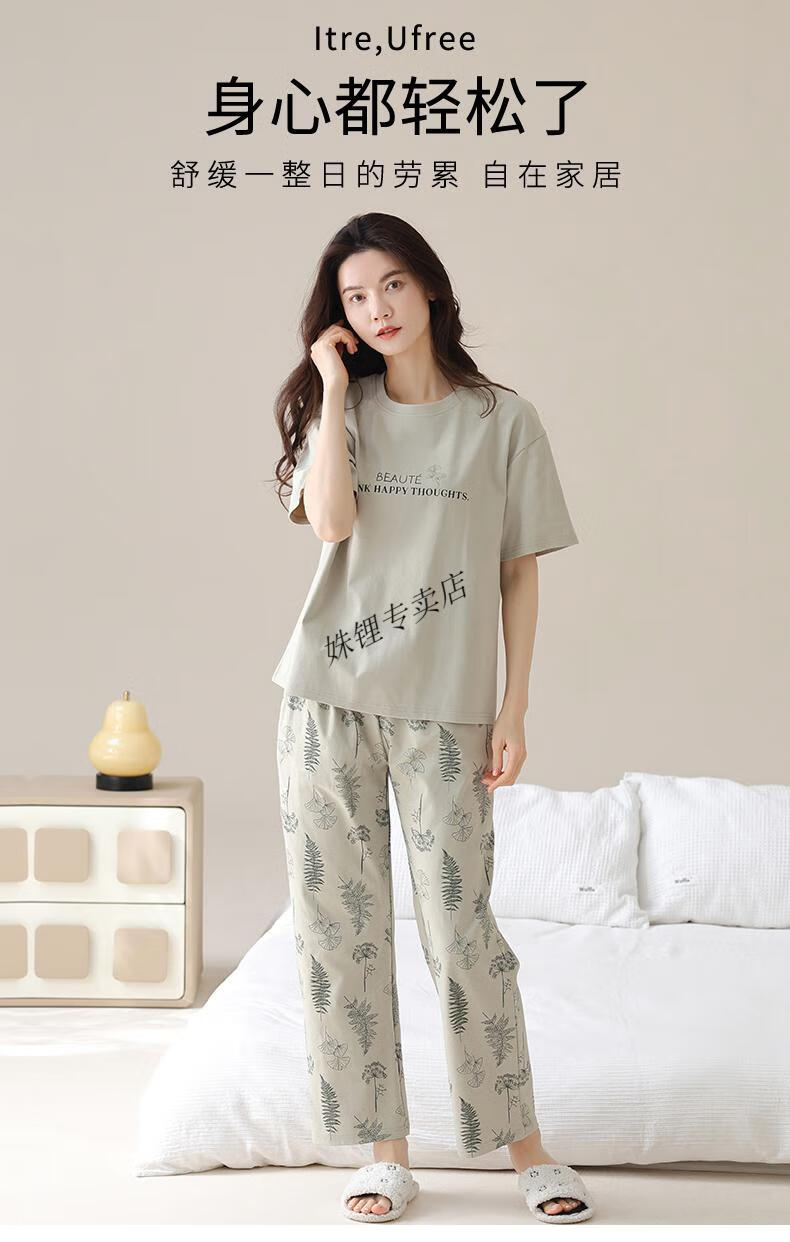 恒源祥睡衣女夏季好纯.棉短袖长裤薄款夏天女士家居服套装春秋季 YZT9716 短袖长裤 L 100-120斤