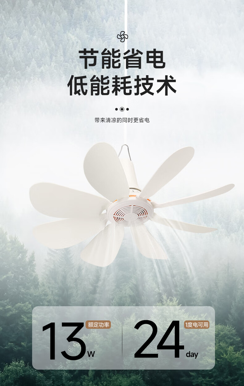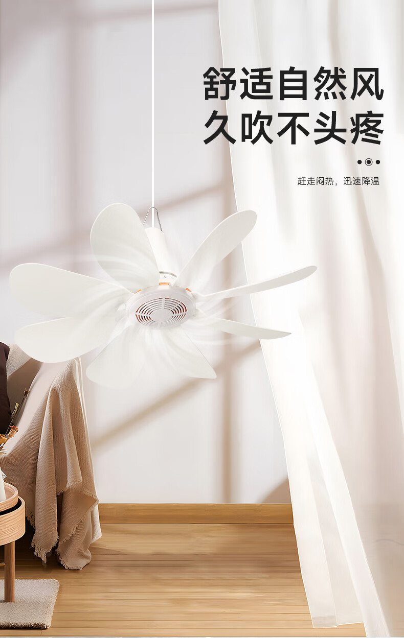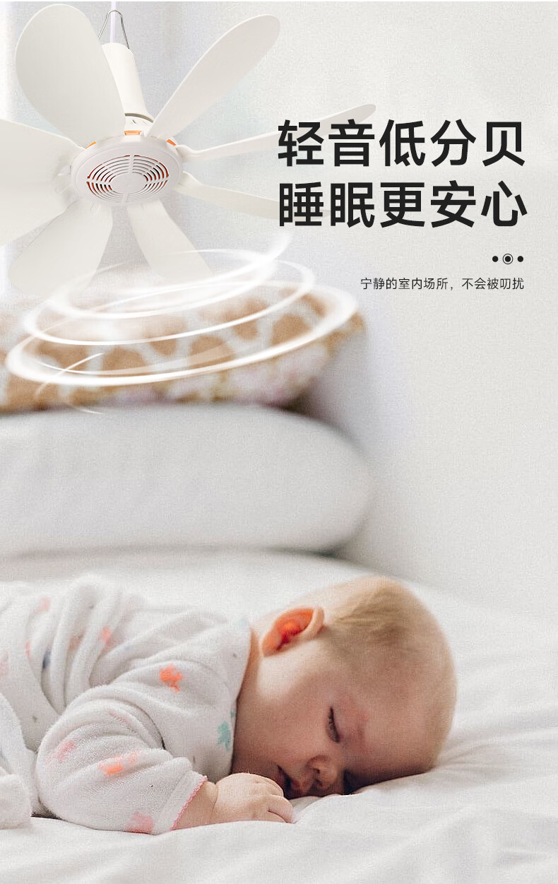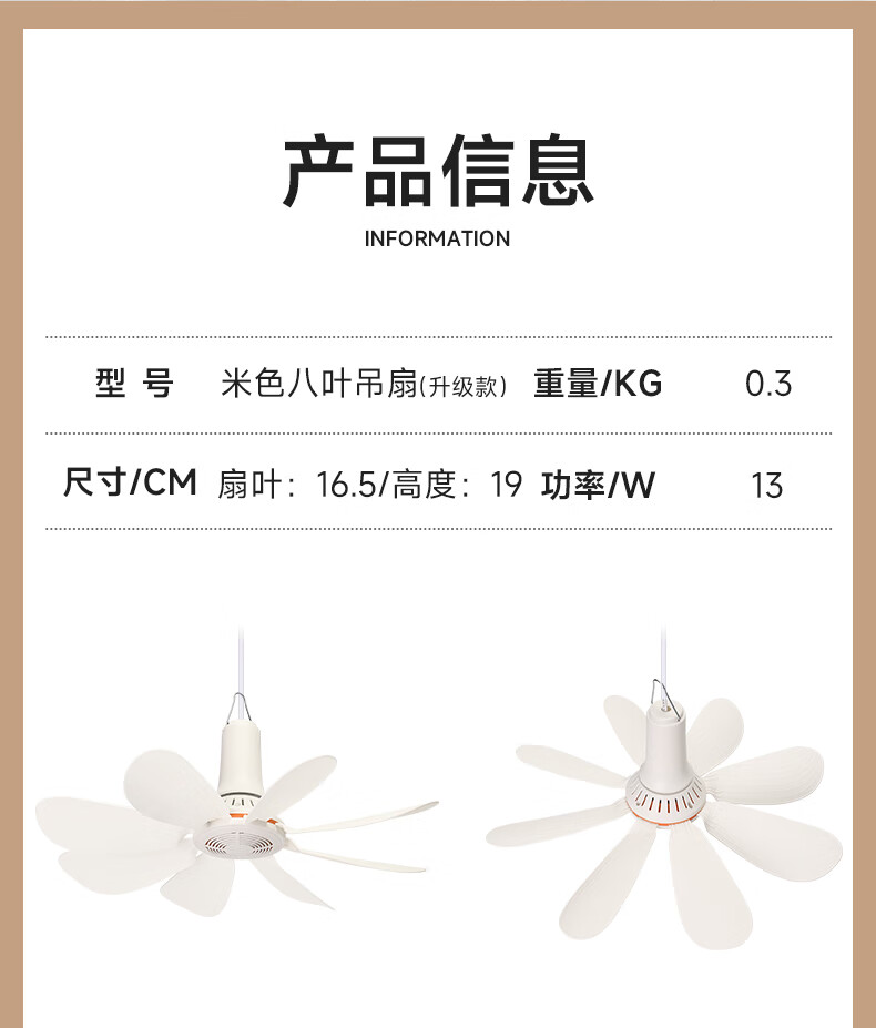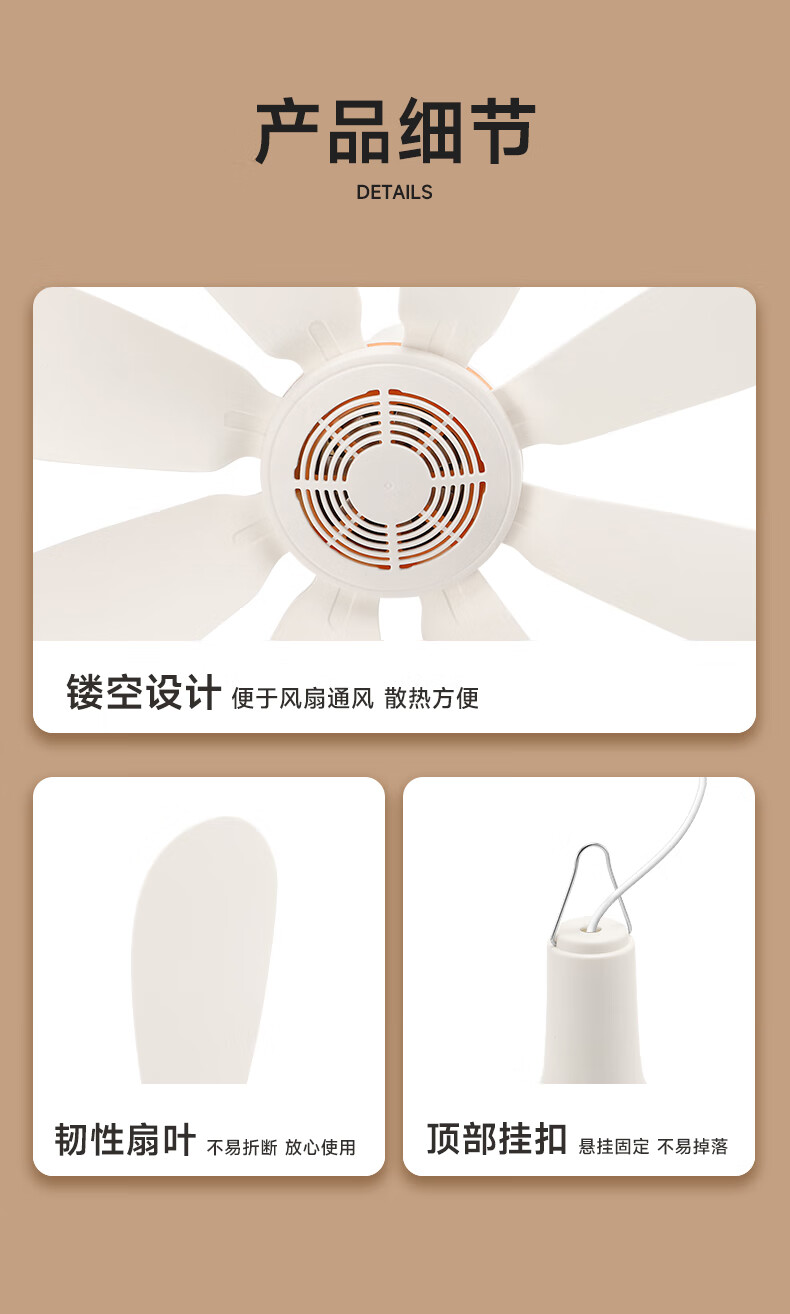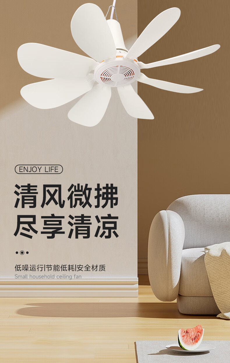 Xianglong small ceiling fan small breeze dormitory student mosquito net bed-mounted electric fan household quiet high wind remote control beige eight-blade ceiling fan (upgraded model) + 3 meters switch cable