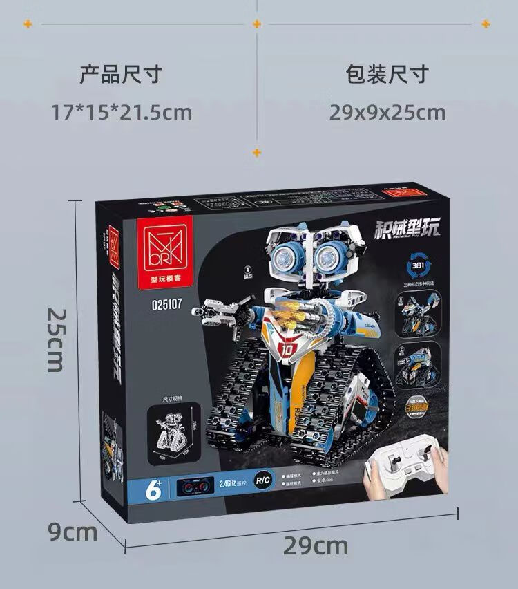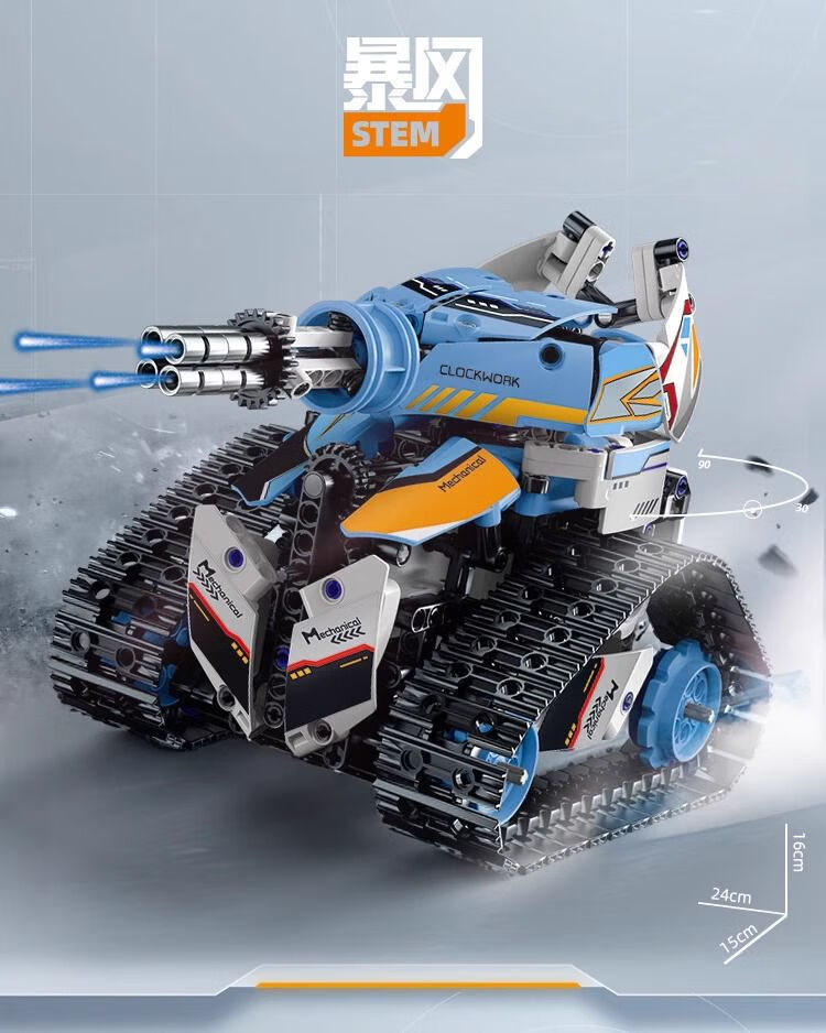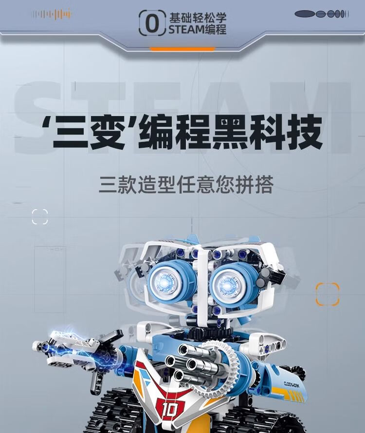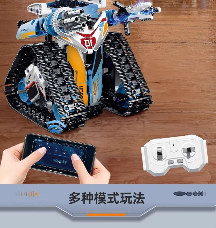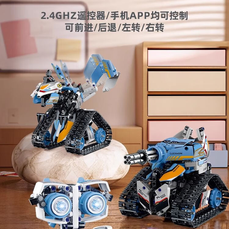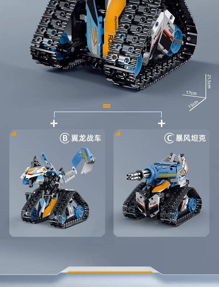 遥控坦克履带车可编程机器人积木儿童拼装玩具送男孩生日礼物 升级版3变暴风坦克机器人/695颗