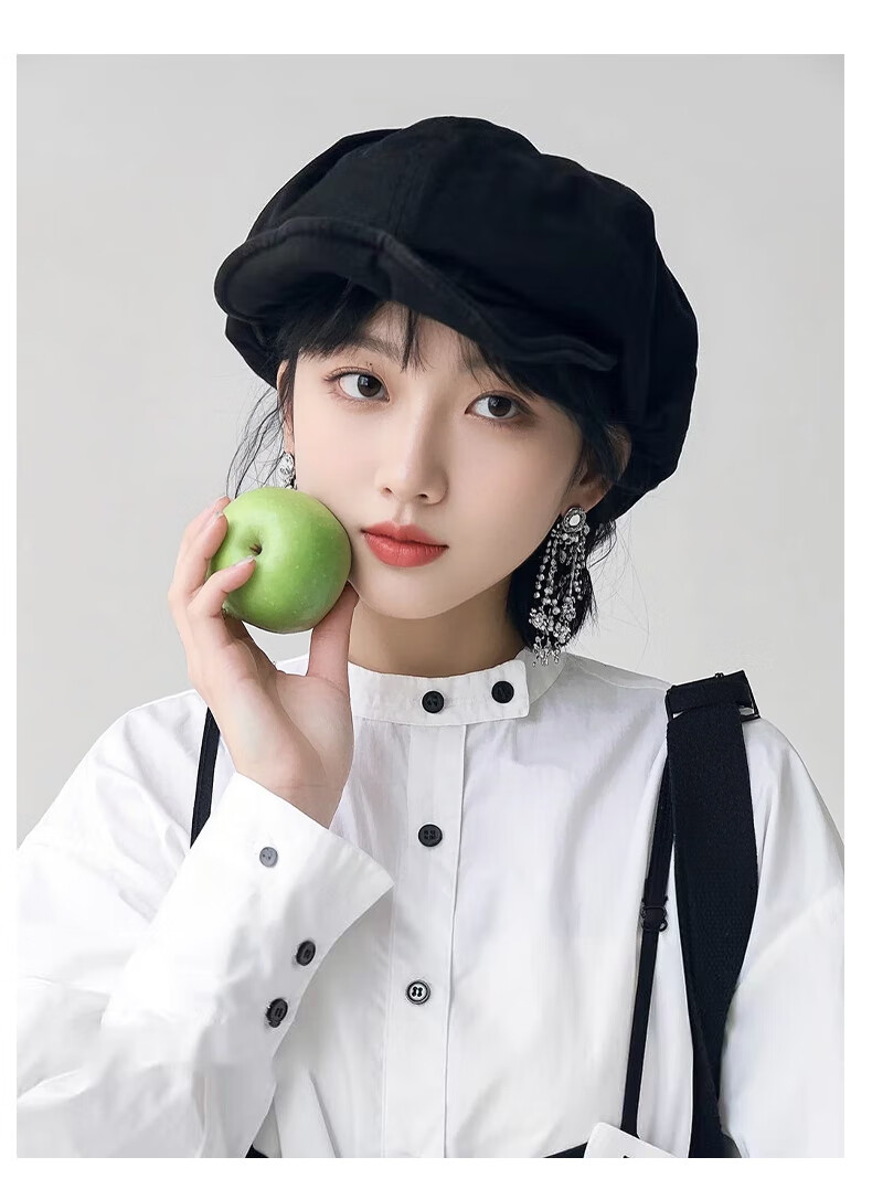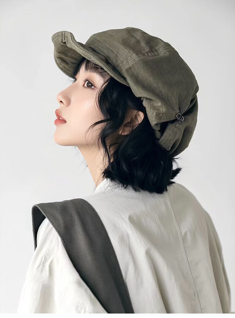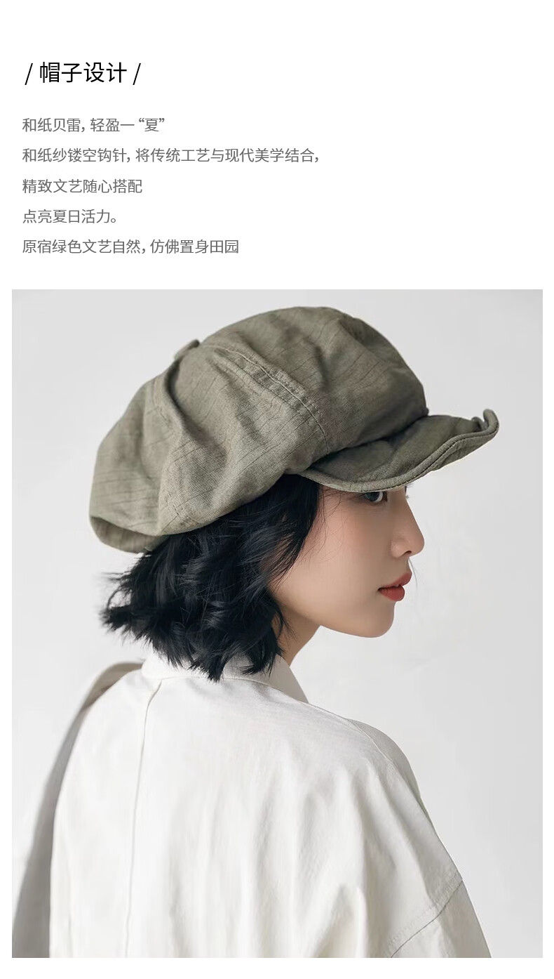 微光里日系文艺复古报童画家帽子女大版显脸小贝雷帽四季款八角帽男褶皱 贝雷帽【原宿绿】