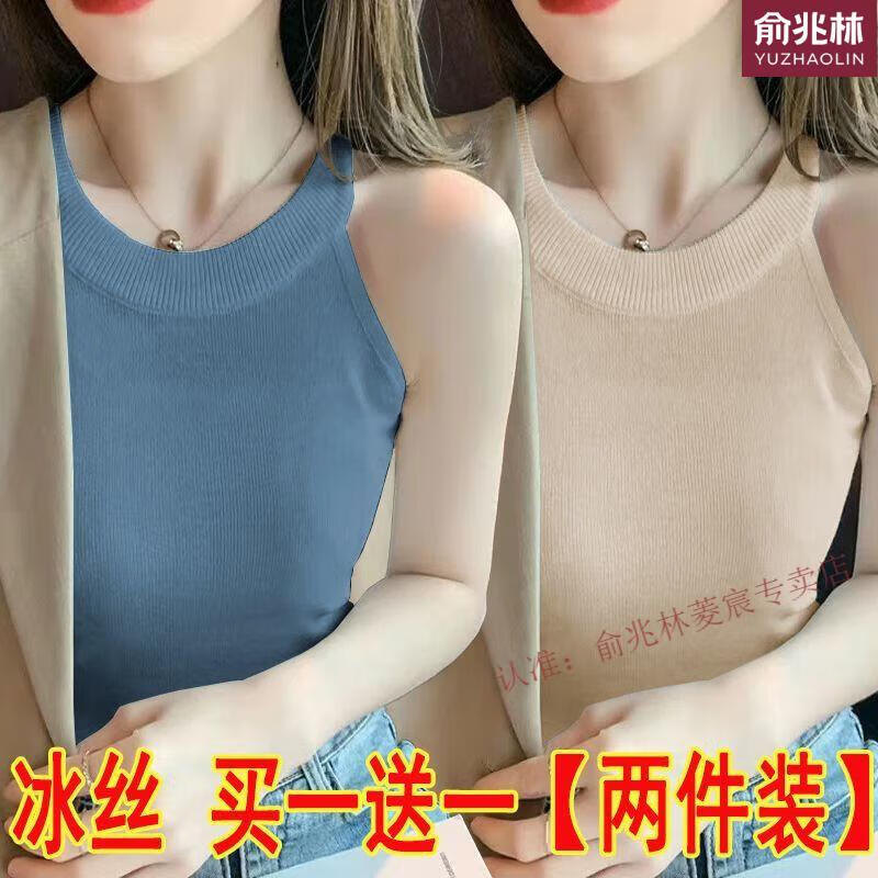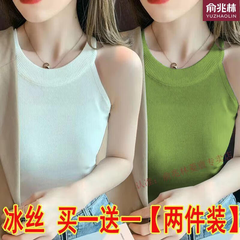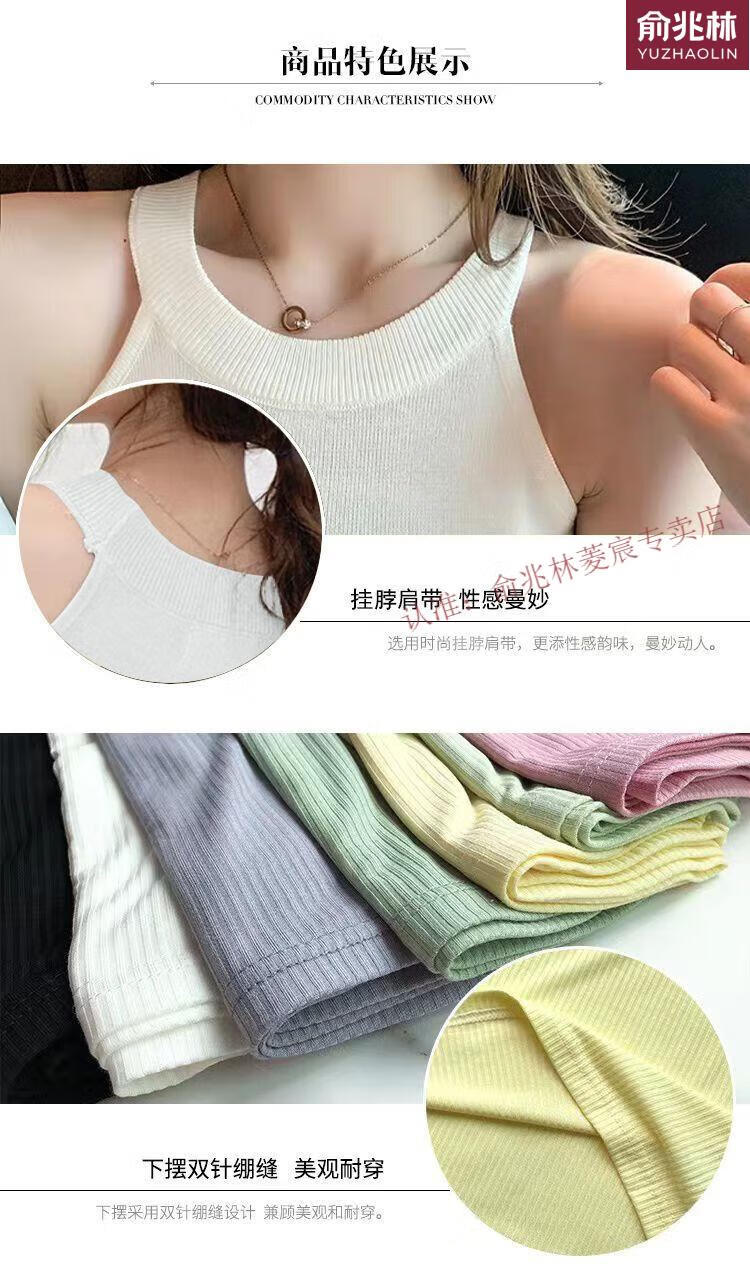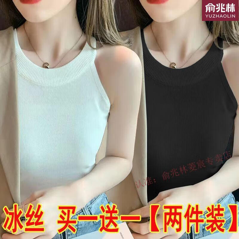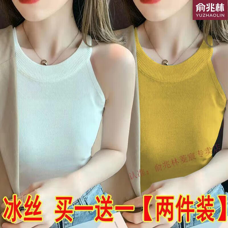 俞兆林(YUZHAOLIN)品牌单/两件冰丝挂脖吊带背心女内搭春夏设计感螺纹外款无袖打底 695白色+黄色 S 75-90斤
