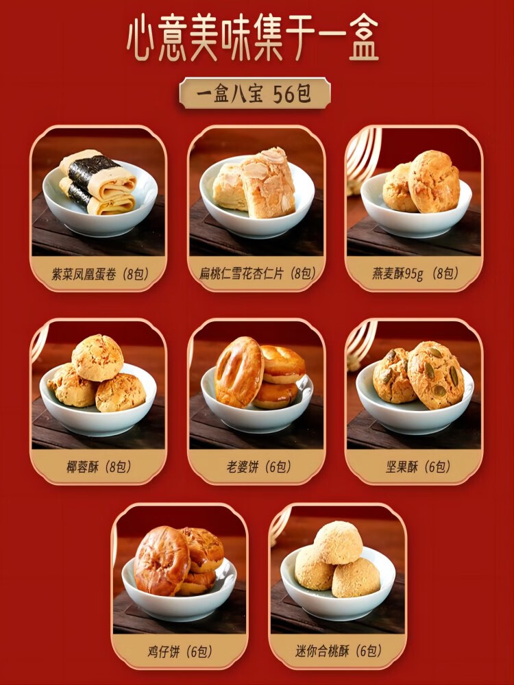 Huit trésors du vieux coffret cadeau de pâtisserie de Shanghai, huit pièces de spécialités, cadeaux pour les aînés et les dirigeants, cadeaux sincères pour le Nouvel An, coffret cadeau de pâtisserie de spécialité de Shanghai 695g