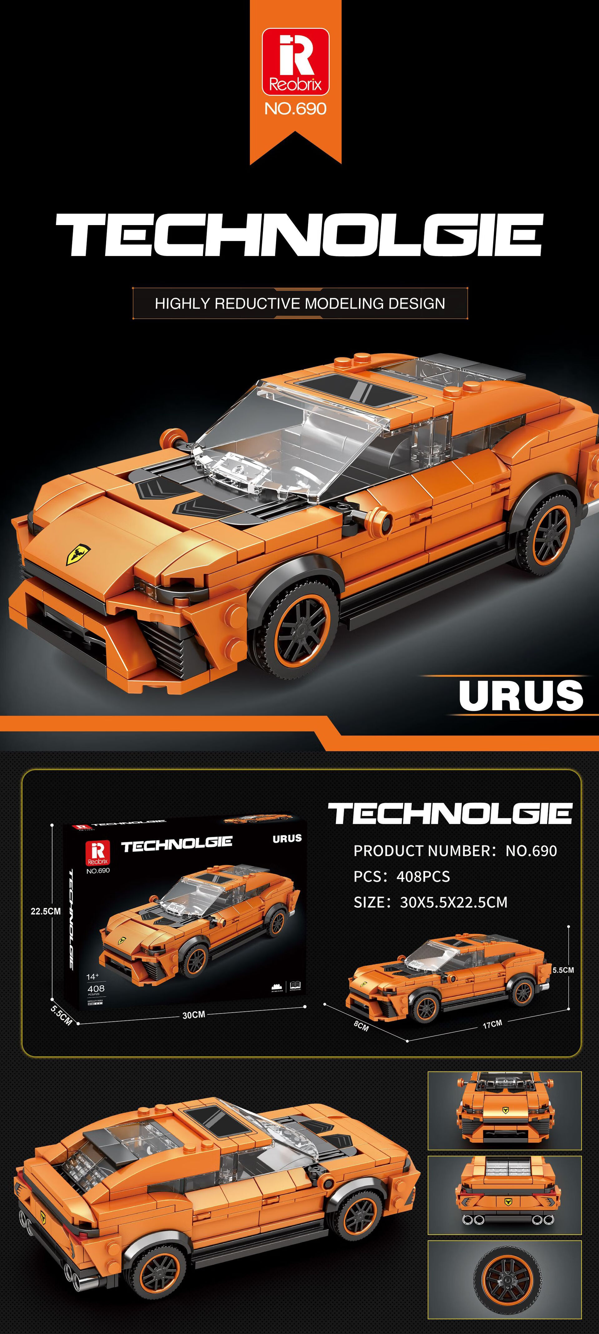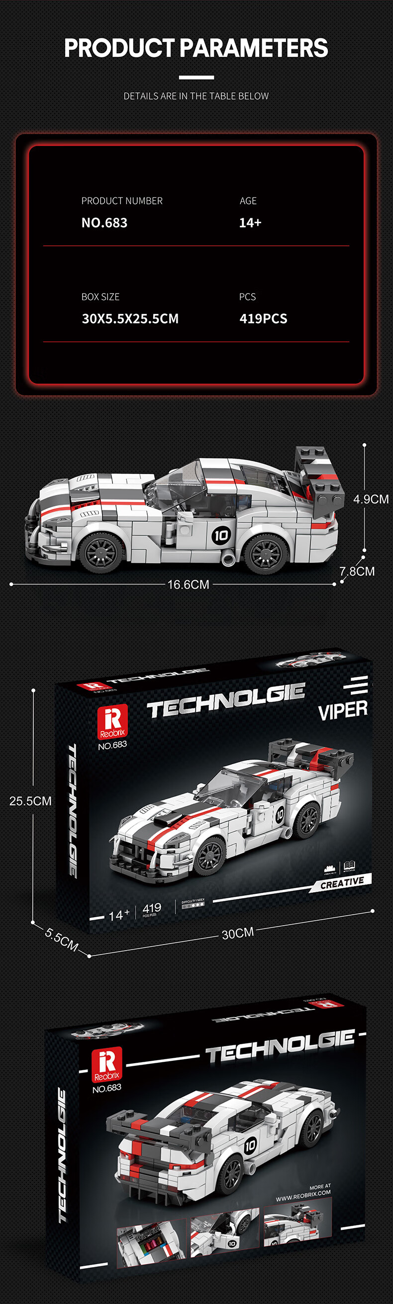 LDVEP Reobrix680-8 building blocks police car eight grid racing ornaments supercar model boy puzzle puzzle 679