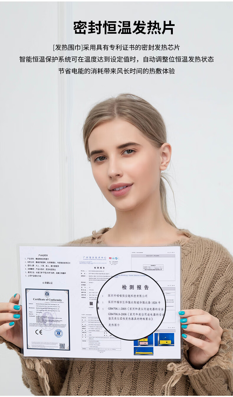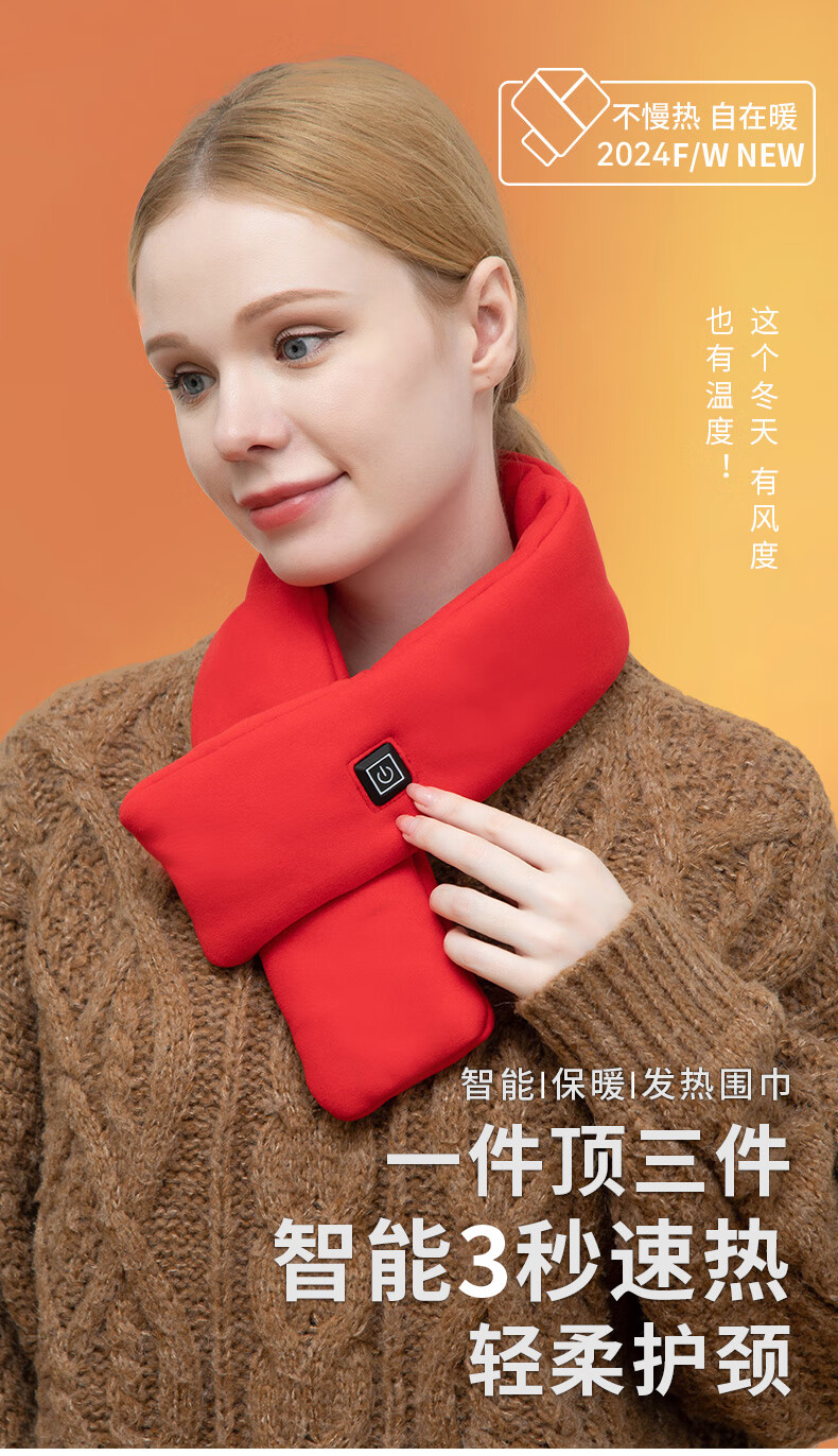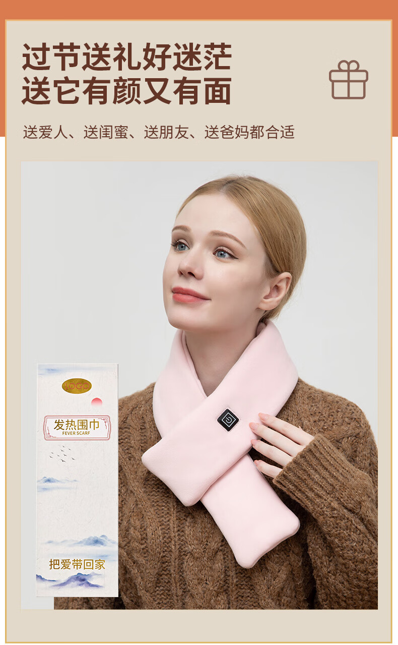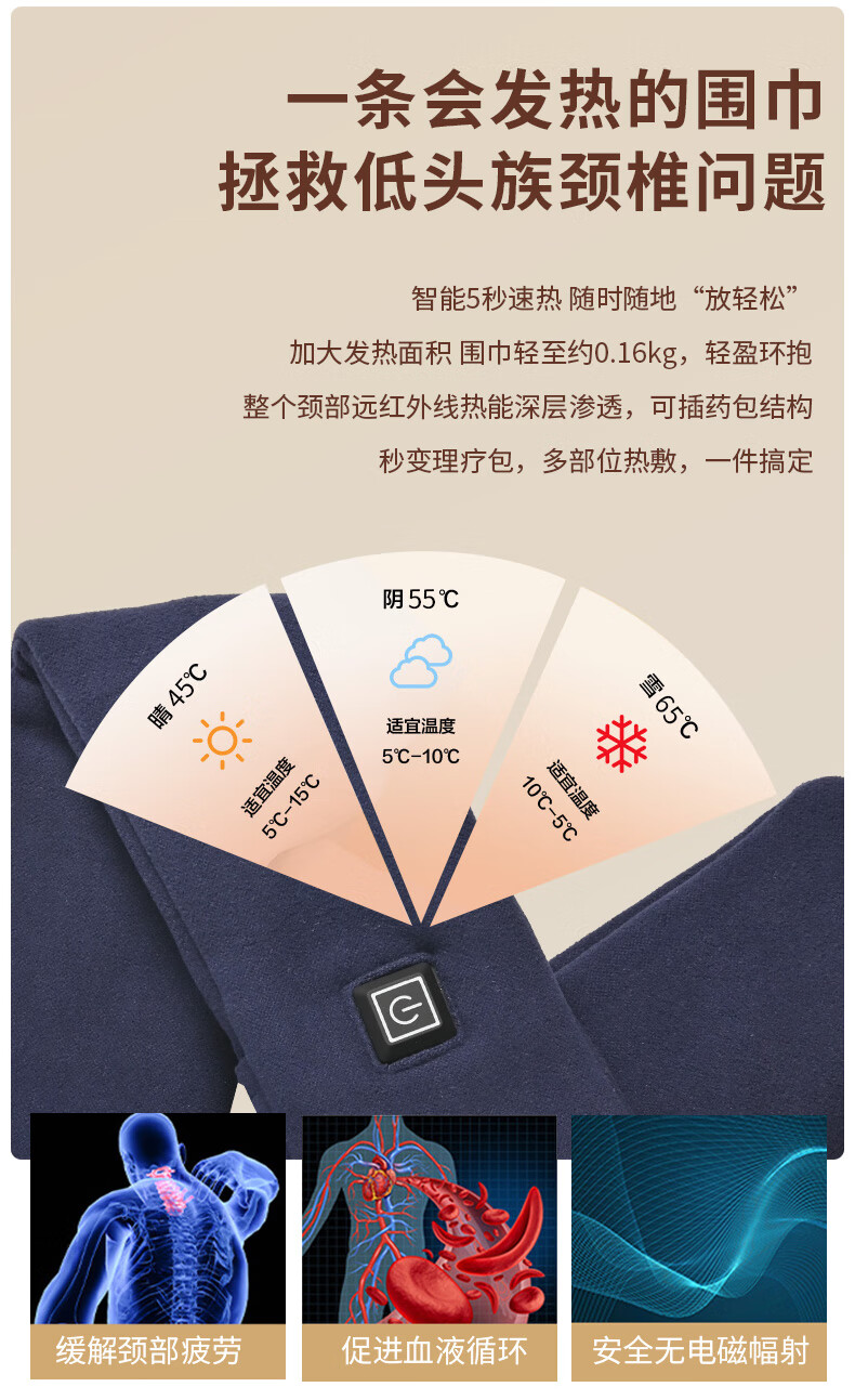 坤一石墨烯发热围巾护颈热敷保暖智能冬季充电式加热围脖防寒神器3879 [米白色-保暖围脖]
