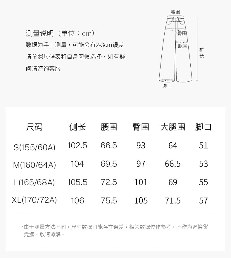 Outseam (cm) 99 cm 101.5 cm 104 cm 106.5 cm 109 cm