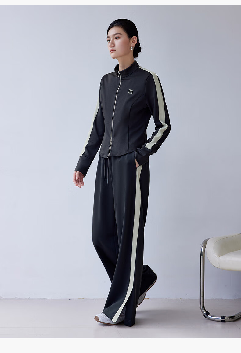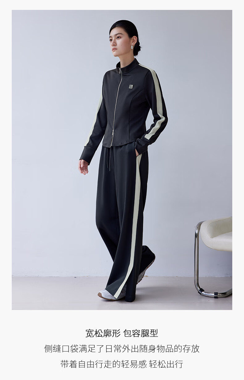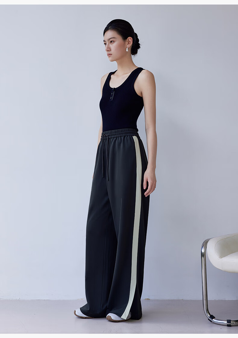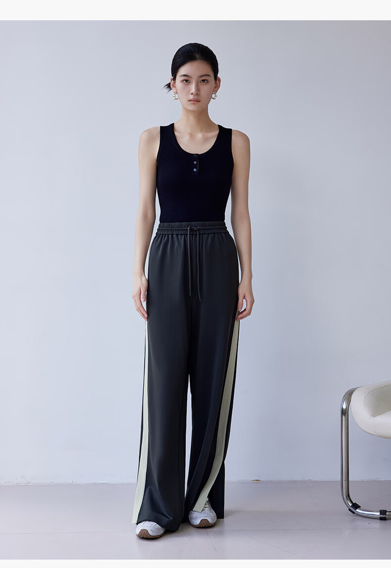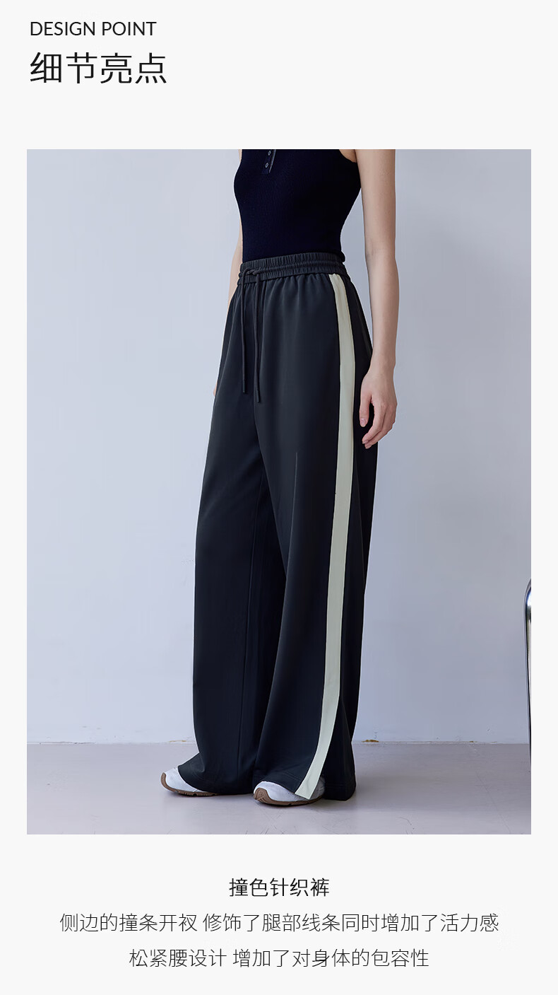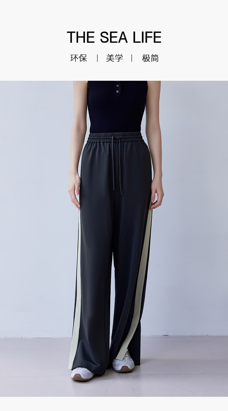 THE SEA LIFE sports pants Ou Hai Yisheng Sports casual pants for women 2025 autumn new contrast knitted trousers 17216 Caffefa gray M
