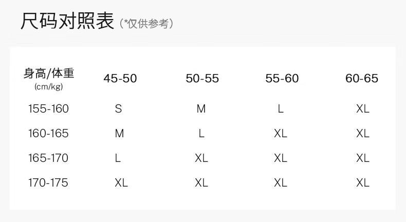 China (cm) 160-165/84-86 165-170 / 88-90 167-172 / 92-96 168-173 / 98-102 170-176 / 106-110