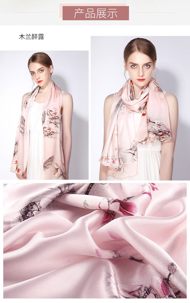 The Da Vinci Code silk scarf for women autumn and winter high-end silk shawl scarf silk scarf mother birthday gift for women Lotus rhyme light green