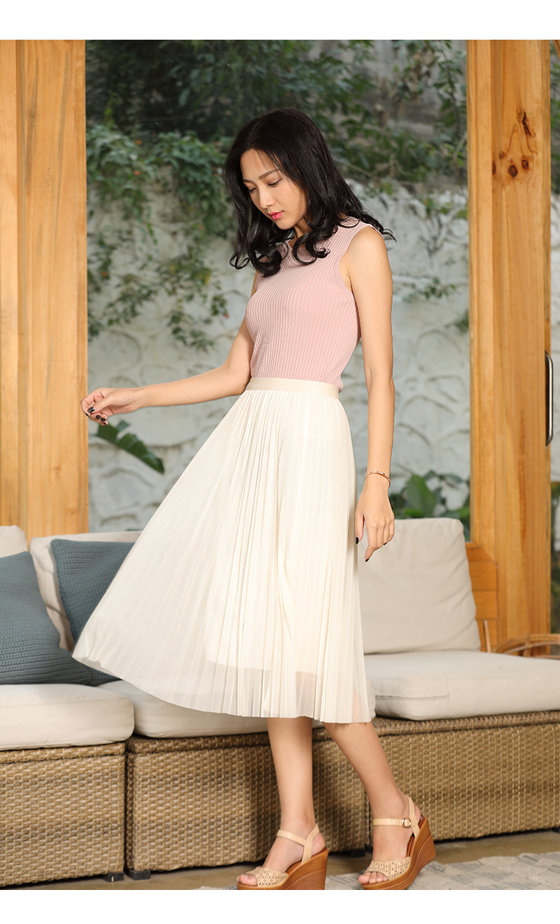 Teshang Laifei 2021 summer new skirt women's mesh skirt mid-length gauze skirt pleated fairy skirt slimming half skirt SSF983 pink L (2 feet 2-2 feet 3)