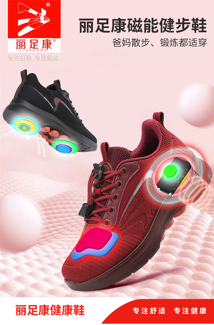 Foot Force Elderly Shoes Women's Non-slip Walking Shoes Middle-aged and Elderly Mother Shoes Terahertz Permanent Magnet Vibration Magnetic Therapy Shoes Massage Shoes